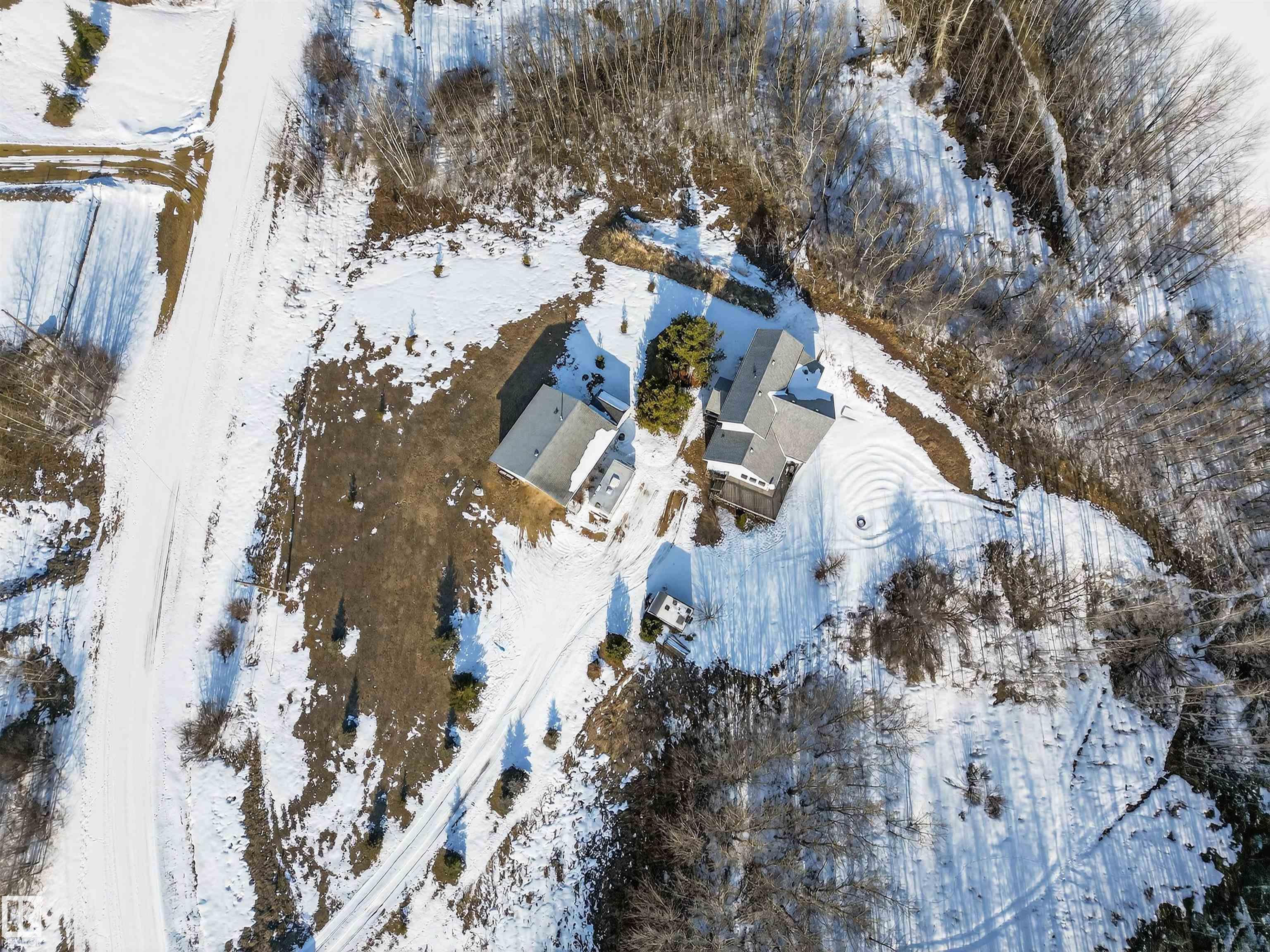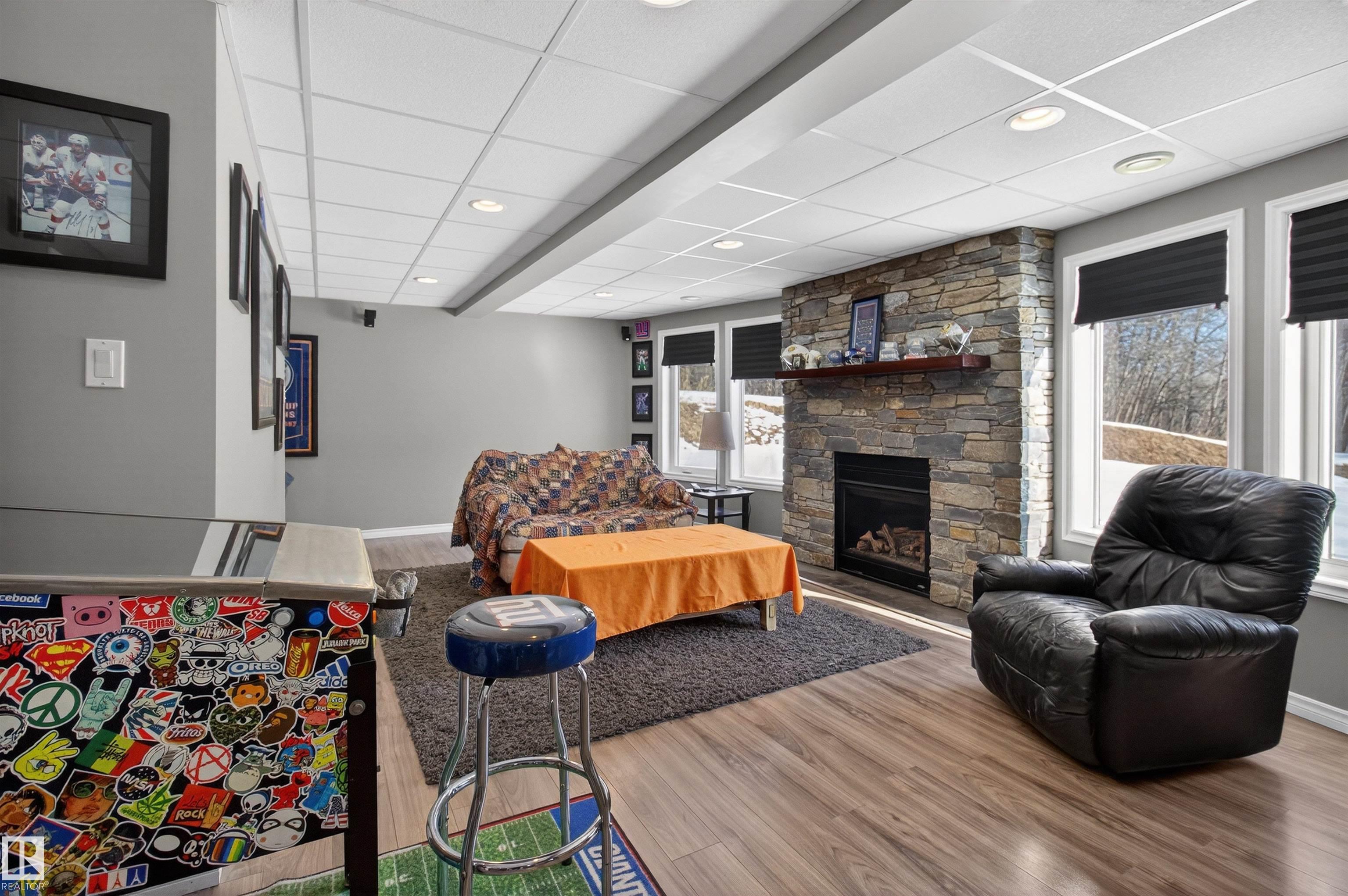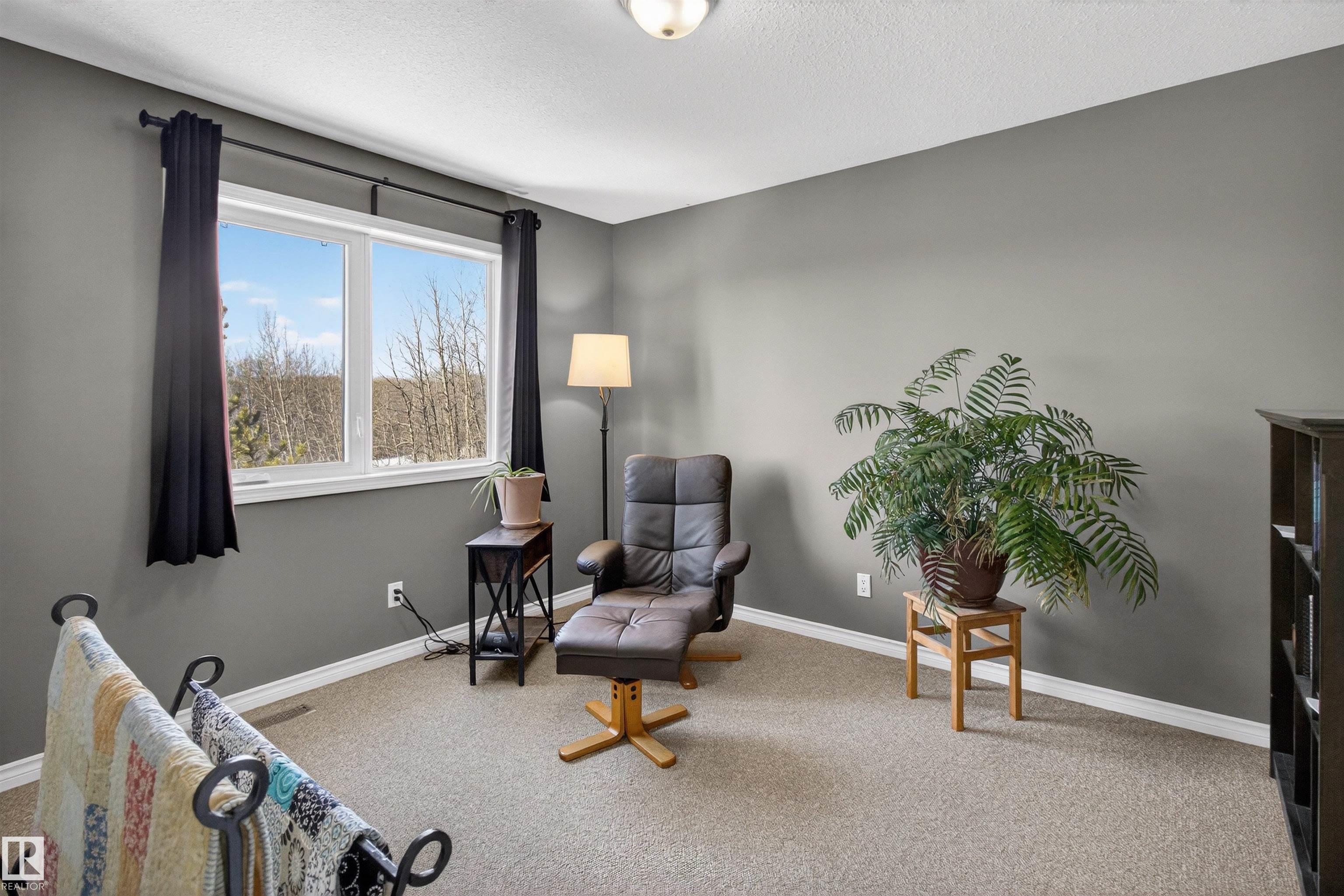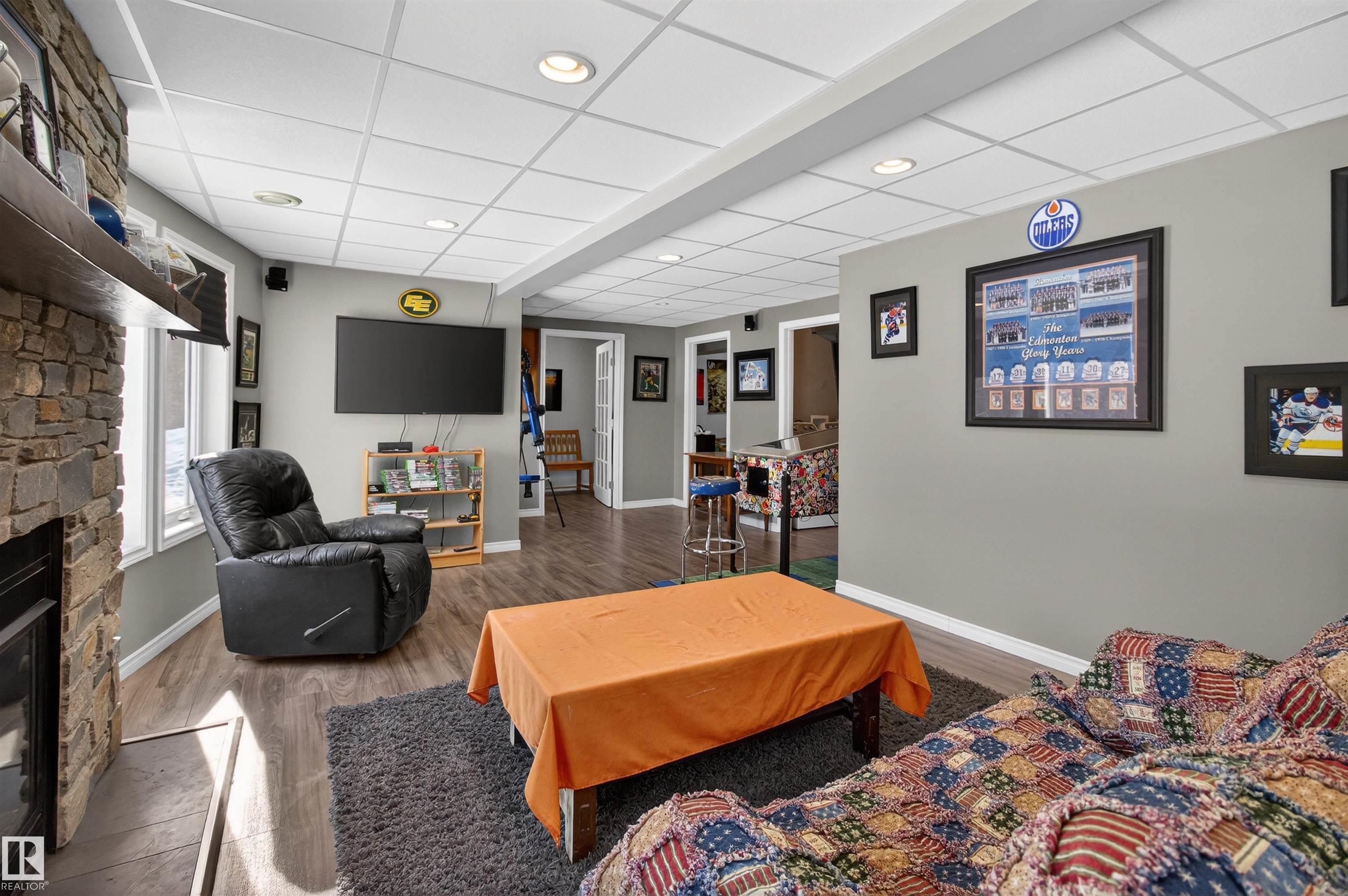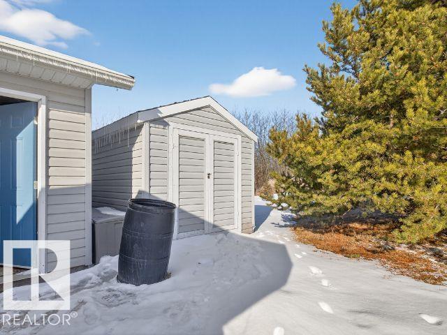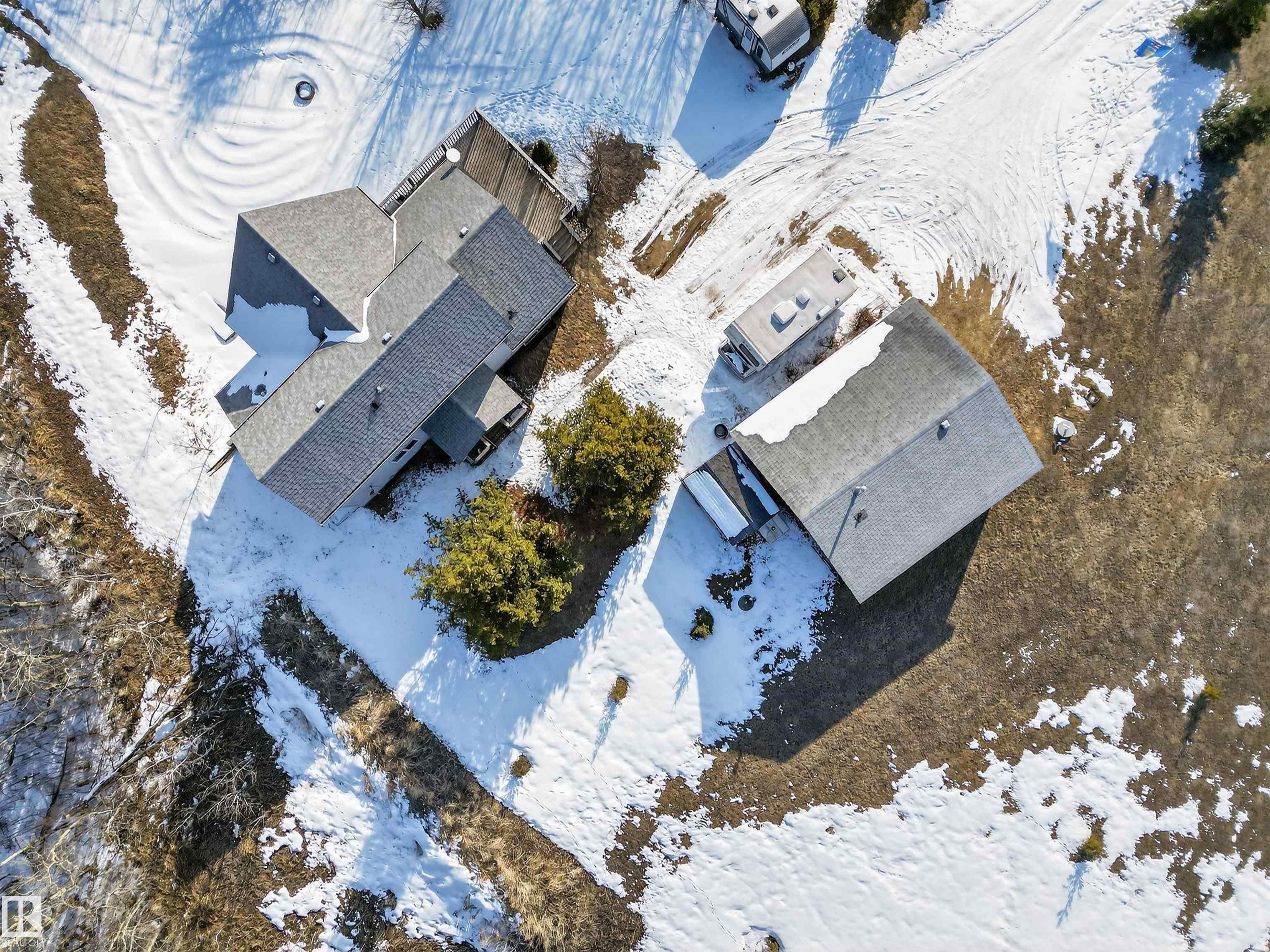 Private country residential retreat offering space, comfort, and thoughtful design. This inviting home features soaring vaulted ceilings and an open-concept kitchen and living room, highlighted by a stunning feature wall with a cozy gas fireplace. The main floor hosts a spacious primary bedroom complete with a four-piece ensuite. Upstairs, you'll find two additional bedrooms and a well-appointed four-piece bath--perfect for family or guests. The fully developed walkout basement adds exceptional living space, including a second gas fireplace, an additional bedroom, and a convenient two-piece bath. Step outside to enjoy the peaceful surroundings and easy access to nature. Car enthusiasts and hobbyists will appreciate the oversized double detached garage--fully heated and uniquely equipped with its own four-piece bathroom and separate septic system. A rare blend of rural charm and modern convenience.