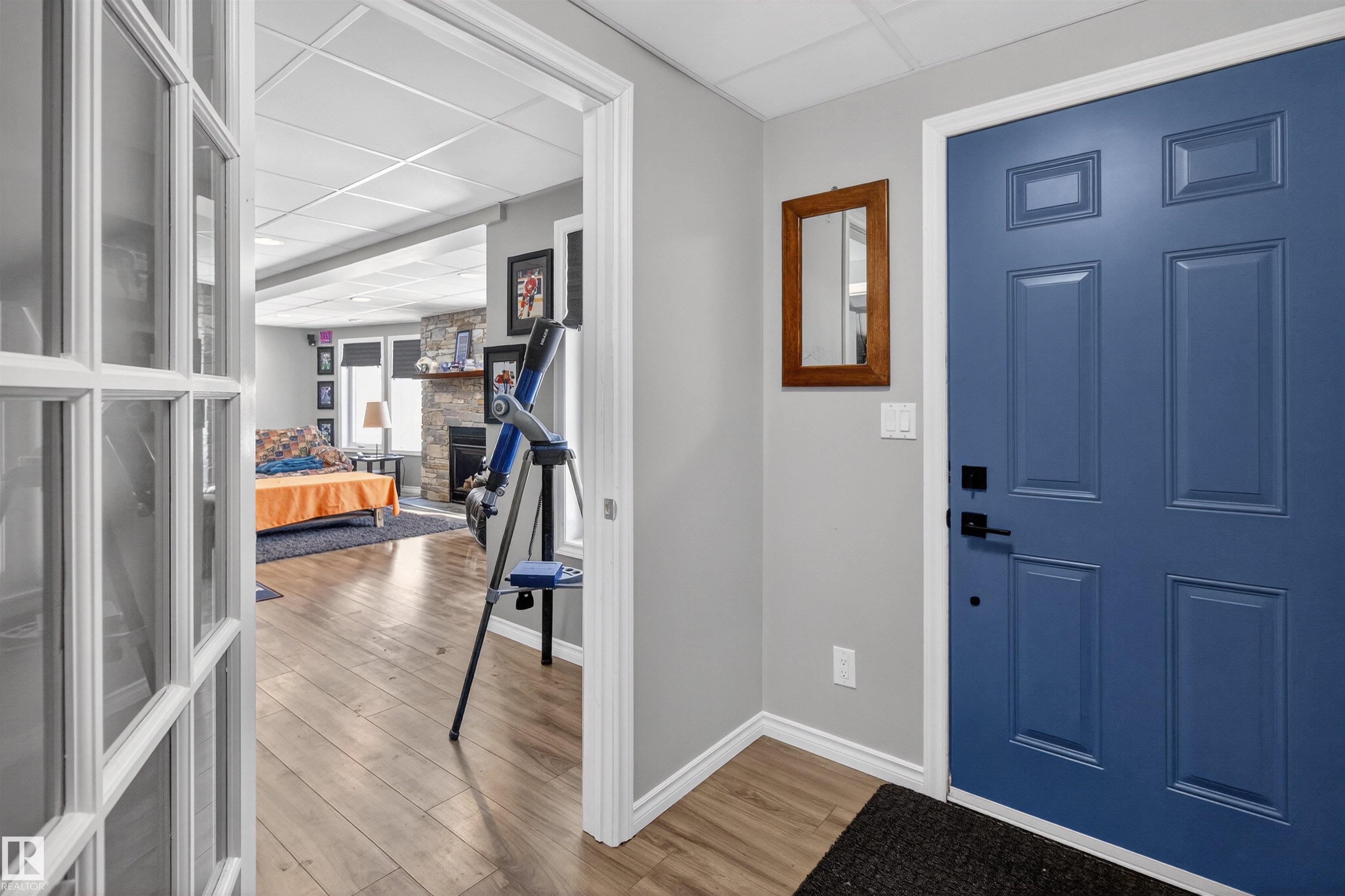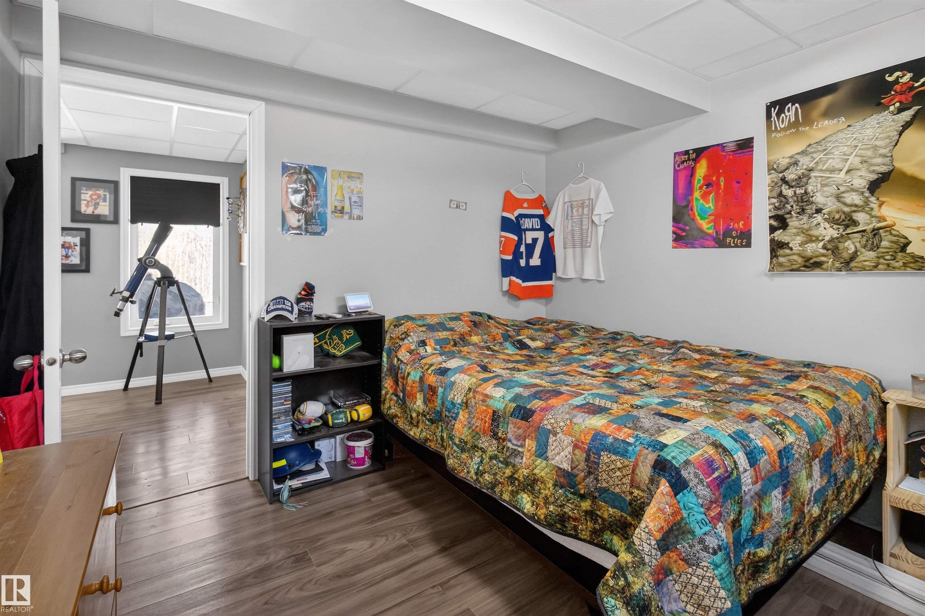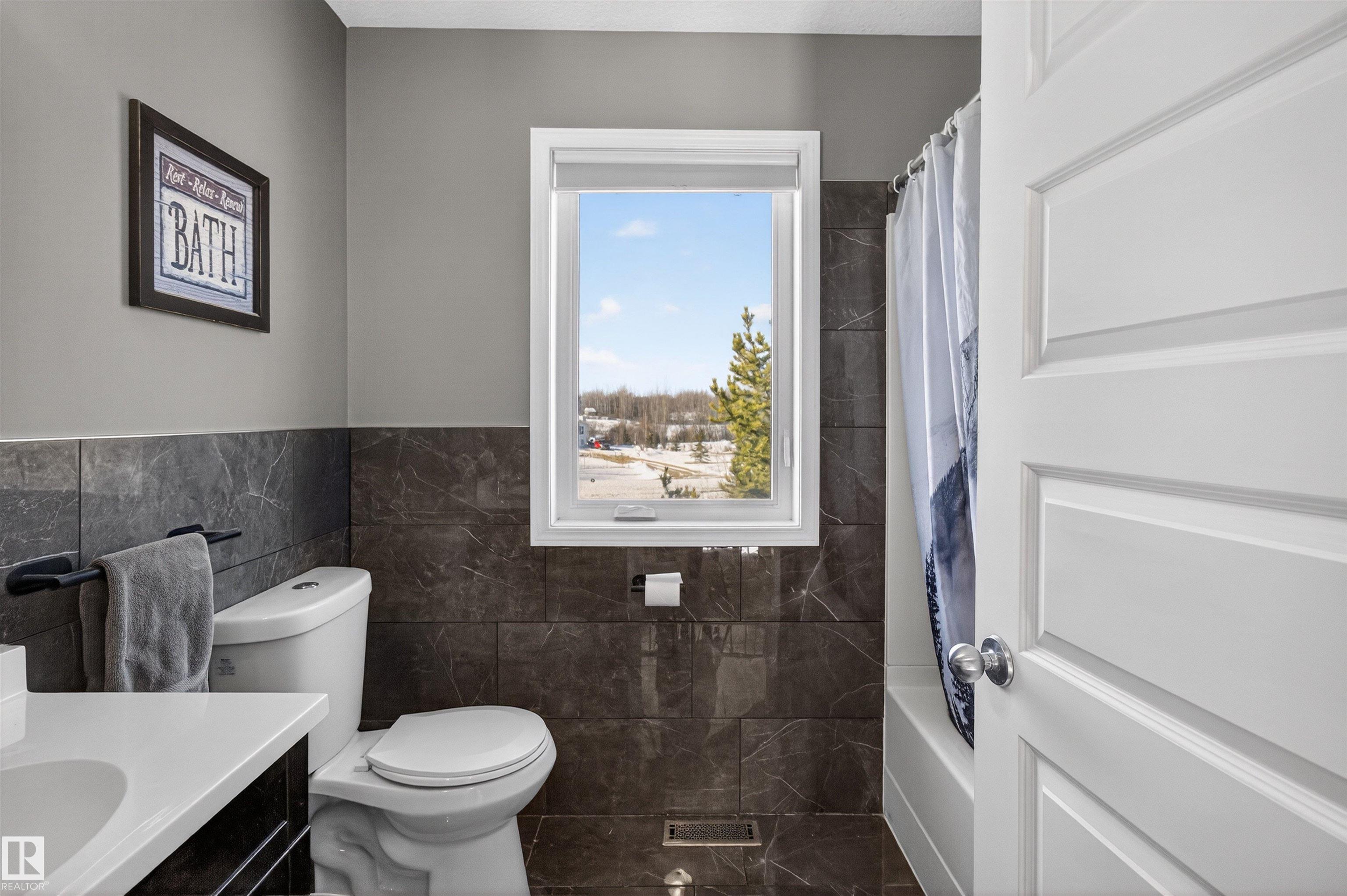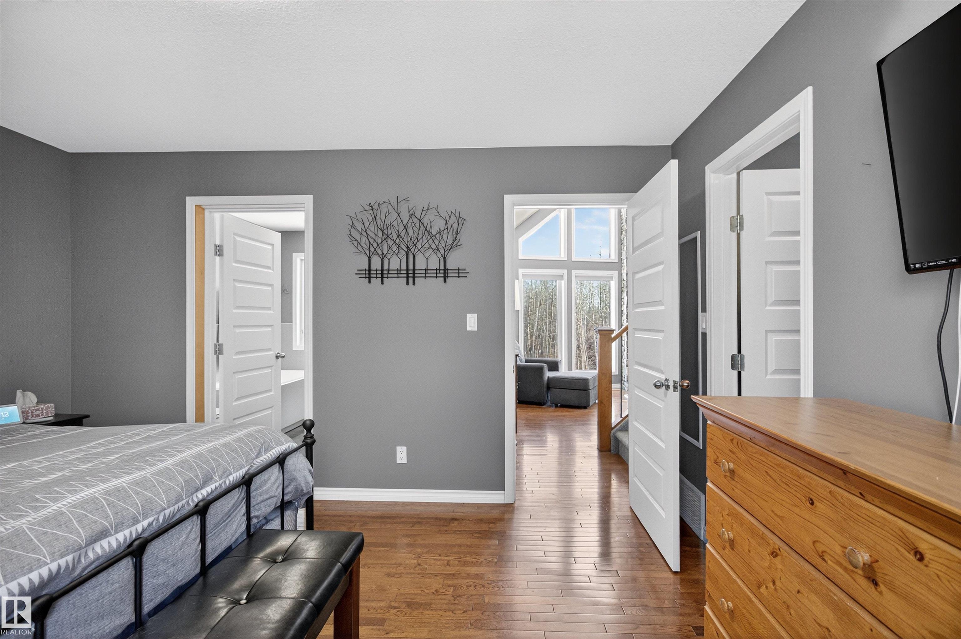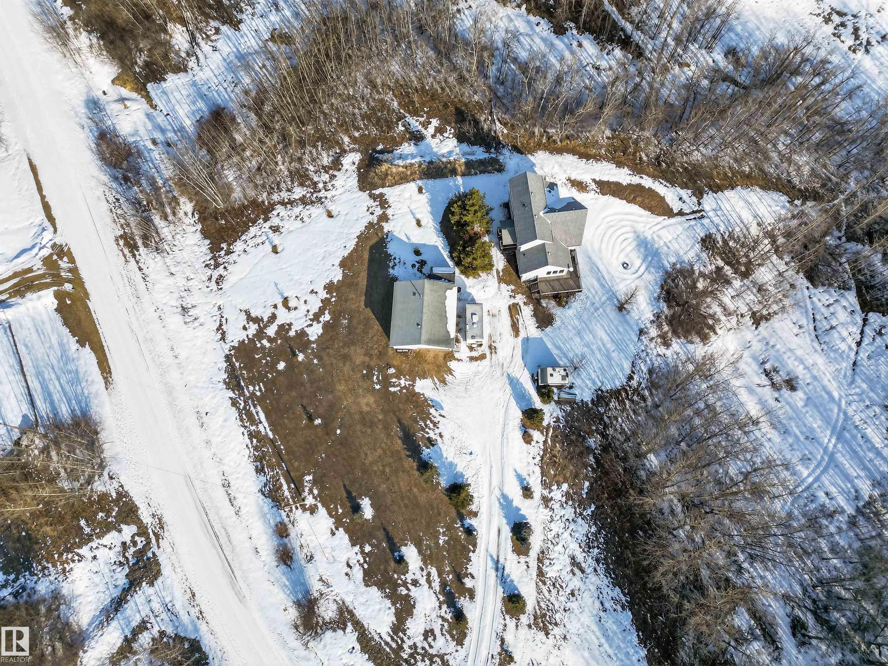 Private country residential retreat offering space, comfort, and thoughtful design. This inviting home features soaring vaulted ceilings and an open-concept kitchen and living room, highlighted by a stunning feature wall with a cozy gas fireplace. The main floor hosts a spacious primary bedroom complete with a four-piece ensuite. Upstairs, you'll find two additional bedrooms and a well-appointed four-piece bath--perfect for family or guests. The fully developed walkout basement adds exceptional living space, including a second gas fireplace, an additional bedroom, and a convenient two-piece bath. Step outside to enjoy the peaceful surroundings and easy access to nature. Car enthusiasts and hobbyists will appreciate the oversized double detached garage--fully heated and uniquely equipped with its own four-piece bathroom and separate septic system. A rare blend of rural charm and modern convenience.