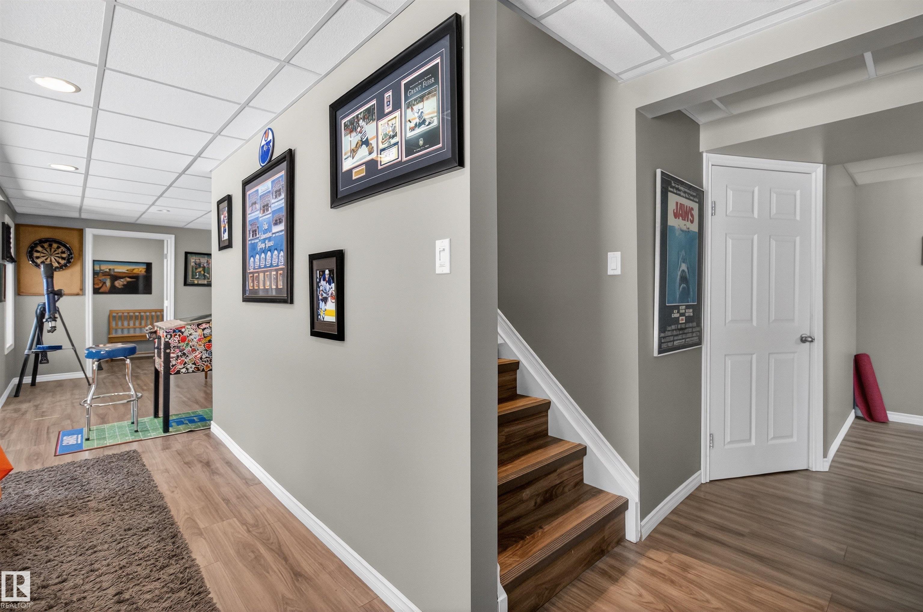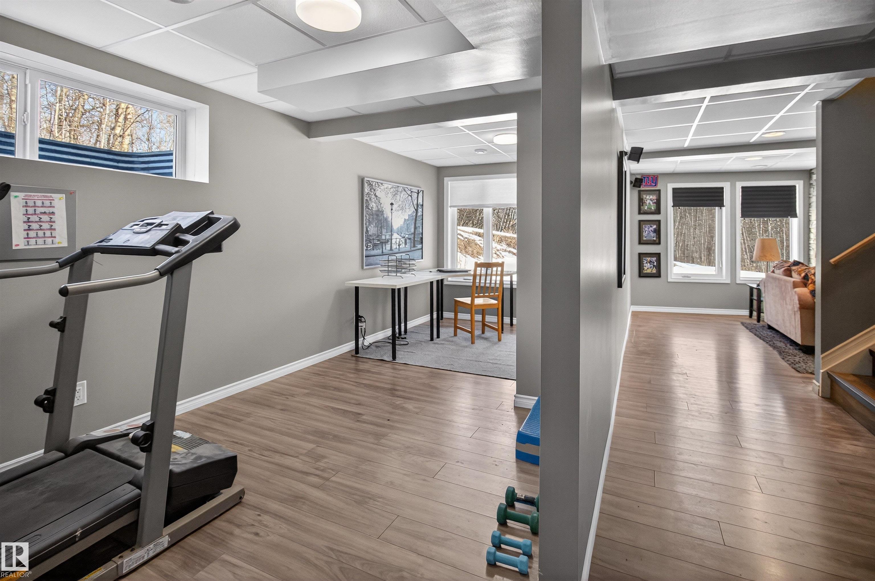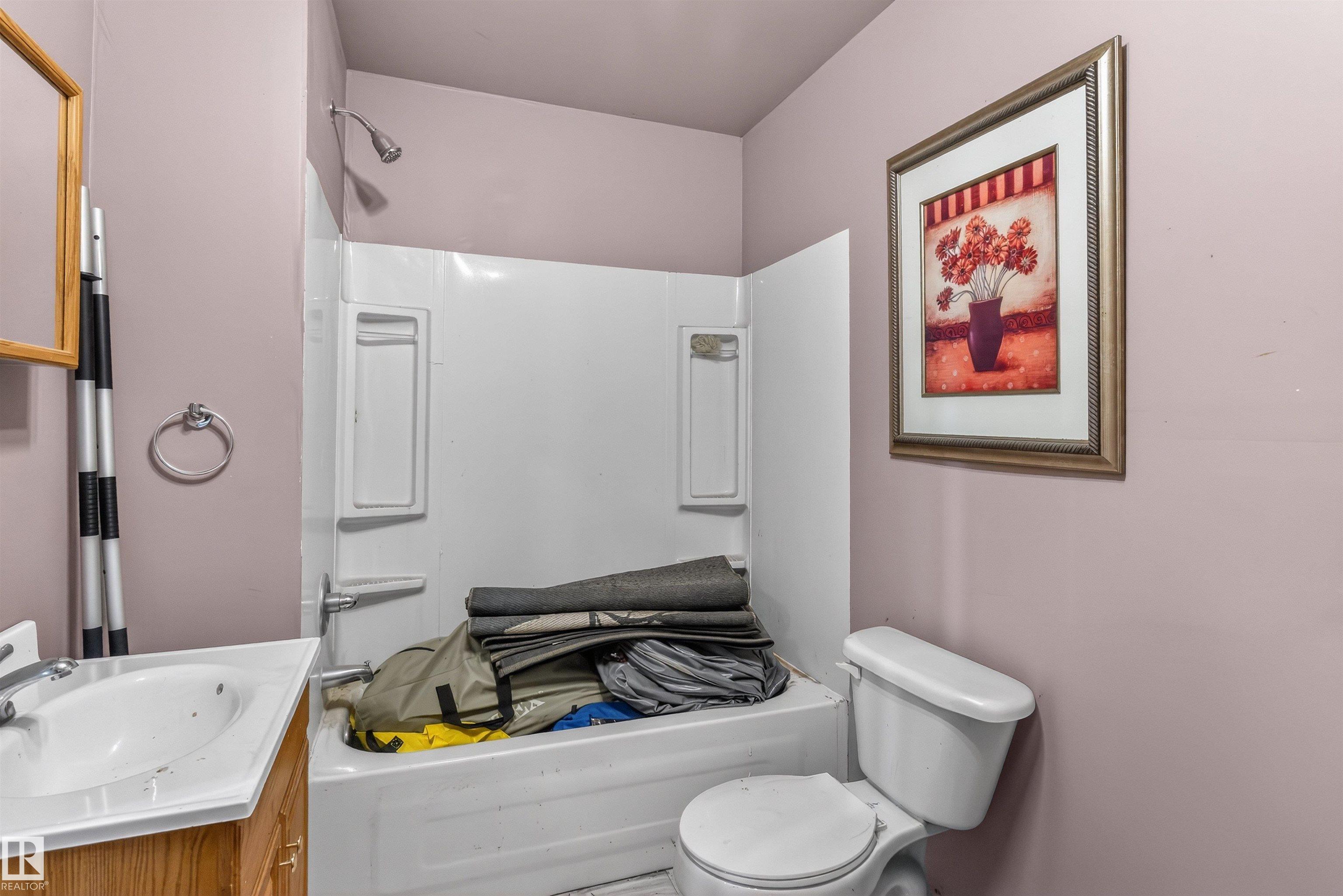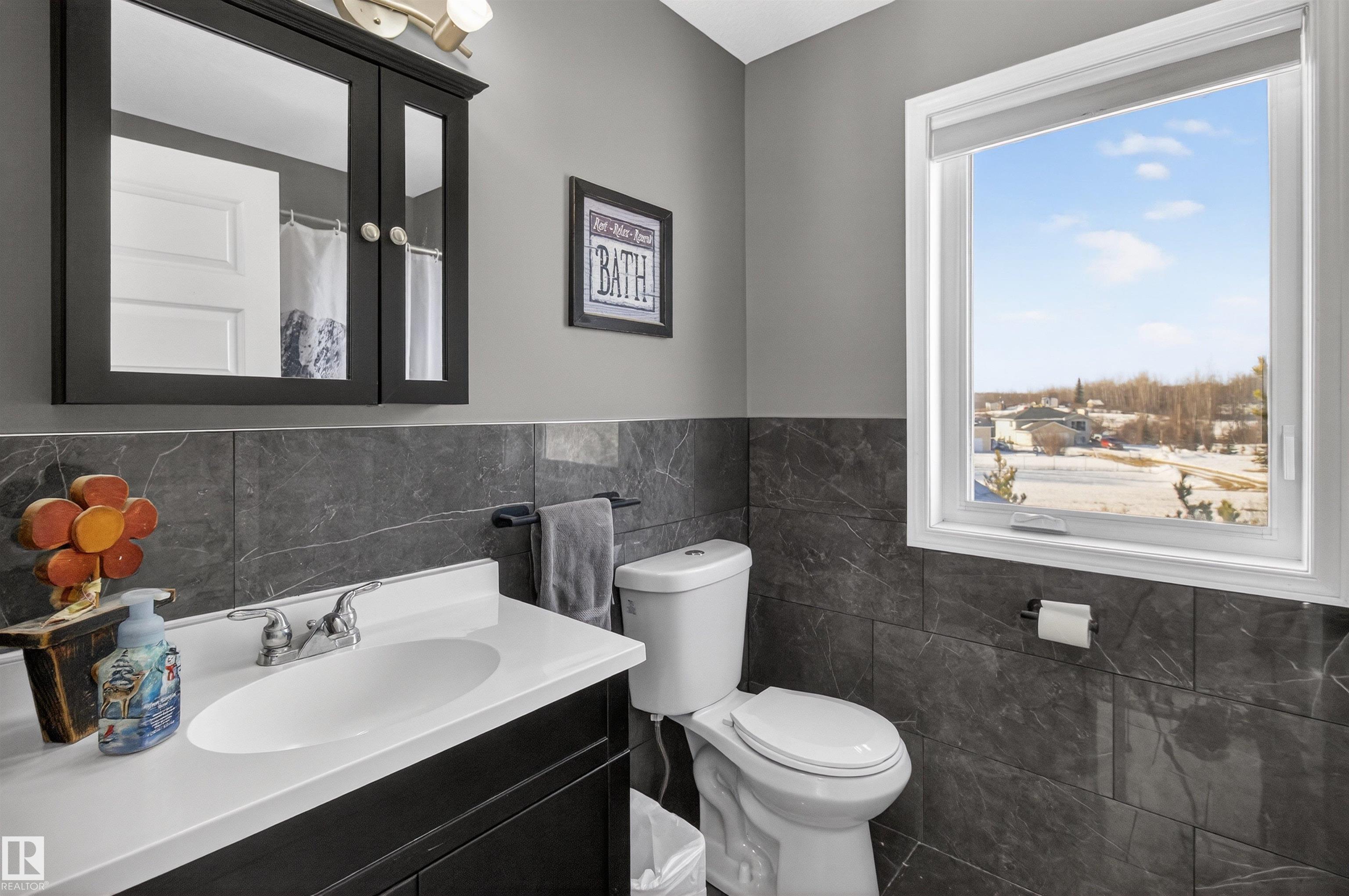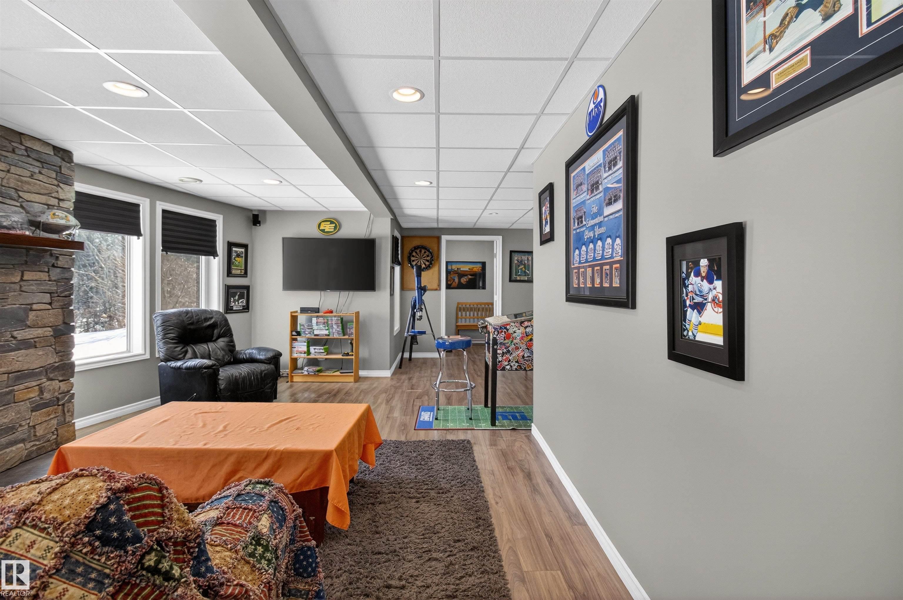 Private country residential retreat offering space, comfort, and thoughtful design. This inviting home features soaring vaulted ceilings and an open-concept kitchen and living room, highlighted by a stunning feature wall with a cozy gas fireplace. The main floor hosts a spacious primary bedroom complete with a four-piece ensuite. Upstairs, you'll find two additional bedrooms and a well-appointed four-piece bath--perfect for family or guests. The fully developed walkout basement adds exceptional living space, including a second gas fireplace, an additional bedroom, and a convenient two-piece bath. Step outside to enjoy the peaceful surroundings and easy access to nature. Car enthusiasts and hobbyists will appreciate the oversized double detached garage--fully heated and uniquely equipped with its own four-piece bathroom and separate septic system. A rare blend of rural charm and modern convenience.
