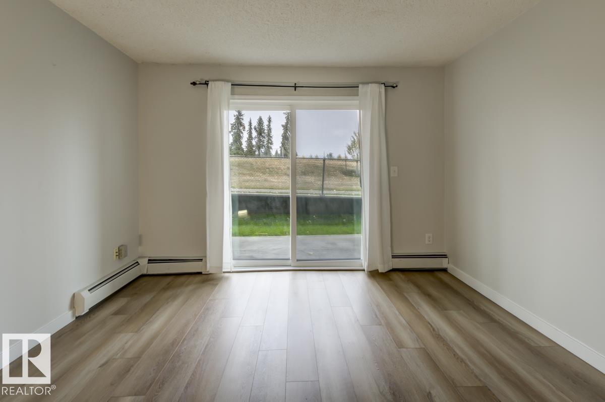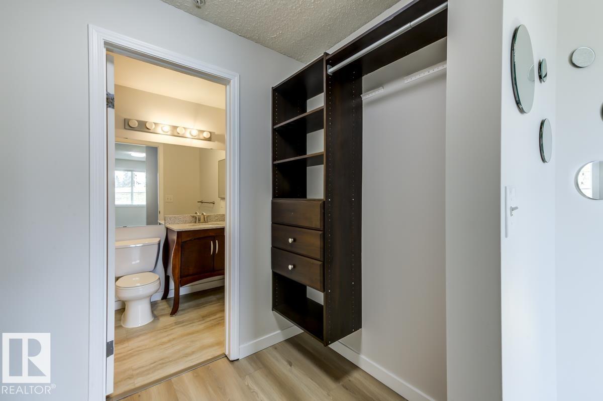 Main floor 2 bedroom, 2 bathroom condo with in-suite laundry and a private patio facing green space. Freshly painted in a neutral palette with new vinyl plank flooring throughout. The kitchen offers generous counter space, a tile backsplash, and a practical layout that opens to the living area. Both bathrooms have been updated with modern finishes, and the primary bedroom includes a walk-in closet and full ensuite. This home has been well cared for and is move-in ready. Includes one tandem parking stall directly outside the door plus visitor parking. Condo fees cover heat, water, and more--only pay for power. Located in a quiet, pet-friendly building surrounded by walking paths and open space with quick access to the LRT, schools, major routes, and shopping. A solid option for those seeking ownership without compromise.