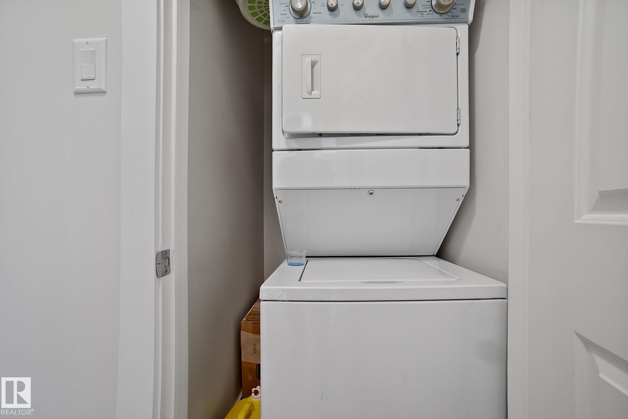 Welcome to this beautifully maintained 2-bedroom & 2-bathroom unit at Radiance Condos, situated in the heart of the Eaux Claires neighbourhood. This inviting condo, built in 2015, offers 764 square feet of functional living space featuring a bright & airy feeling throughout the unit. Walking in you'll be pleased to find a large open-concept kitchen that flows seamlessly into the living & dining area, with access to your private balcony. The thoughtful layout places the bedrooms on opposite sides of the unit, ensuring ample privacy. The primary bedroom includes a large walk-in closet & a 3-pc ensuite. Further enhancing this unit, you have large 4-pc bathroom, plenty of natural light, along with in-suite laundry & a titled parking stall. The location is fantastic, with easy access to shopping, schools, parks, playgrounds & public transit. This unit is perfect for first-time homebuyers, investors, or anyone seeking a low-maintenance lifestyle in a vibrant community.