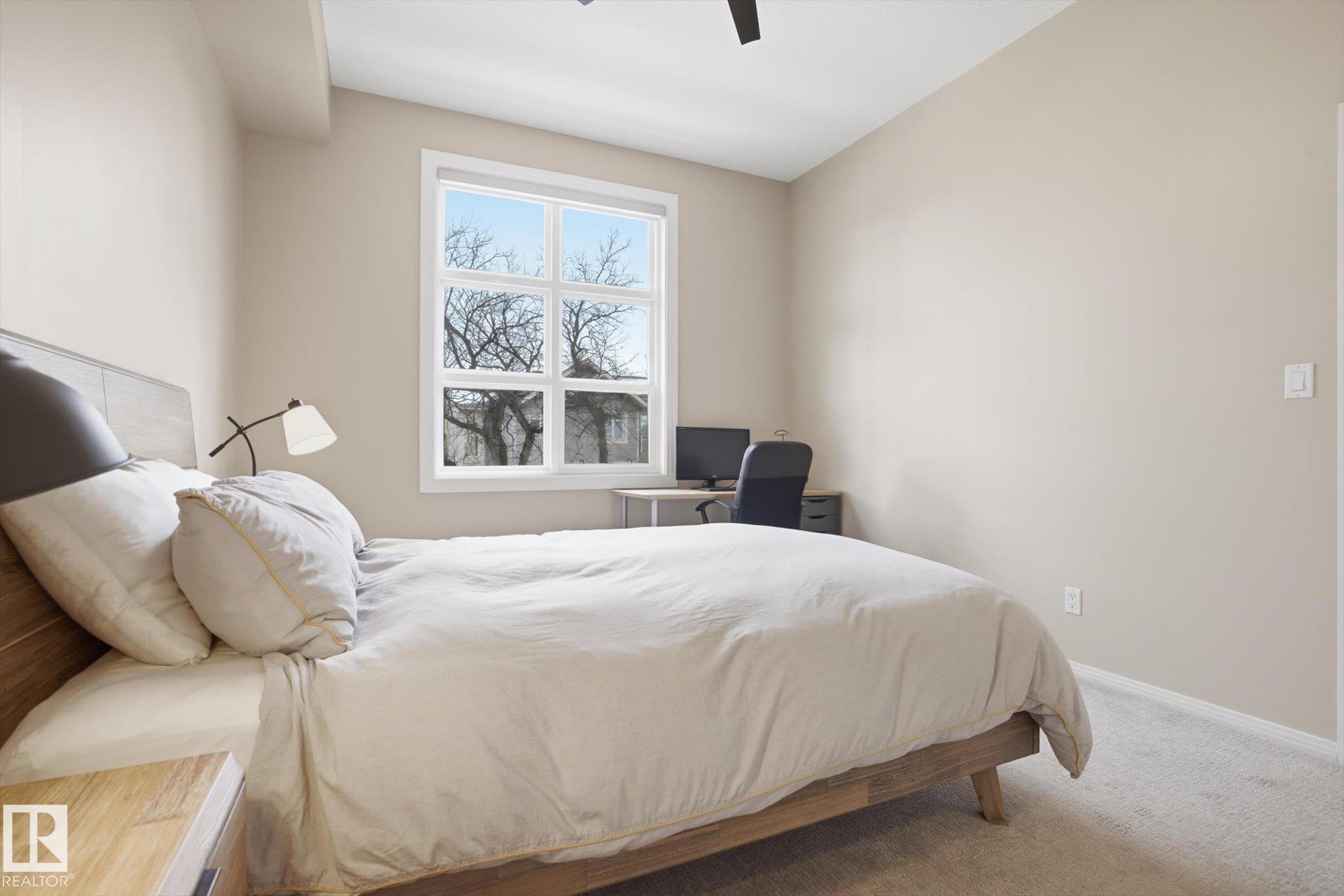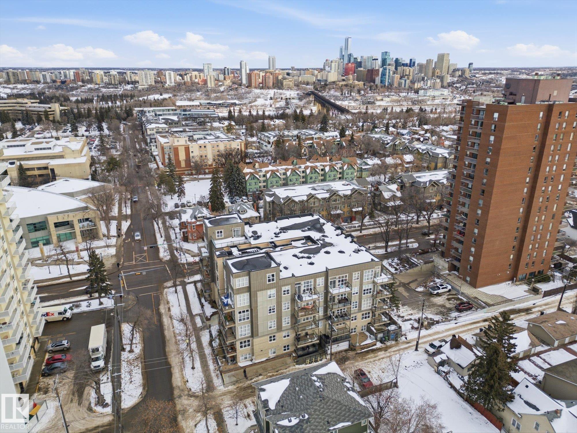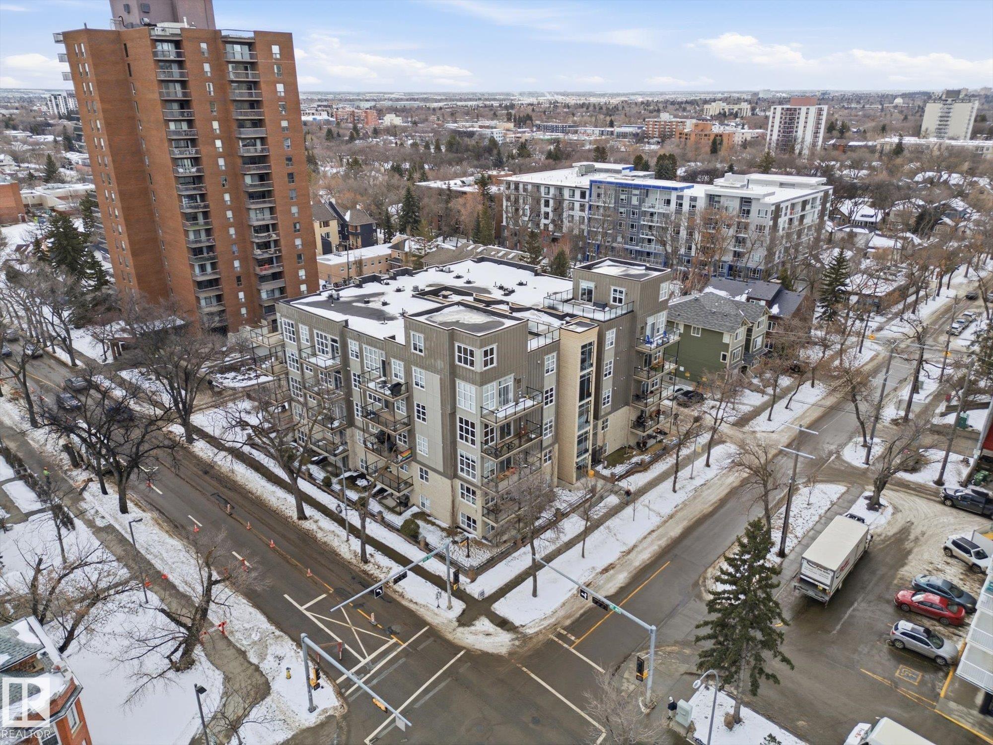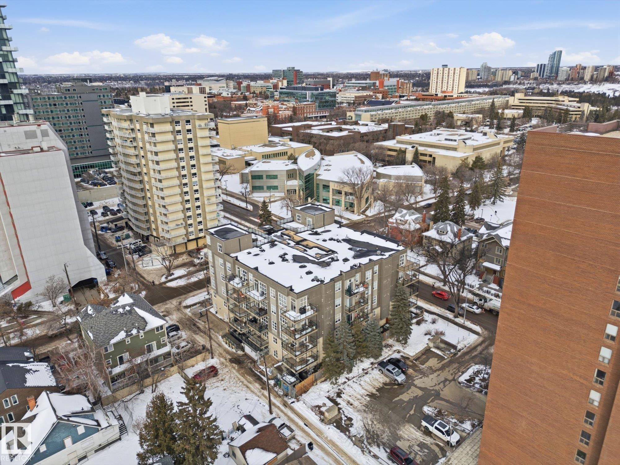 CENTRAL AIR CONDITIONING ~ AMAZING 2 BEDROOM, 2 FULL BATH CORNER UNIT ~ AMAZING TREE LINE & DOWNTOWN VIEWS ~ JUST STEPS TO UNIVERSITY of ALBERTA ~ HEATED UNDERGROUND PARKING with STORAGE CAGE ~ WRAP AROUND BALCONY ~ Check out this well maintained corner unit in CAMPUS COURT. This very clean unit features maple cabinetry, built in oven and counter top stove, raised eating bar and ton of cupboard space in the kitchen. Additionally, there are 10' ceilings throughout the unit which makes it feel bright and very open. The fridge, dishwasher, microwave and washer/dryer are all newer. The location is second to none and perfect for students or anyone who works at the University of Alberta or Whyte Avenue. The LRT is super close by and you can easily walk to Whyte Ave or the shops on 109 Street. The River Valley and downtown Edmonton are within blocks. The NE facing balcony is perfect to relax on and enjoy the morning sun plus there is a gas line for your BBQ. Nothing to do but move in and enjoy.