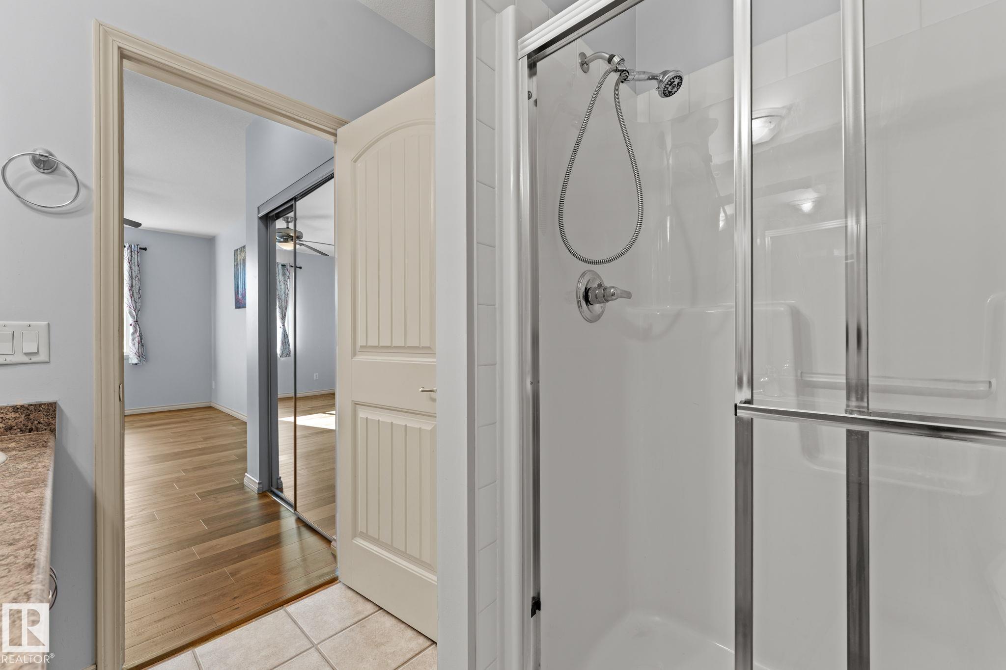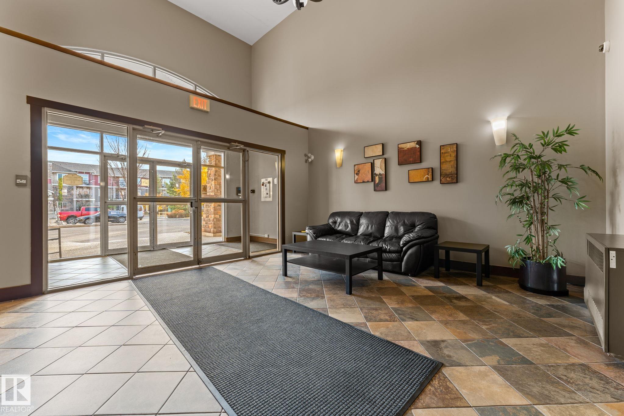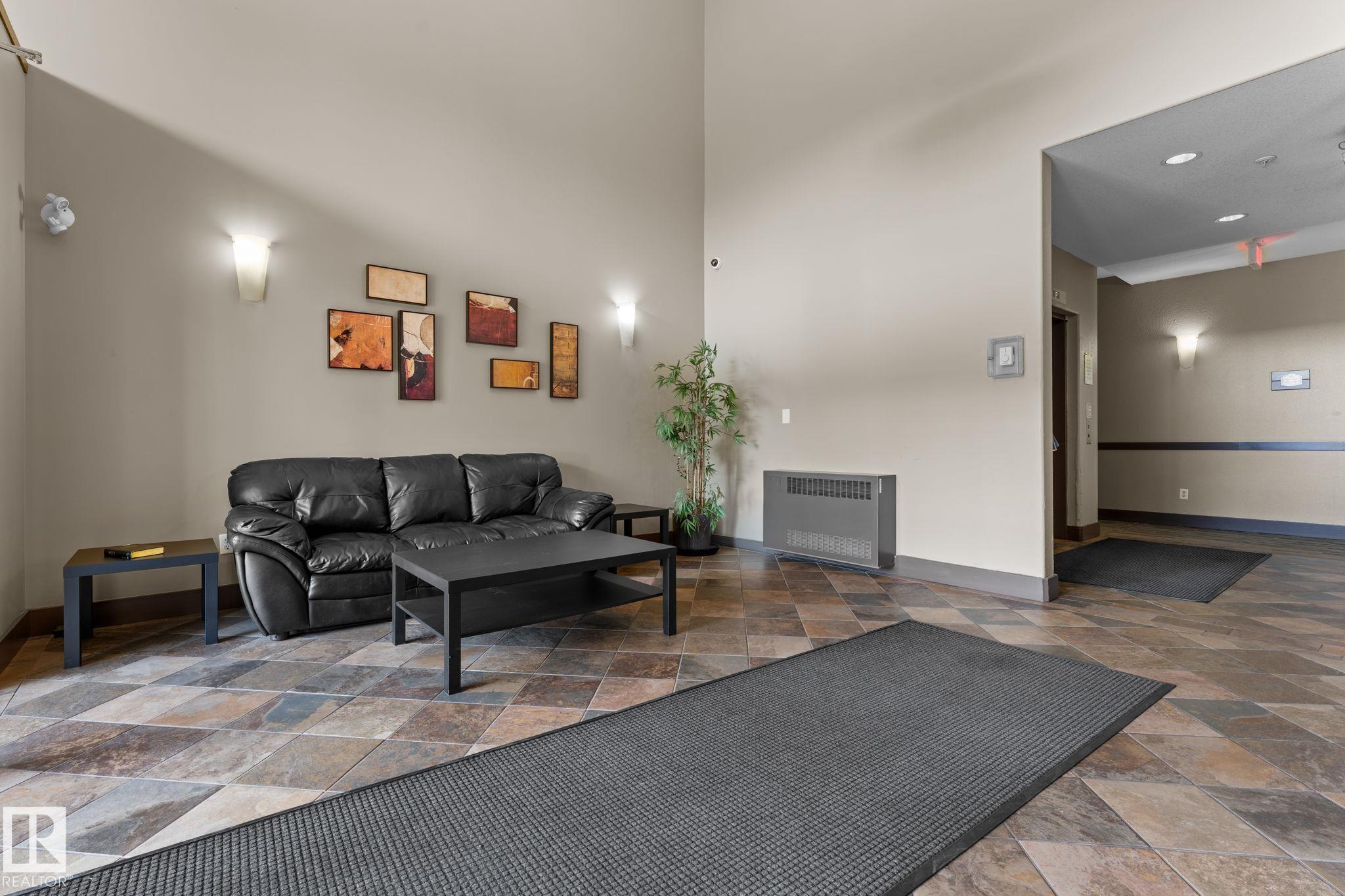 Rare offering, 3 bedroom, 2 bath top-floor corner unit w/ massive wrap-around southeast balcony. Extra large unit at over 1300 sq ft, vaulted 12-ft ceilings, a bright open-concept layout. The spacious primary suite is privately located away from the other bedrooms, easily fits a king bed, and includes dual walk-through closets and a 4-piece ensuite with double sinks and a walk-in shower. This immaculate unit offers newer flooring (no carpet), A/C, gas fireplace, gas BBQ hookup. The kitchen, dining, and living areas flow seamlessly, creating an airy, light-filled space perfect for entertaining. Large laundry room w/ extra storage, 2 titled heated underground parking stalls (one beside the elevator and one beside the stairwell), and storage locker. Condo fees incl. heat, water, and sewer. Pet-friendly building offers premium amenities: fitness room, theatre, games lounge, guest suite, and car wash bay Situated, within minutes of major shopping, dining, and quick access to the Anthony Henday.