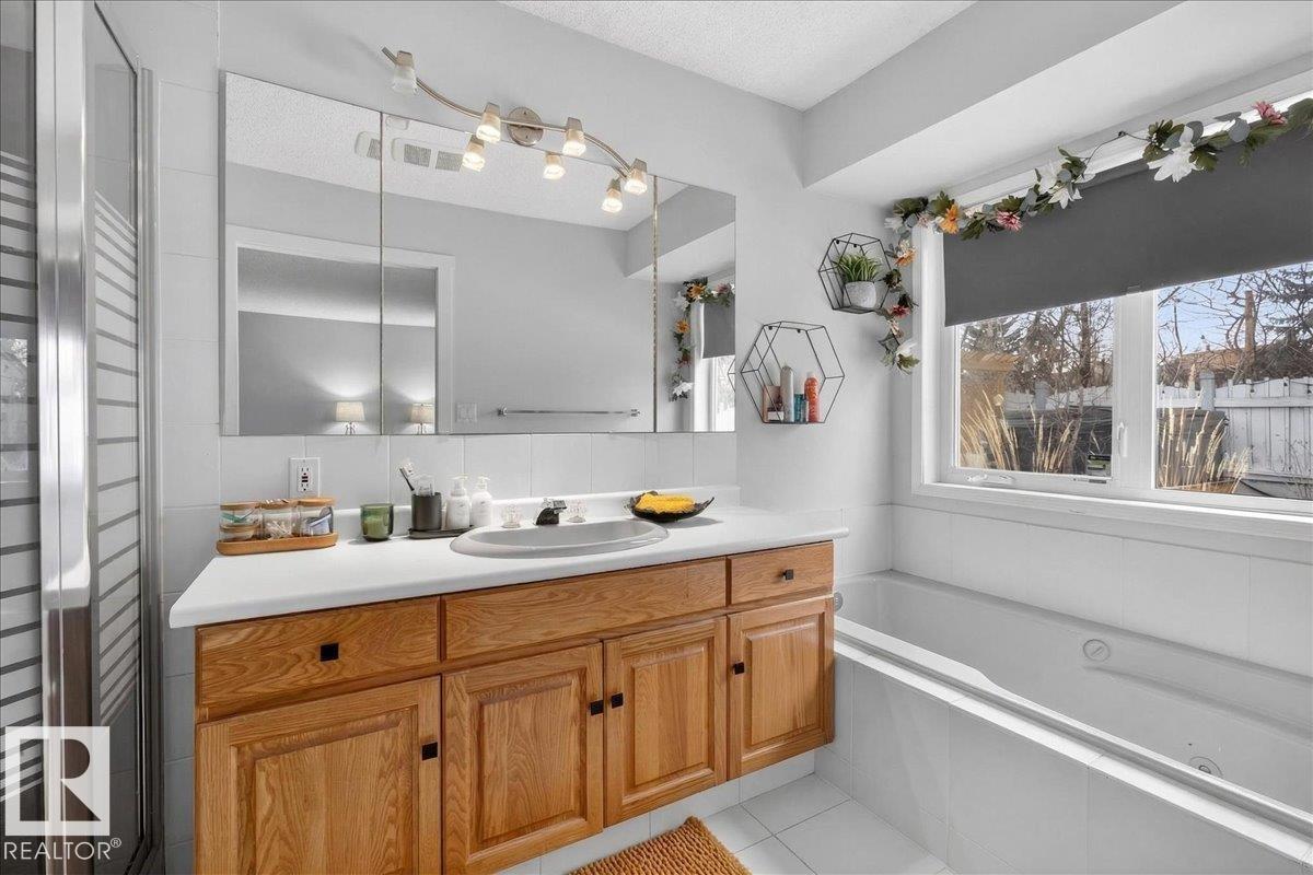 Beautifully maintained bungalow thats been in the same family since new! Main floor is flooded w/ natural light from the bay windows. Open concept, dining, living area w/ a cozy fireplace. Kitchen has beautiful oak cabinets, tons of counter space, walk in pantry, breakfast nook. Main floor laundry. Master suite is massive w/ wall to wall closet, 4PC ensuite. Second bedroom is large w/ wall to wall closet as well. Another 4PC bath upstairs. Basement has pot lights through out w/ a 2nd kitchen for multi generational living OR turn it into a bar/ games room for the ultimate entertaining area. Another 4PC bath on in the basement. 3rd Large bedroom. There is a large unfinished area in the basement with a roughed in laundry and potential to build in another bedroom. HEATED dbl attached garage. Amazing backyard has a tiled patio, built in summer kitchen w/ BBQ & mini fridge. Another deck w/ Pergola & roughed in for hot tub. Backing onto natural area & no thru road. Don't miss out on this GEM!
