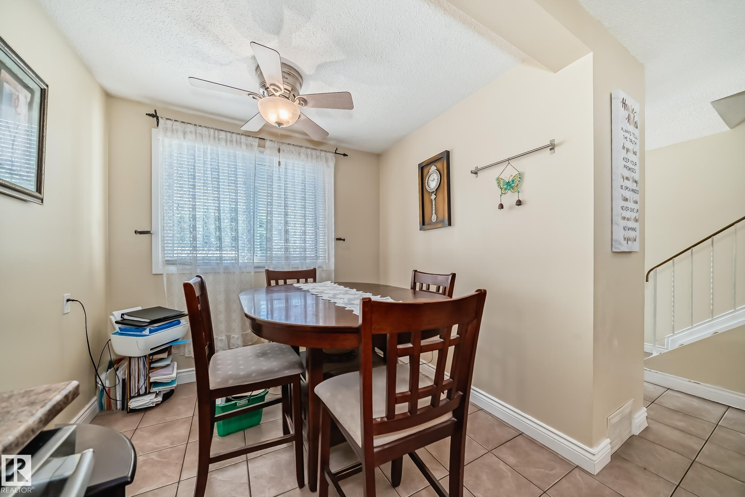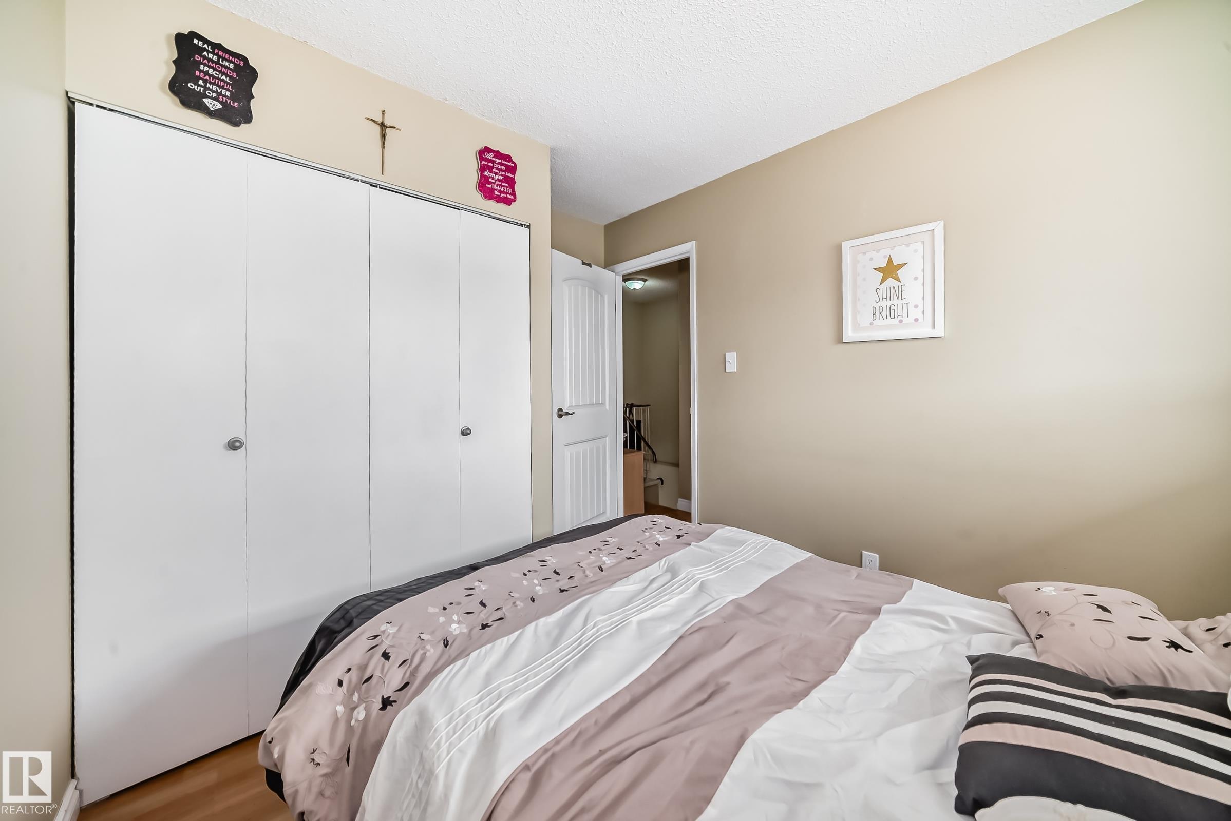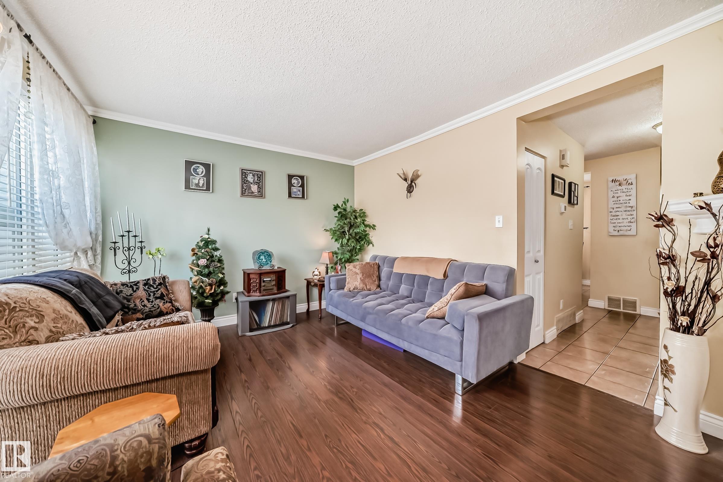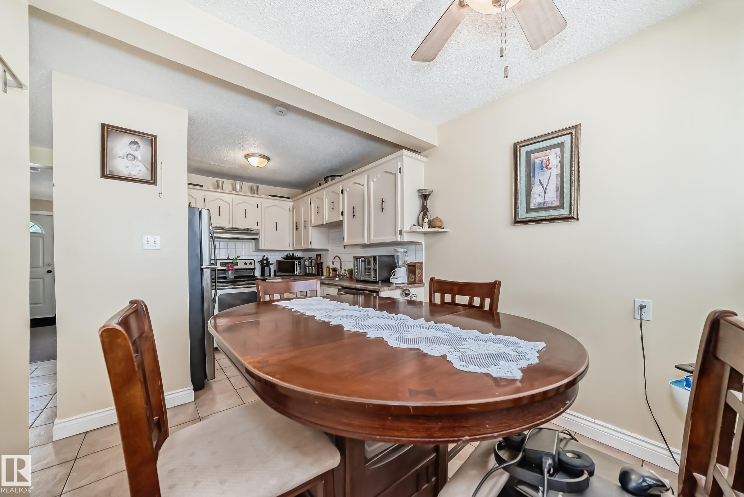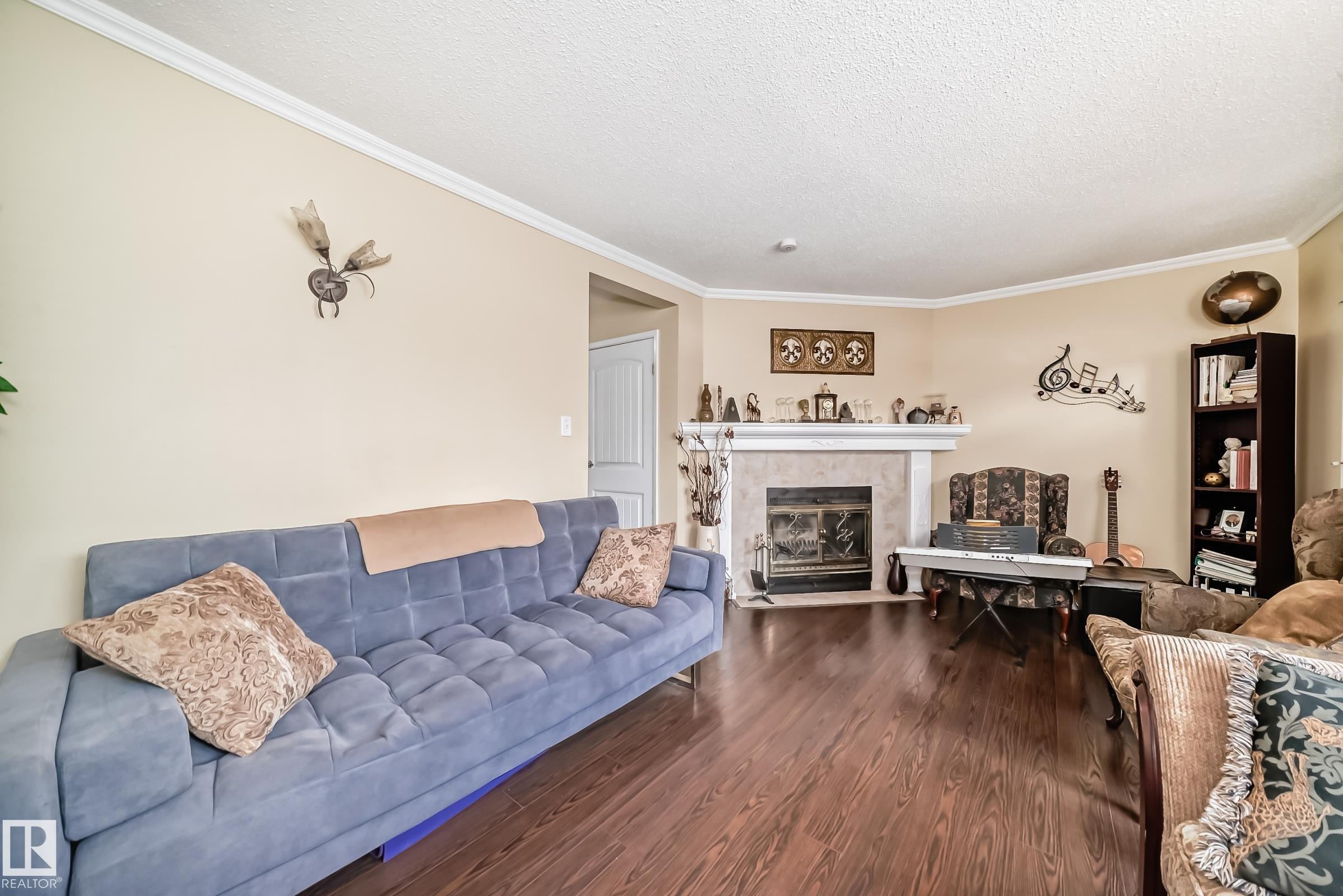 Beautiful 3-bedroom townhome in the desirable Kernohan neighbourhood is fully finished on all three levels. The bright and welcoming living room features a cozy wood-burning fireplace with tile surround and mantel, laminate and ceramic tile flooring, and crown moldings throughout. The kitchen with stainless steel appliances, ceramic tile, a double sink, and modern light fixtures. A convenient main floor half bath with granite countertop completes this level. Upstairs, the spacious primary bedroom offers laminate flooring, a walk-in closet, and a ceiling fan, accompanied by two additional bedrooms and a 4-piece bathroom. The finished basement includes a generous recreation room, laundry area, and a large storage room with built-in shelving. Additional features include two parking stalls right in front of the unit, front and back fenced yards, and access to a dedicated kids' play area within the complex. Ideally located just steps from a large park and schools!