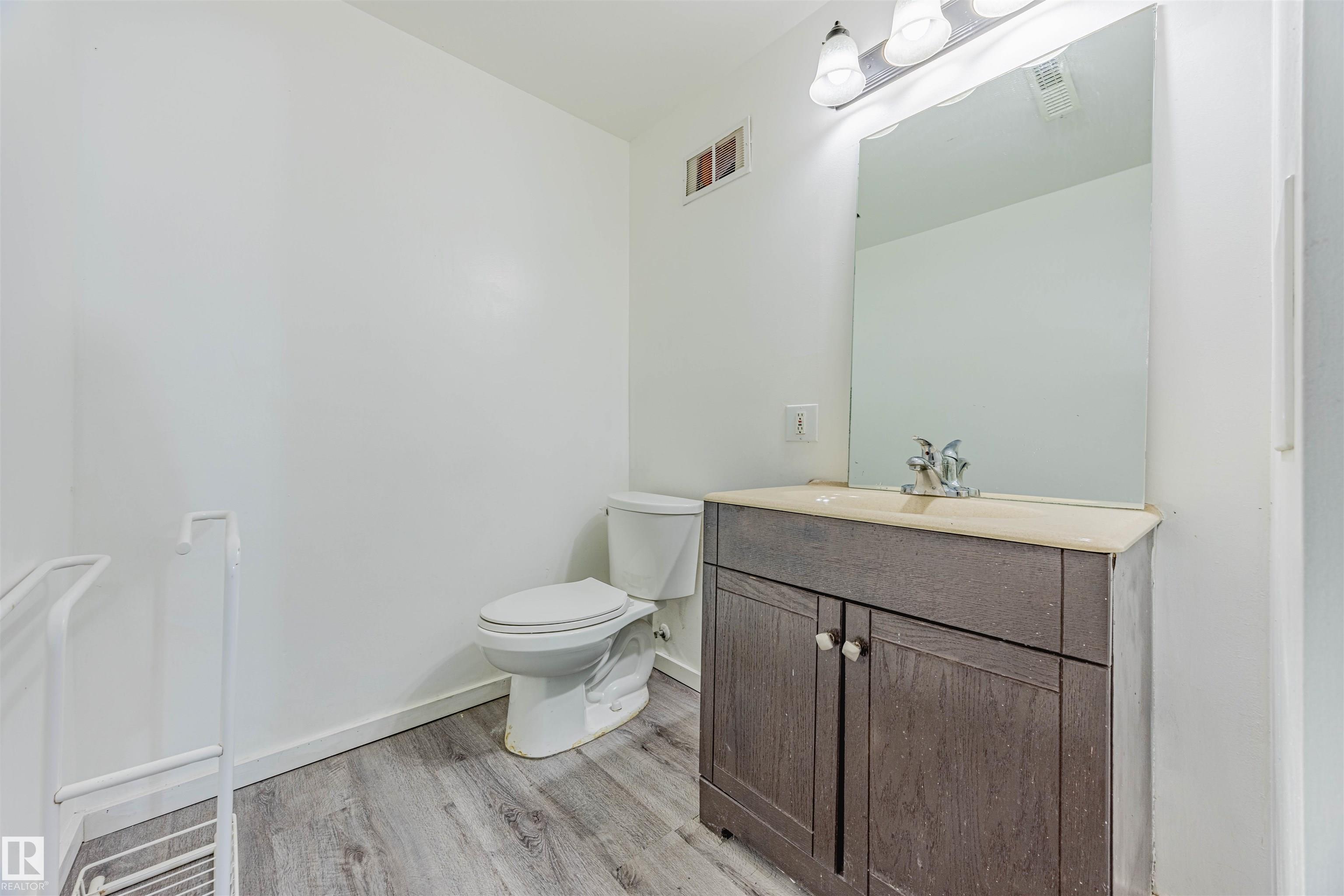 Beautifully renovated 3 bedroom, 2 full bath townhome in a well-managed complex with VERY LOW CONDO FEES-APPROXIMATELY $200 BELOW AREA AVERAGE! Offering a rare combination of TWO FULL BATHROOMS AND A FINISHED BASEMENT, this home provides exceptional space and versatility. The south-facing fenced yard backs onto a park, adding both privacy and outdoor enjoyment. Numerous updates include a modern kitchen, upgraded flooring (laminate, carpet, tile & plank vinyl), fresh paint, lighting, interior doors, casings, baseboards, furnace, water heater and appliances. The complex has also been upgraded with newer vinyl siding, windows and doors, ensuring long-term value. The main floor features a spacious eat-in kitchen and large living room; upstairs offers 3 bedrooms and a 4-pce bath. The finished basement includes a family room, 3-pce bath, laundry and storage. Assigned parking plus optional leased stalls at very low rates. Ideally located near trails, Hermitage Park, schools, shopping, transit, and major routes!