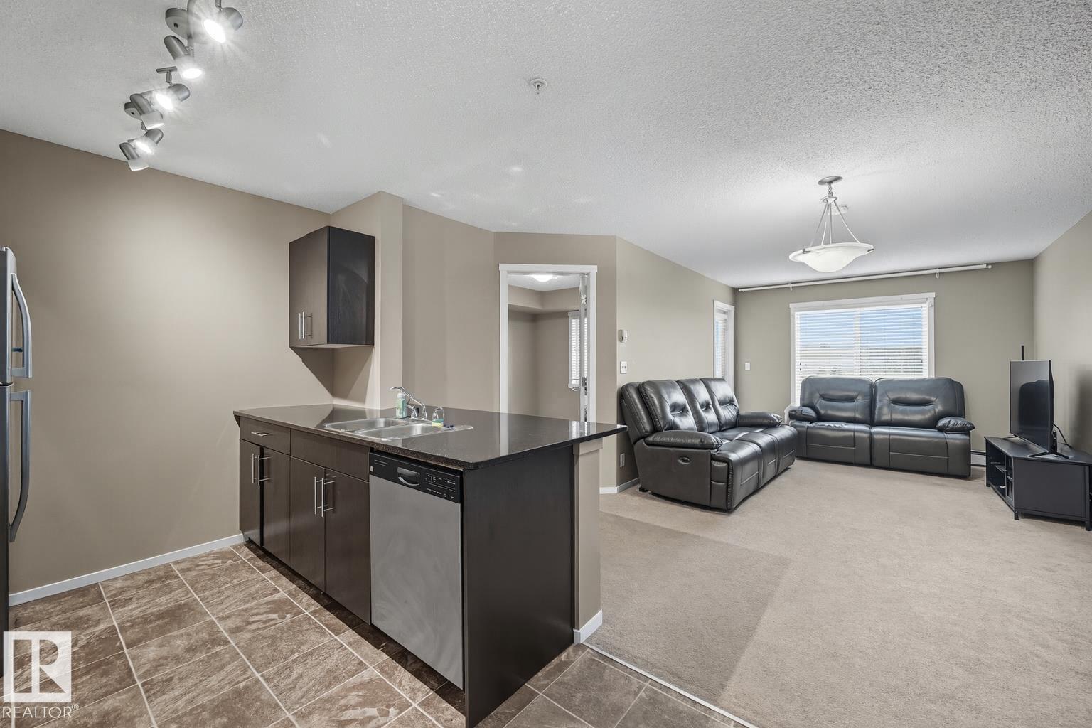 Welcome to this stylish 2 BEDROOM, 2 BATHROOM condo with a versatile DEN with cabinets, perfect for a home office or hobby space. Offering a open-concept layout, this unit provides both comfort and functionality for modern living. The kitchen features plenty of cabinetry and counter space, flowing seamlessly into the living area, ideal for entertaining or relaxing at the end of the day. The primary bedroom includes a walk-through closet and private ensuite, while the second bedroom is generously sized with easy access to the main bath. This unit also comes with TWO PARKING STALLS, one secure underground stall and one convenient surface stall. Located just minutes away from shopping, restaurants, and with quick access to the Anthony Henday, this condo is perfectly situated for convenience and lifestyle. Whether you're a first-time buyer, downsizer, or investor, this home is a fantastic opportunity you won't want to miss!