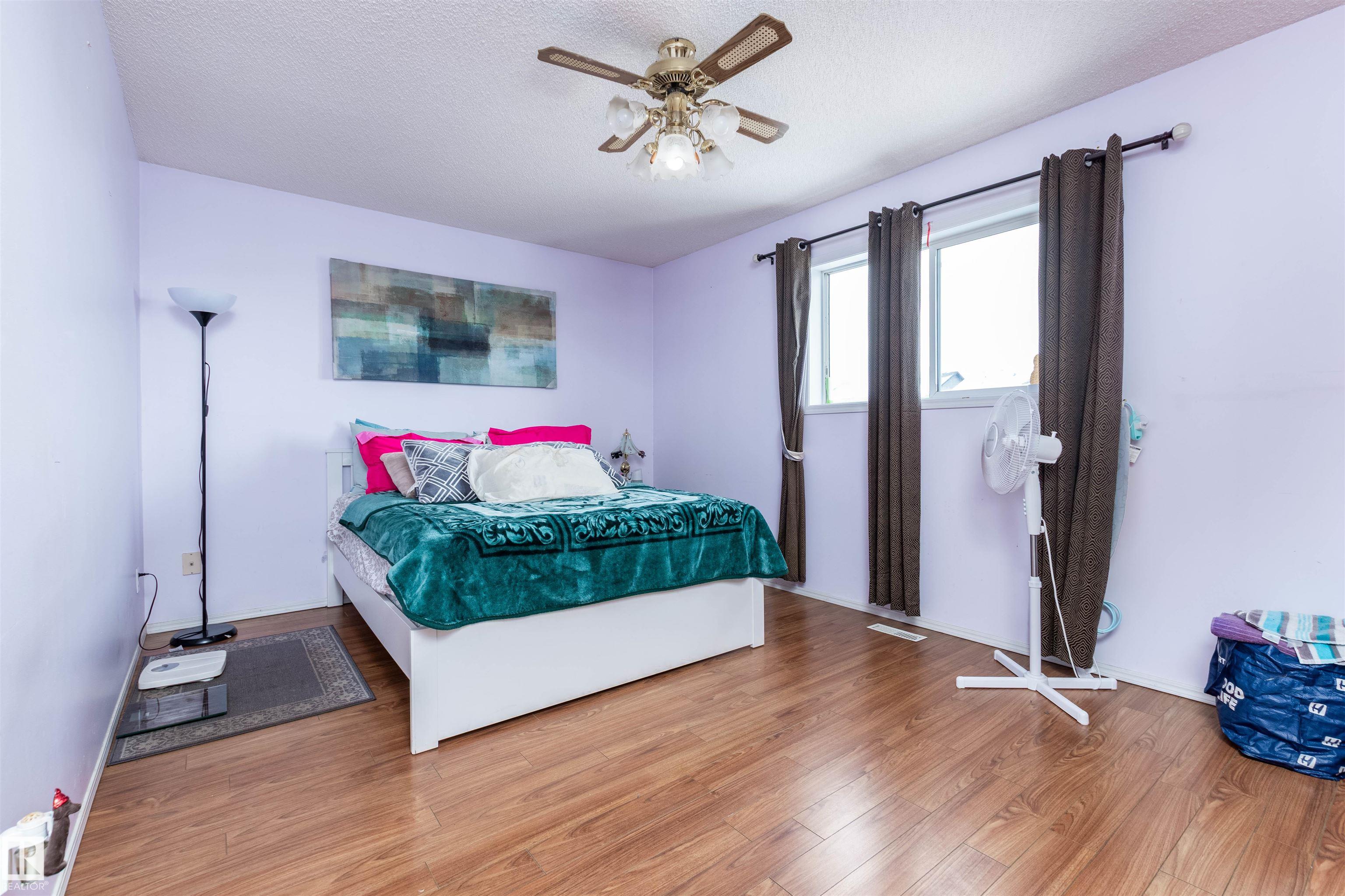 Tucked away in a cul-de-sac and backing onto a green belt, this bright and spacious bi-level in Matt Berry offers the perfect blend of comfort, function, and location. The main floor features a welcoming living room with a bay window and laminate flooring, a formal dining room, and a large kitchen with eating area, corner walk-in pantry, and patio doors leading to the impressive two-tiered deck. There are 3 good-sized bedrooms up, including a generous primary suite with walk-in closet and 4-piece ensuite. The fully finished basement adds even more living space with a large family room featuring a gas fireplace, a big 4th bedroom with walk-in closet, a den with French doors, a 3-piece bath, and laundry area. Outside, enjoy the fenced and landscaped yard with plenty of room to relax, entertain, and enjoy the peaceful setting. Close to schools, shopping, parks, and public transit.