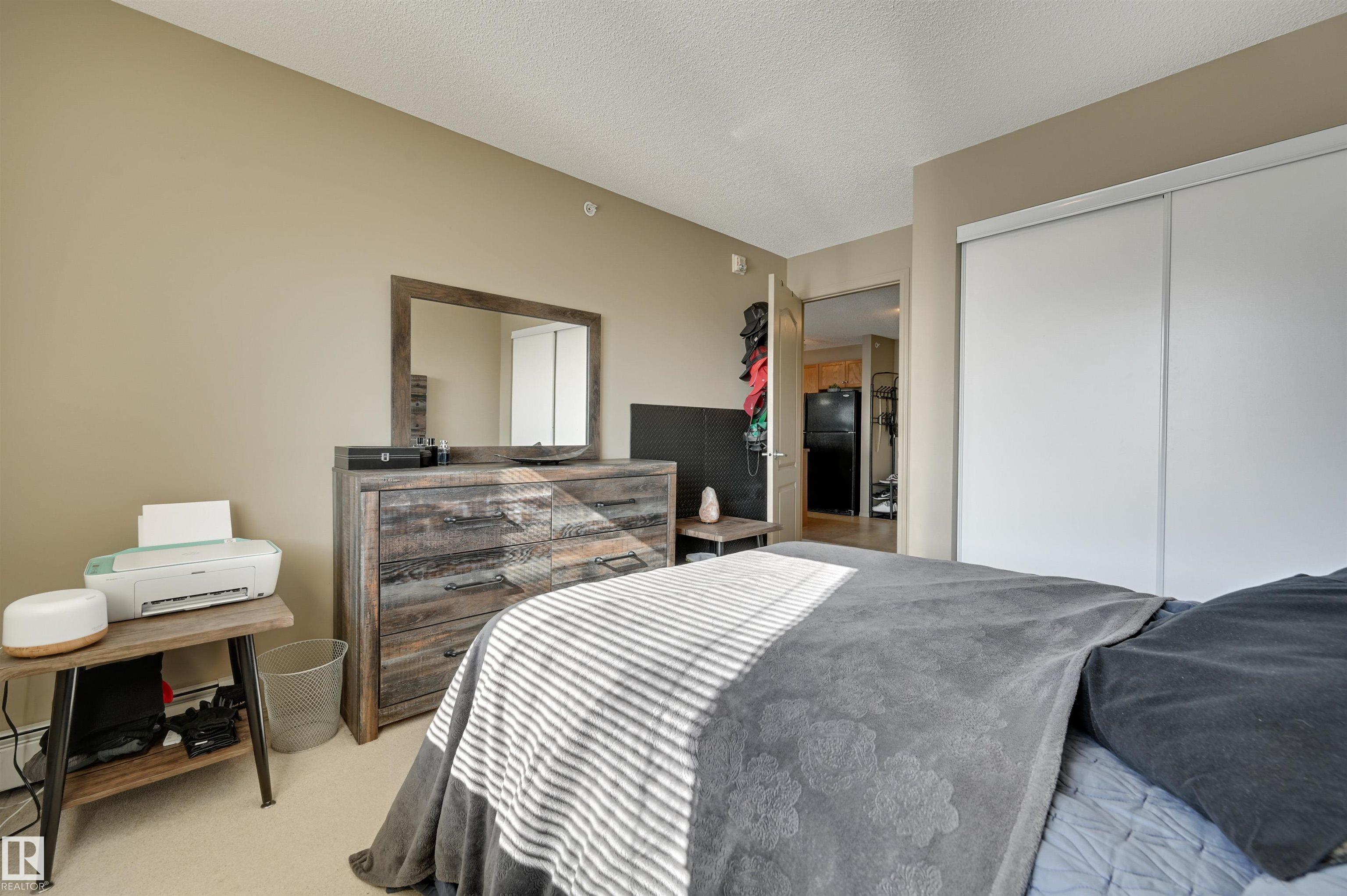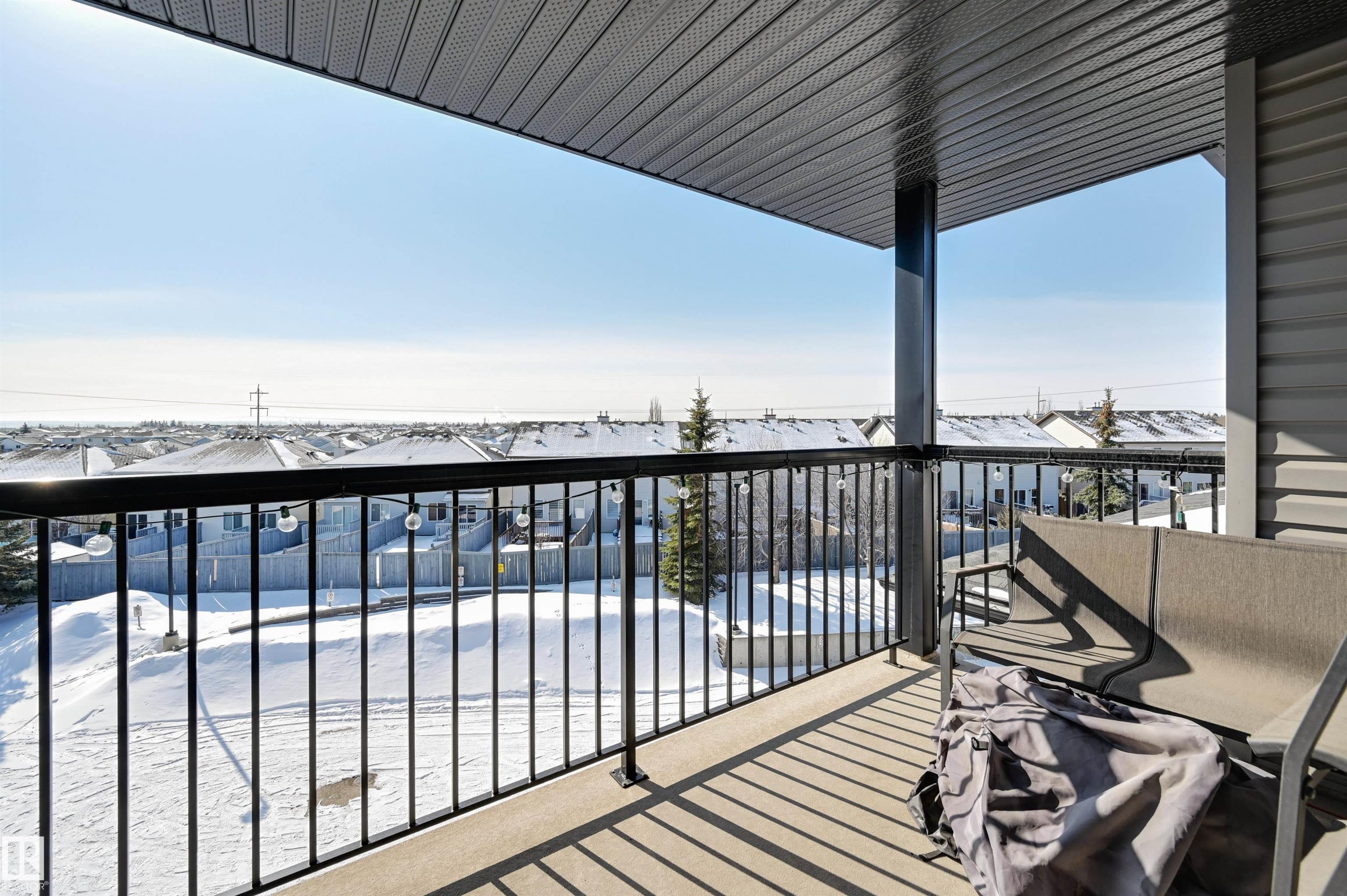 Splendid Top Floor, spacious one bedroom, with a private covered balcony offering great views. You will not feel cramped for space in this open, bright, functional floor plan with large living spaces. The kitchen with ample cabinets and counter space, a bar type counter area, plus dining area overlooking the living room and balcony views. The bedroom is bright, with plenty of closet space, and the bathroom right next door. Convenient in-suite laundry and storage. The large SE balcony with a natural gas line is perfect for enjoying the long days of summer. For your enjoyment, a fitness room plus a games/ social room. Fantastic, well-kept building located in a quiet location, tucked away amongst houses in the thriving community of Matt Berry. Conveniently located to many amenities/essentials, parks, schools, shopping, a few minutes to major roads including Anthony Henday, Public transit just outside the building, and a quick trip to the LRT. This home offers great value with a low-maintenance lifestyle.
