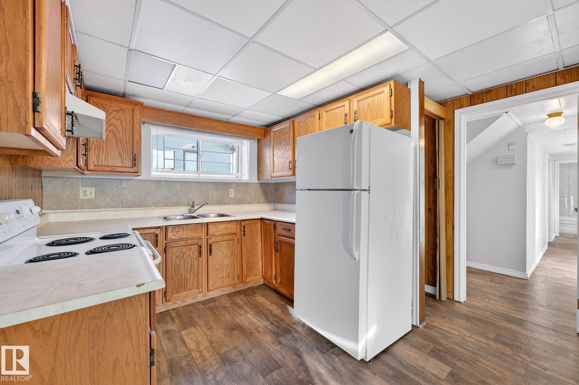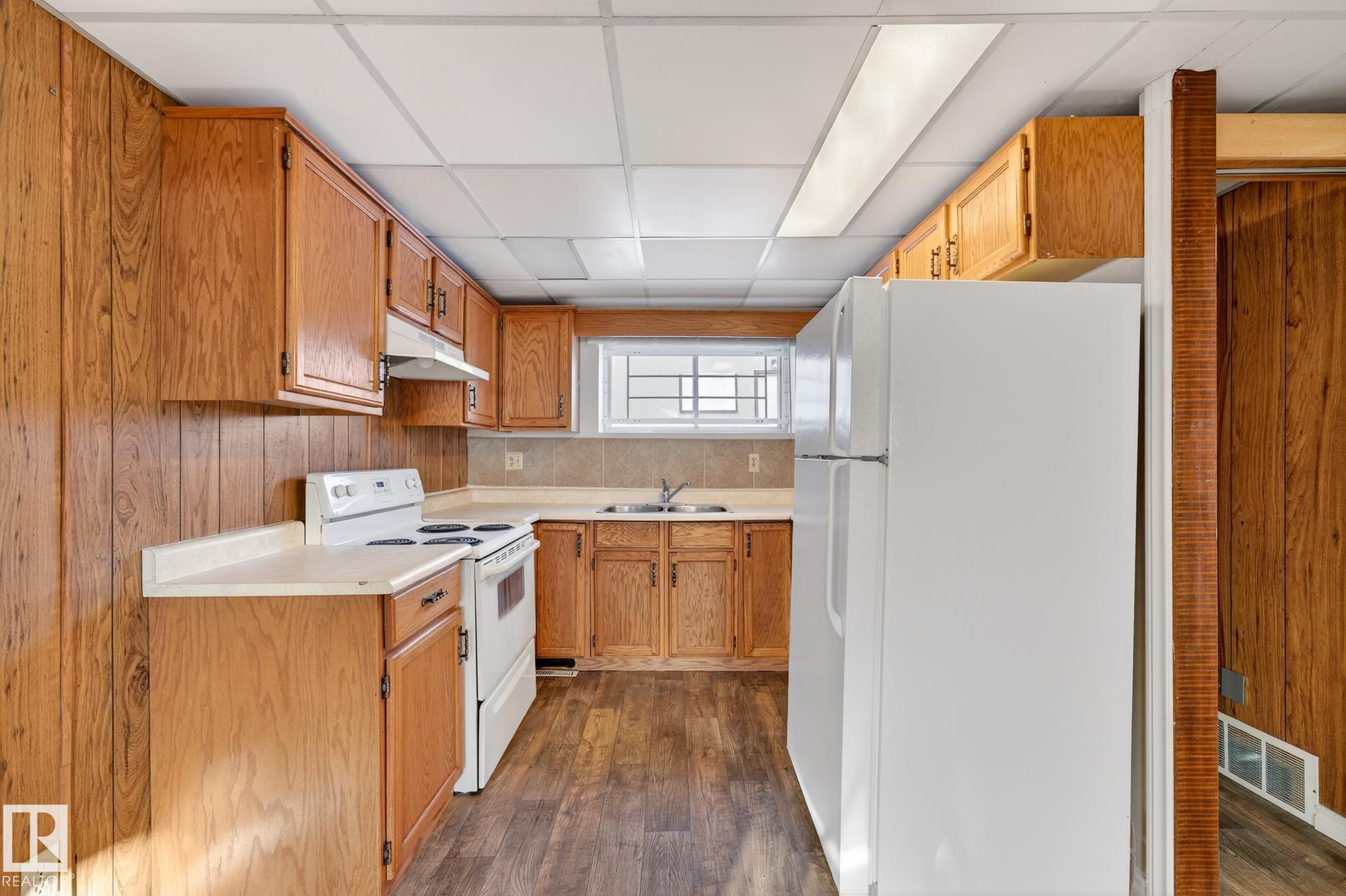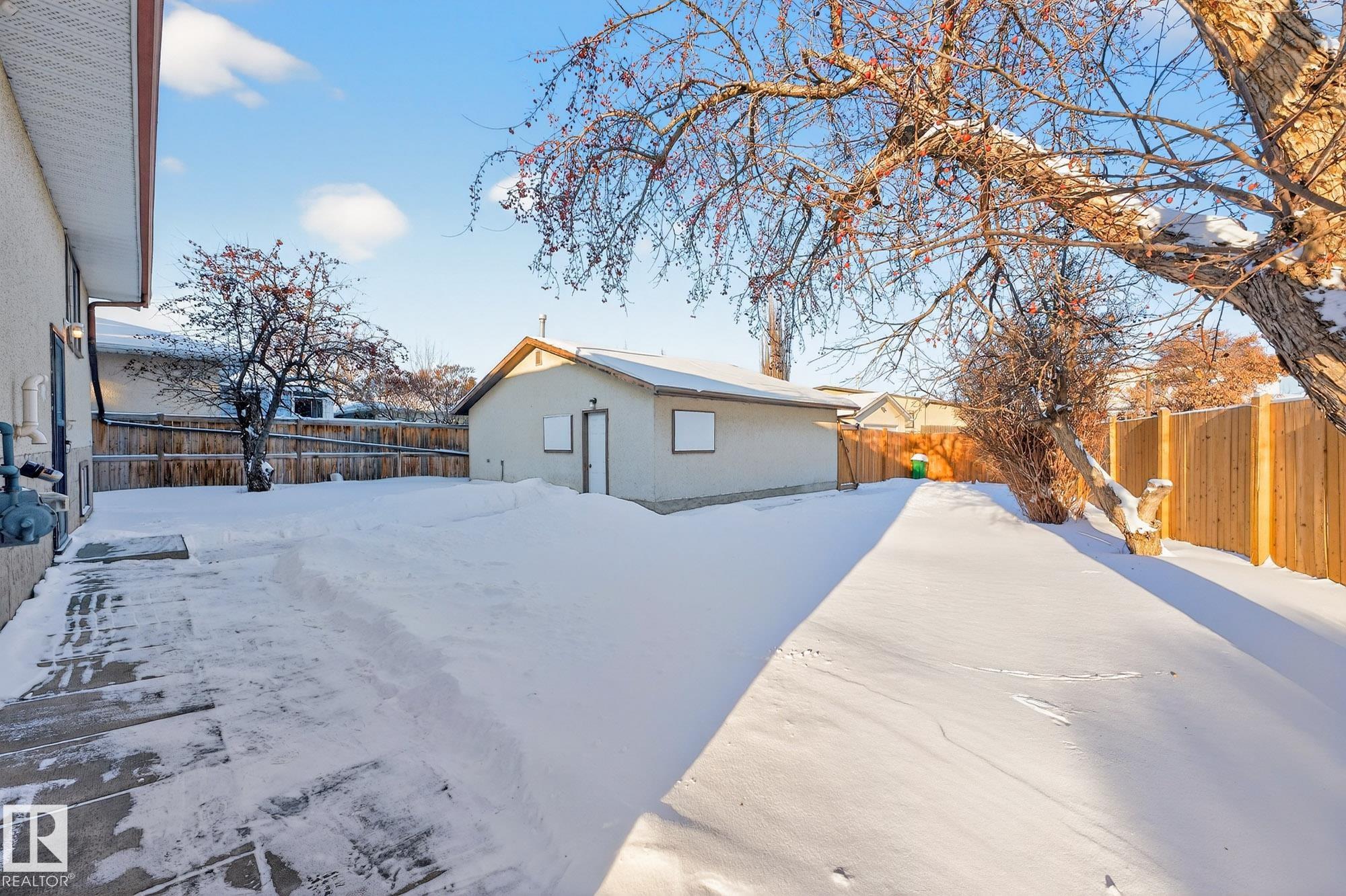 Excellent location! Walking distance to North Town Centre & Northgate Mall; easy access to 97 St and 137 Ave! This charming and newly renovated 1,268 sq ft bi-level offers total of 5 bedrooms, 2.5 bathrooms, 2 kitchens, 2 living rooms, dining room, eating area and a double detached oversized garage with big concrete driveway. Main floor offers a living room with large, bright windows & hardwood flooring, a large dining room, and a kitchen with large cabinets, pantry and tile flooring. Full bathroom with brand new vanity and flooring. Master bedroom has walk-in closet & ensuite. And 2 south-facing bedrooms. FULLY FINISHED BASEMENT with SEPARATE ENTRANCE, kitchen with large cabinets, 2 south-facing bedrooms, huge living room with fireplace & full bathroom. Laundry room in the basement separates from the rest of basement so the privacy of basement suite is not affected. Perfect for owners wanting an in-law suite. Large fenced & landscaped yard with concrete patio & apple tress is great for family with kids.