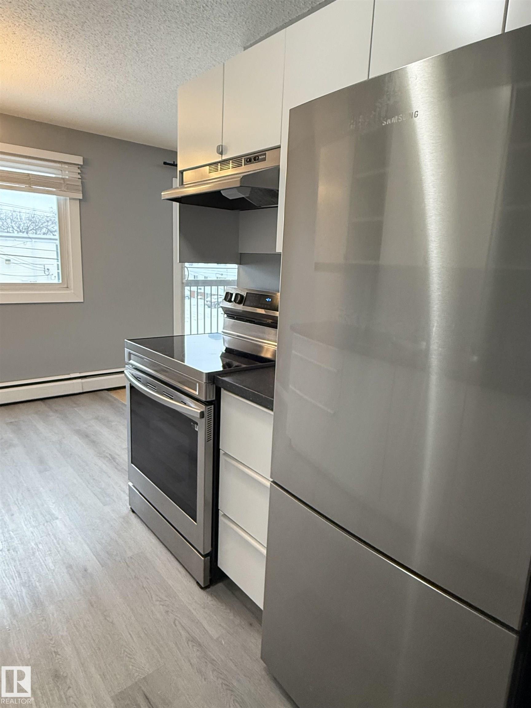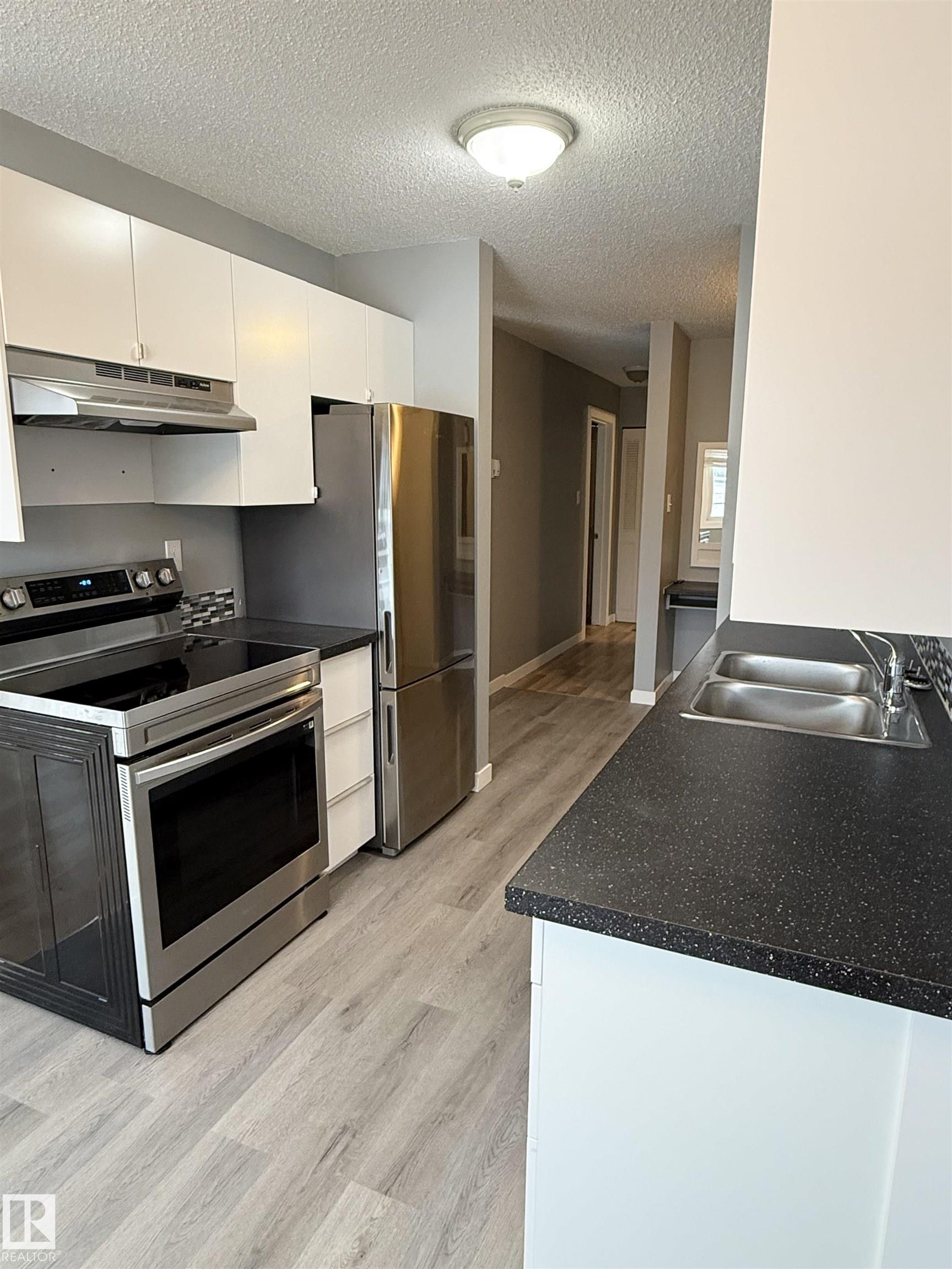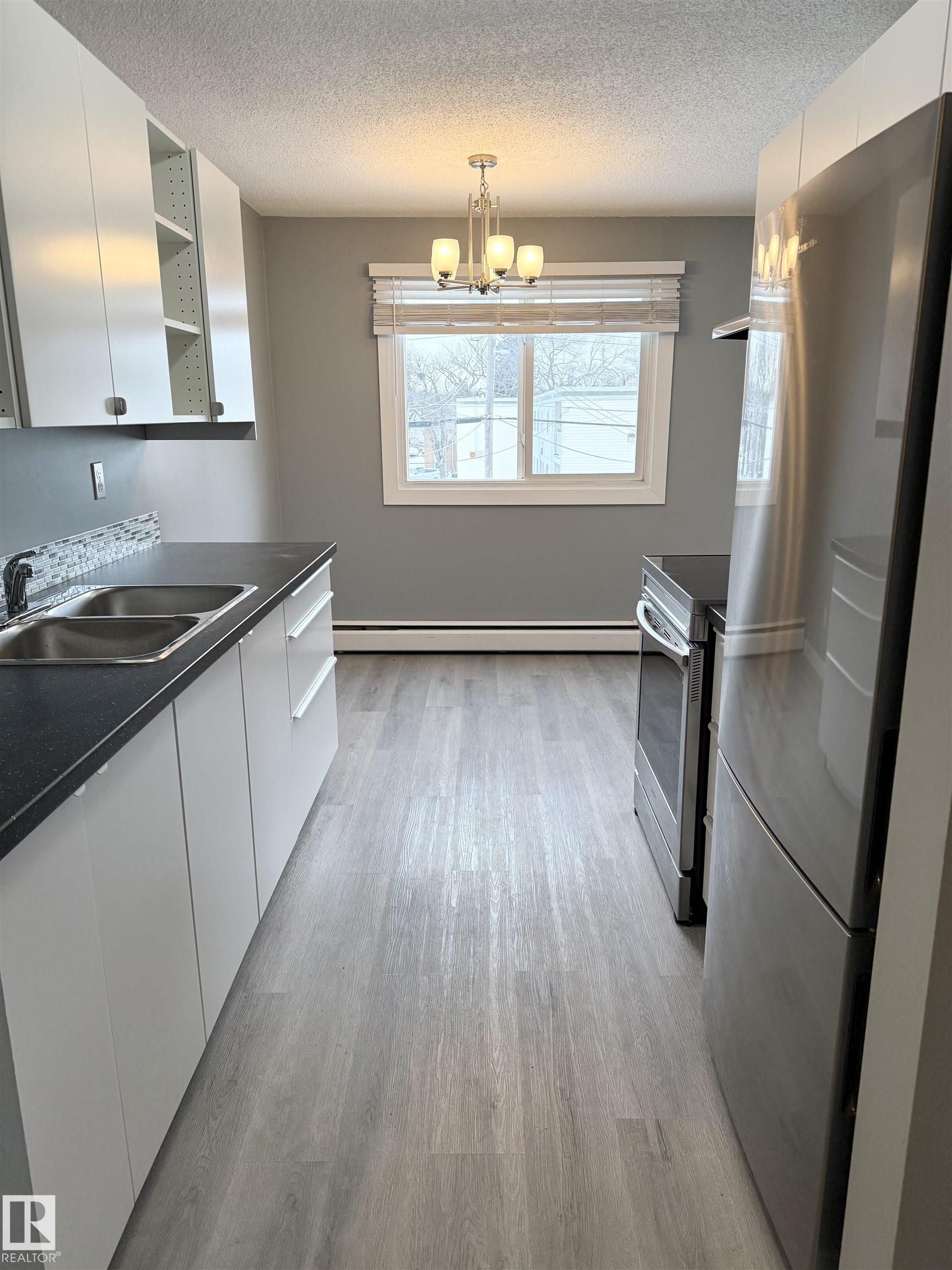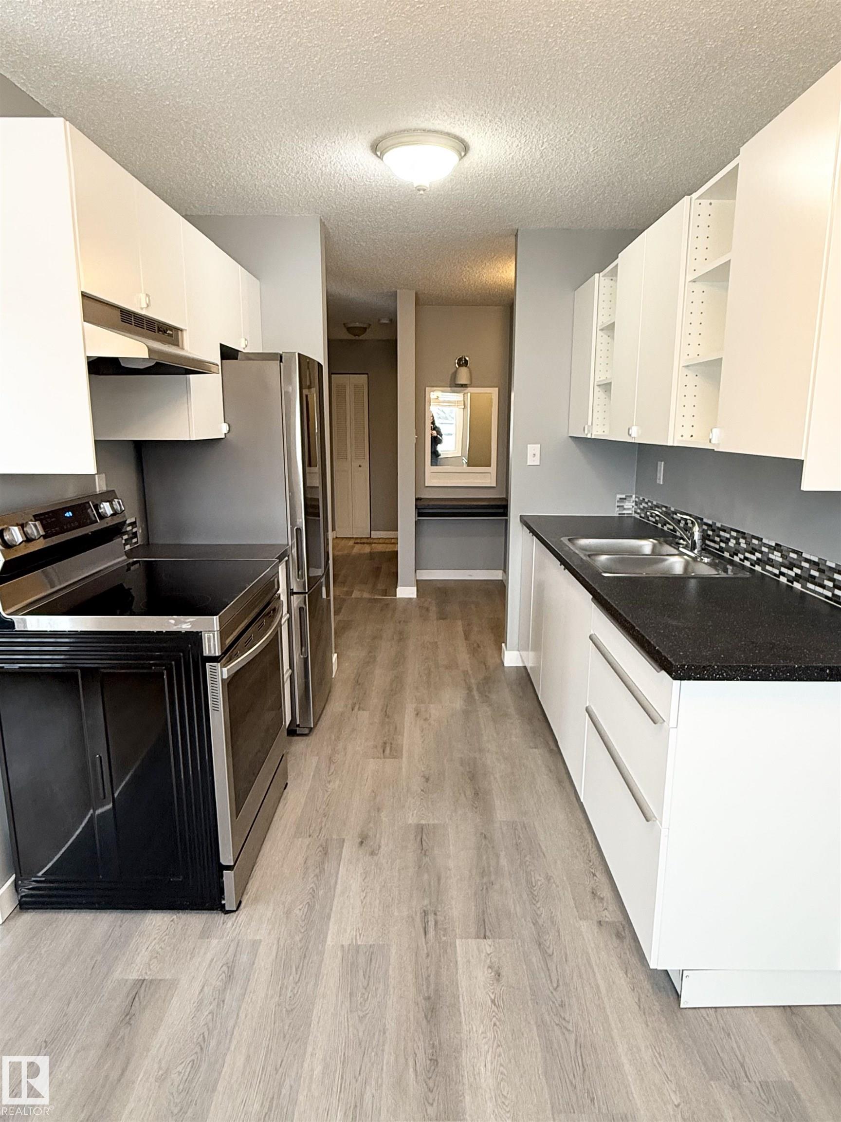 Newly renovated condo just steps from Rogers Place and MacEwan University! This bright, spacious one-bedroom unit features modern updates throughout, including, flooring, paint, soft close cabinets, quartz counters, appliances, updated bathroom, as well as newer windows and a recently replaced roof. Enjoy an open layout with plenty of natural light, plus the convenience of one assigned parking stall. Located within walking distance to top restaurants, shops, and the beautiful River Valley, this home offers the best of urban living. Heat, water, and snow removal are included, making this a hassle-free, move-in-ready opportunity you won't want to miss.