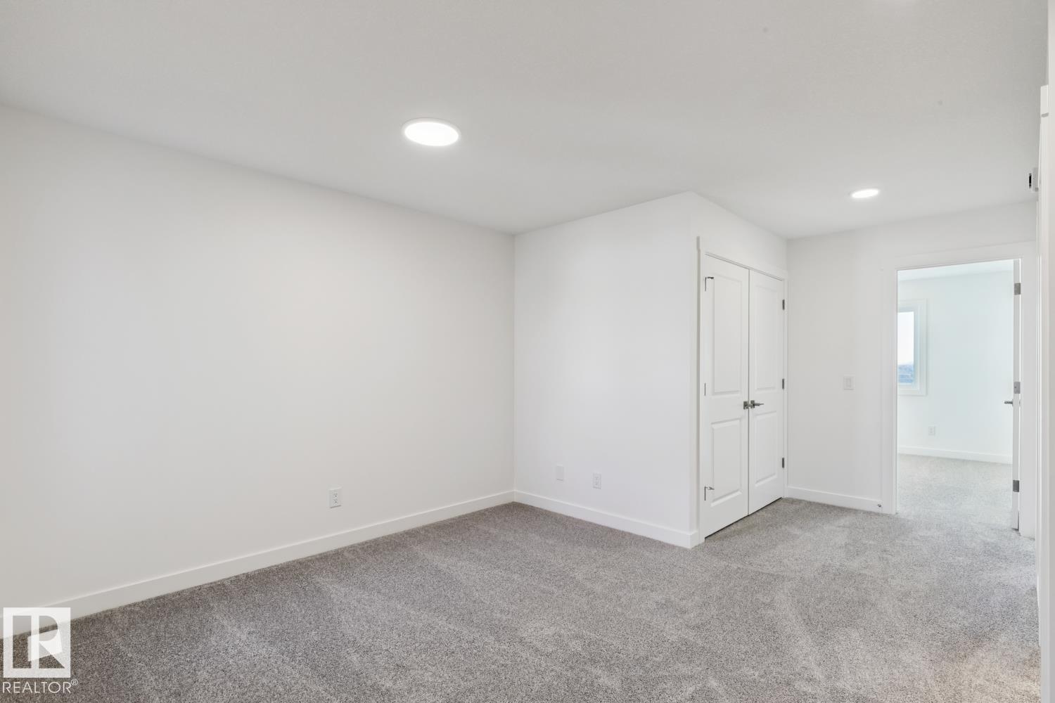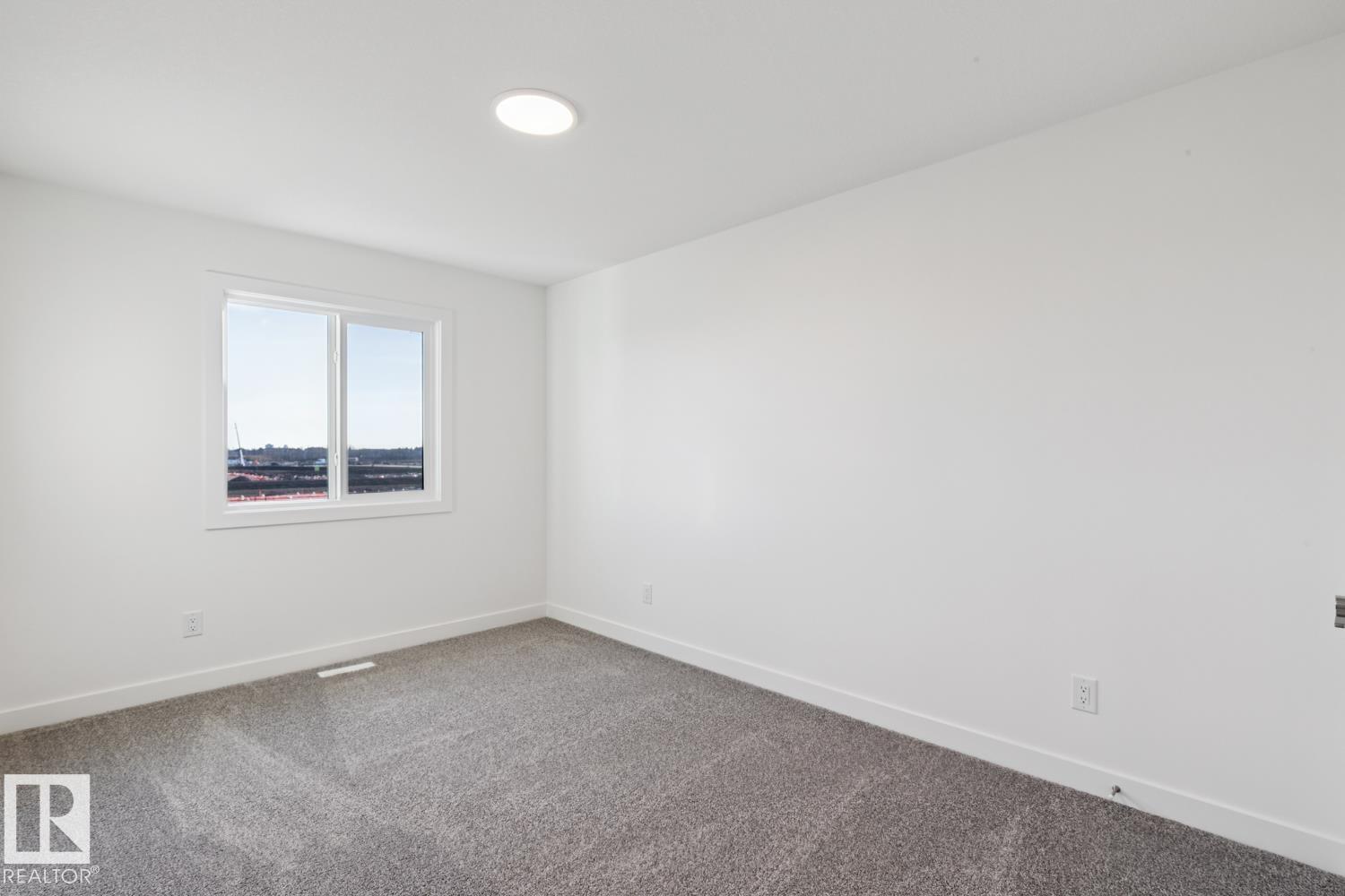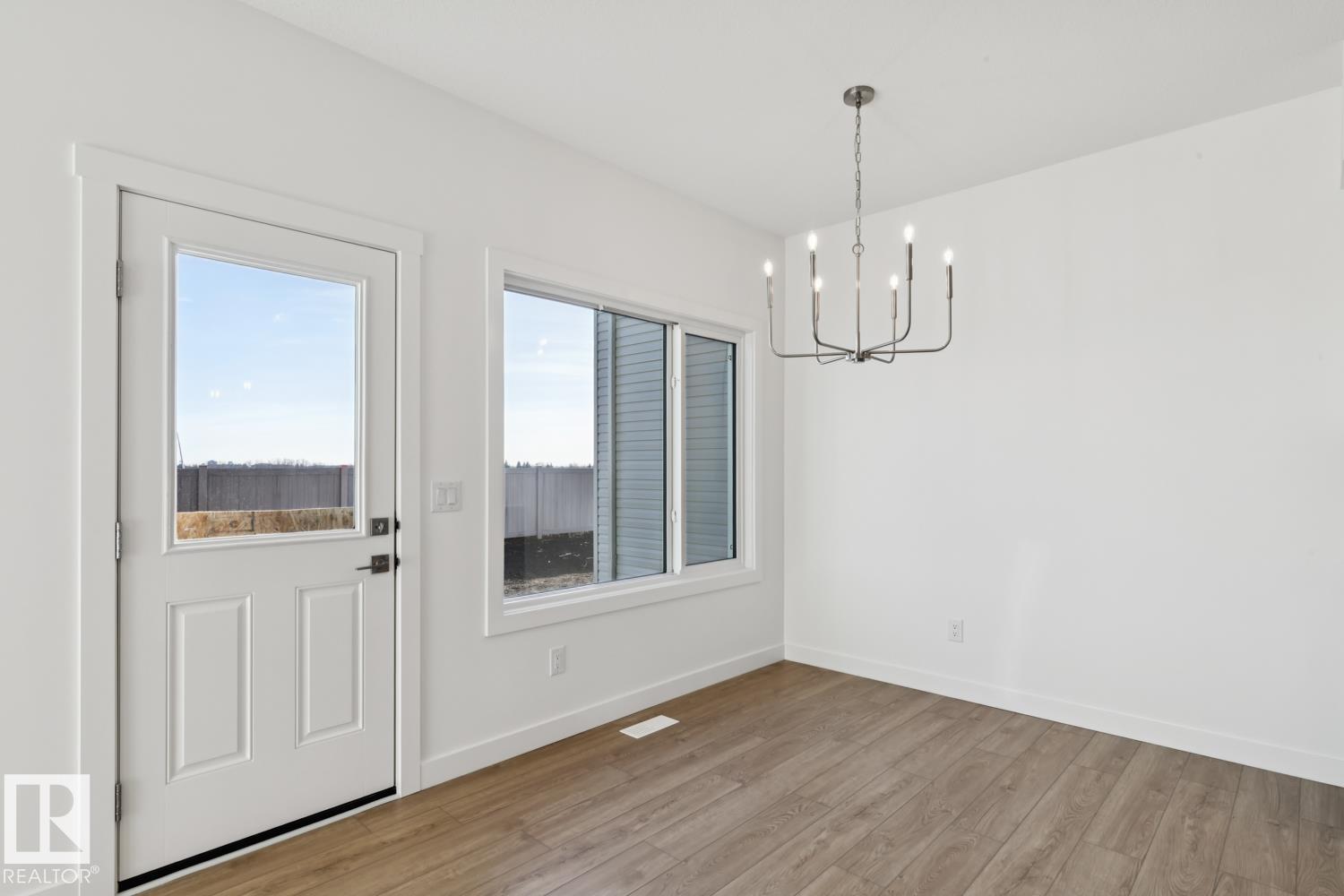 Welcome to the Ascend 22 by Sterling Homes, a well-designed home offering modern finishes and practical living. The main floor features luxury vinyl plank flooring, 9' ceilings, and a welcoming foyer with large coat closet and access to the double attached garage with floor drain. The bright open-concept kitchen, great room, and nook include quartz countertops, island with flush eating ledge, Silgranit undermount sink, built-in microwave, full-height tile backsplash, chimney-style hood fan, soft-close Thermofoil cabinetry, and corner pantry. Large rear windows and a garden door bring in natural light, with an electric fireplace anchoring the great room. A convenient half bath completes the main level. Upstairs offers a primary suite with walk-in closet and 4-piece ensuite with double sinks and glass shower, plus a bonus room, main bath, laundry, and two additional bedrooms. Separate side entrance, brushed nickel fixtures, and basement rough-in complete the home.