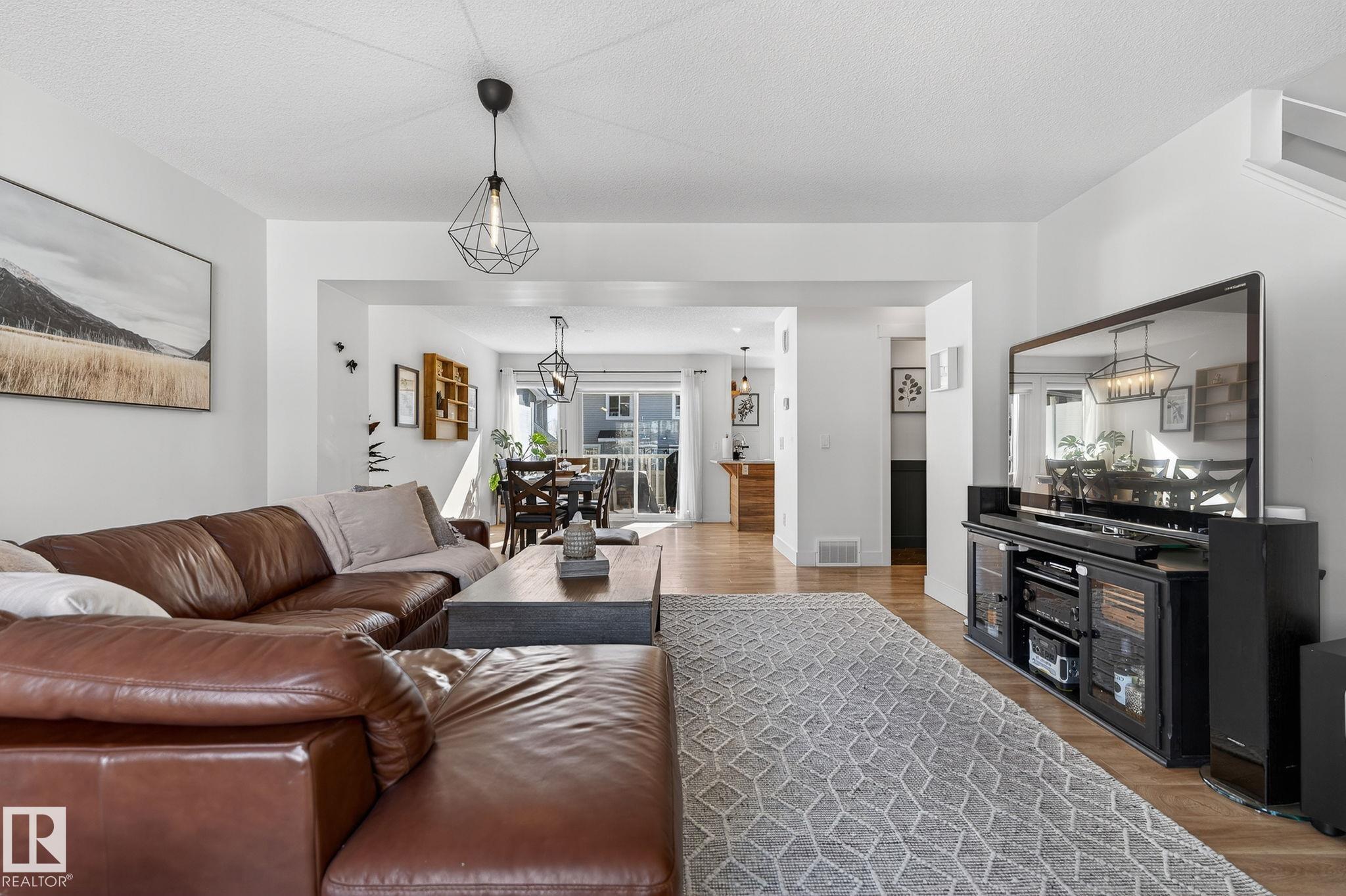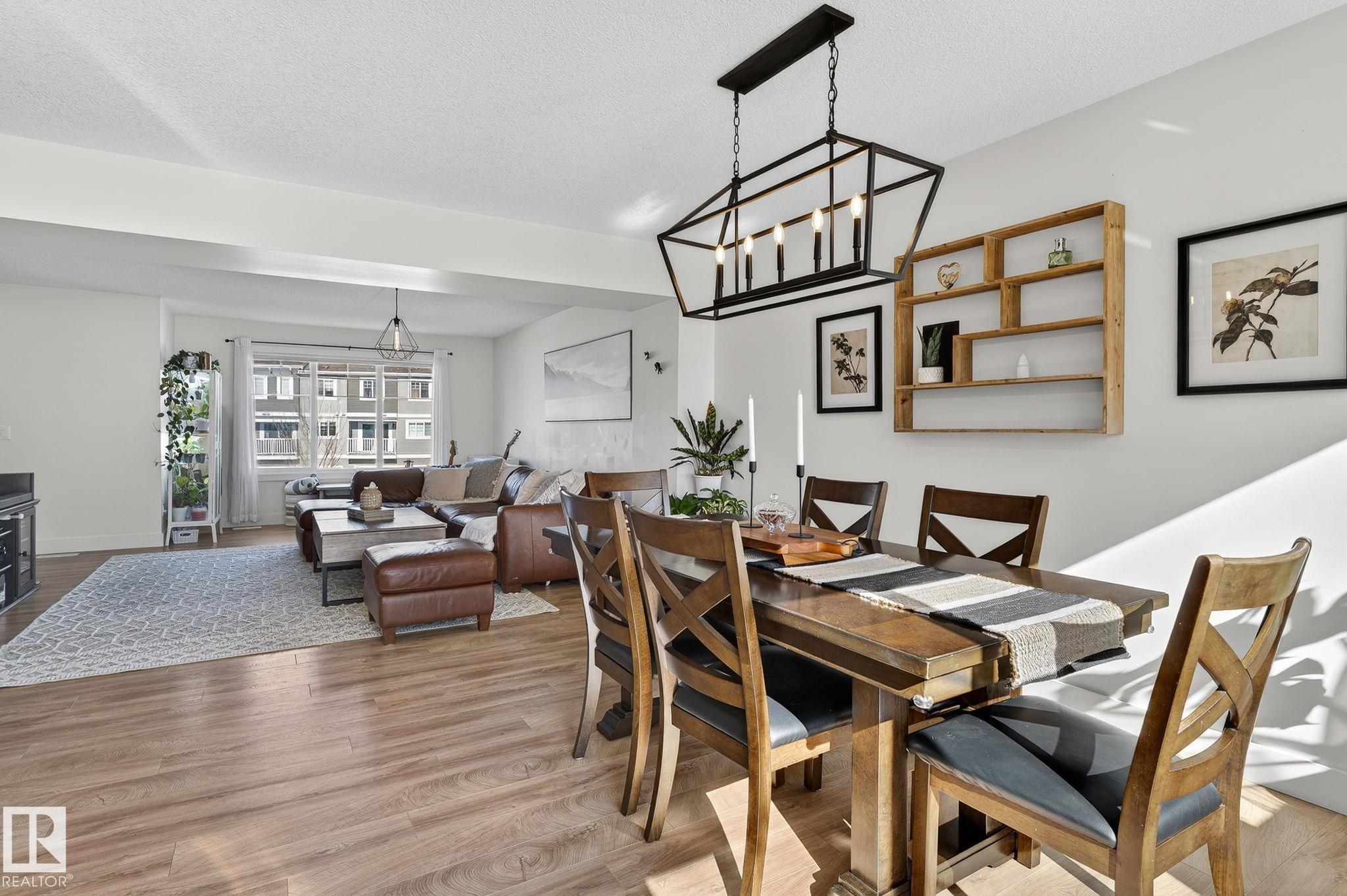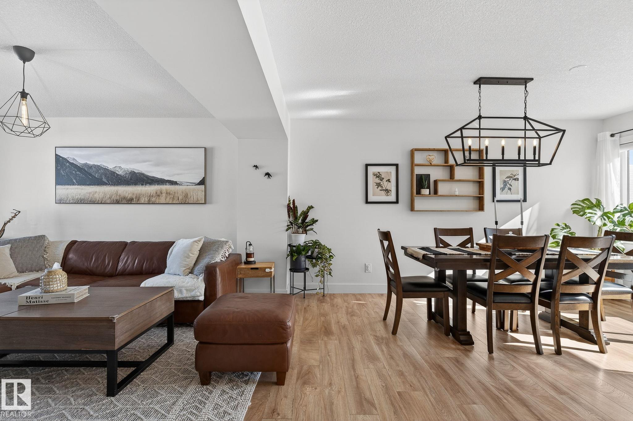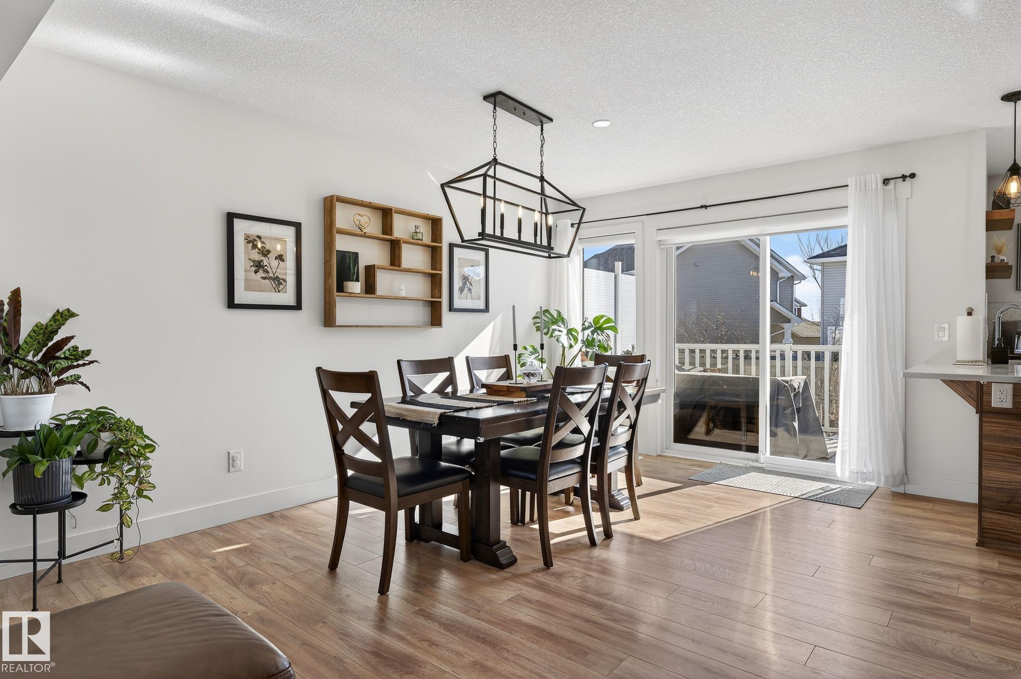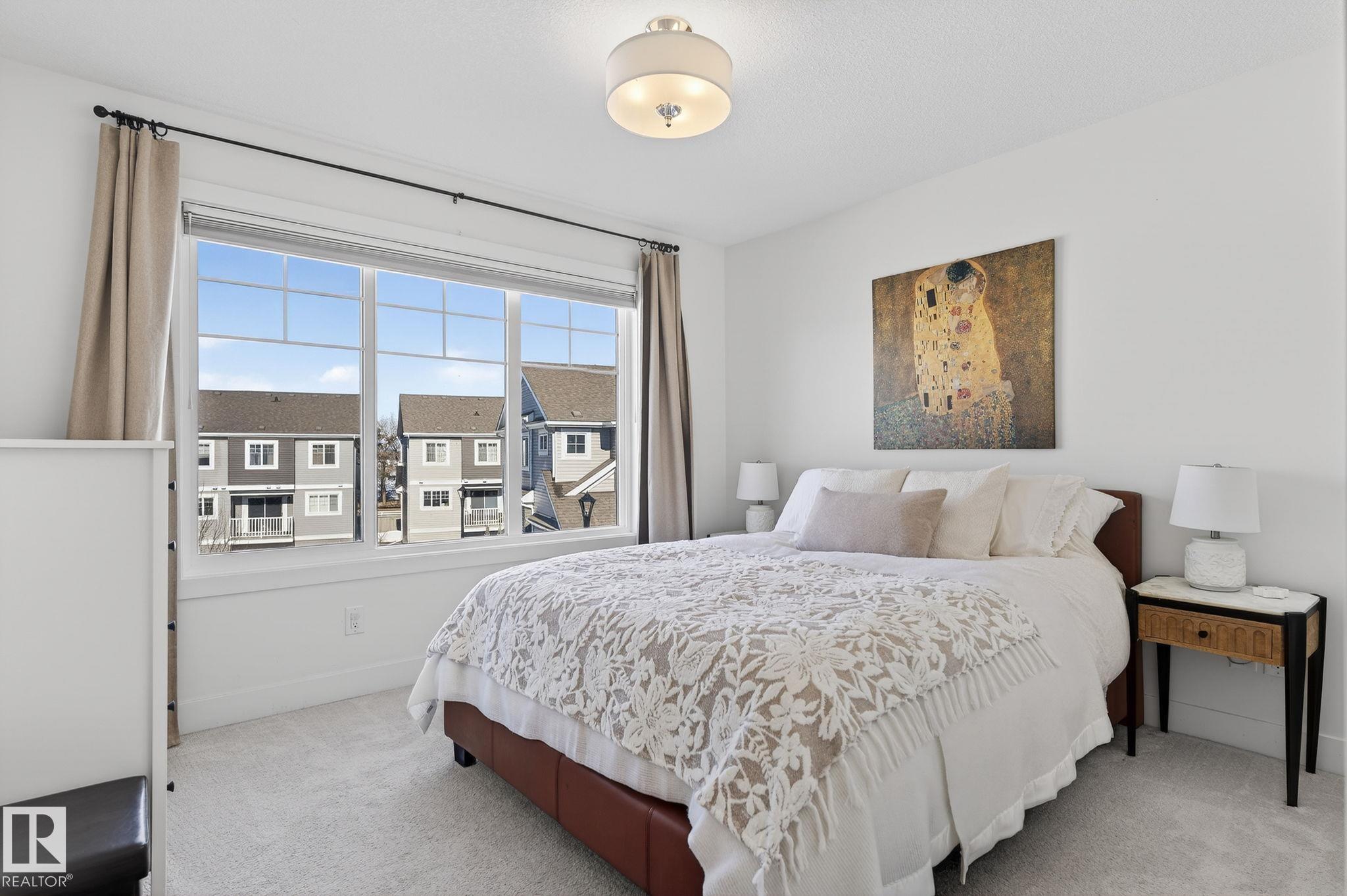 Step into this spacious and inviting 3-bedroom townhome, thoughtfully designed for family living. The generous living room offers a perfect place to relax, while the large dining area easily accommodates an 8-person table, ideal for entertaining. The open-concept layout flows into the elegant kitchen, complete with an eating bar/island, stainless steel appliances, and stylish cabinetry. This home features three well-appointed bathrooms, including a main-floor powder room, a 4-piece bathroom on the second level, and a 4-piece ensuite in the primary bedroom. The spacious primary suite fits a king-size bed and includes large double closets, while two additional bedrooms are bright and generously sized with large windows that bring in plenty of natural light. A tandem double attached garage offers ample space for vehicles, storage, and recreational gear. Ideally located near the Enjoy Centre, St. Albert, and the Anthony Henday, and across the street from Lois Hole Provincial Park, great for outdoor activities