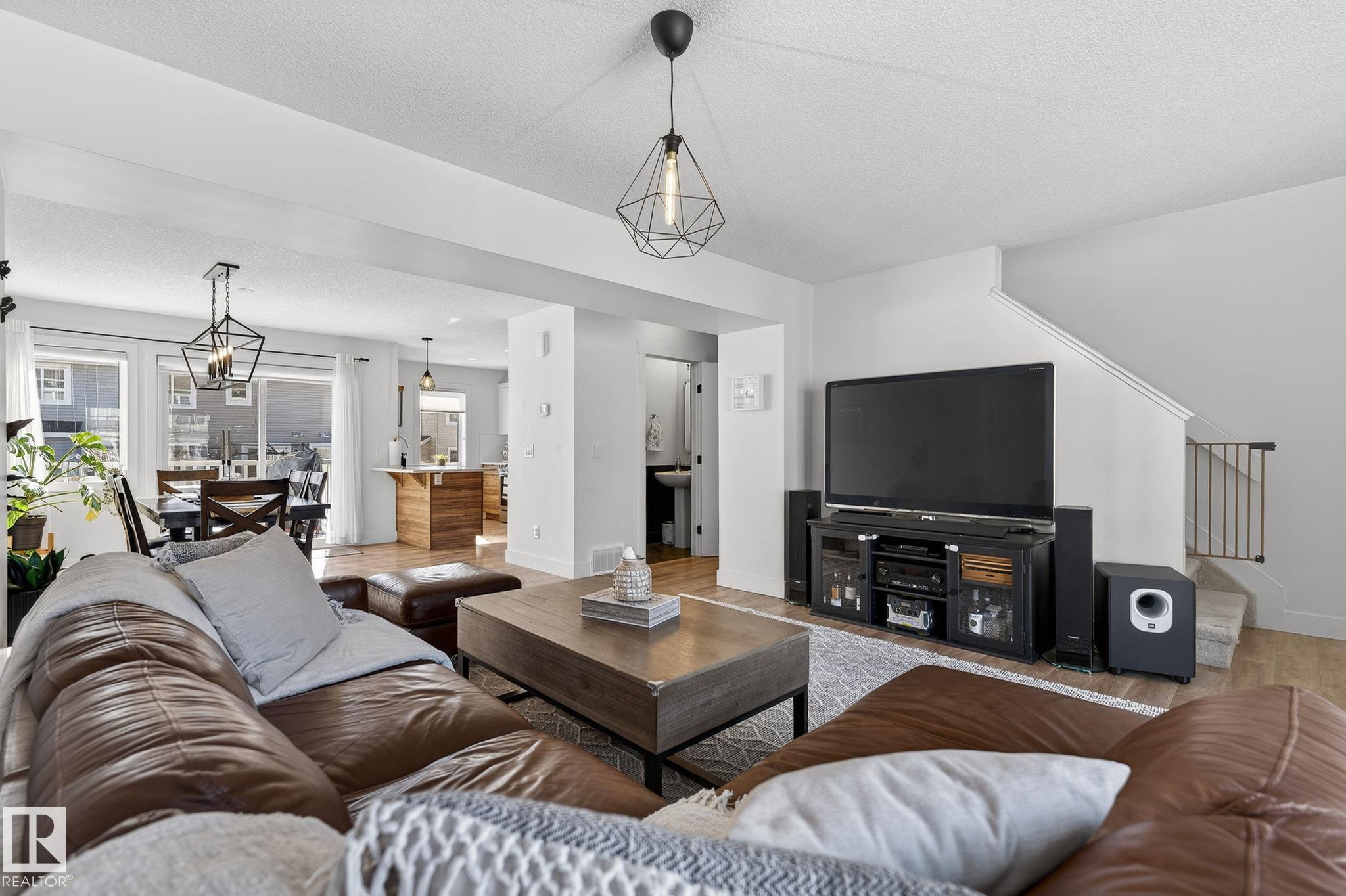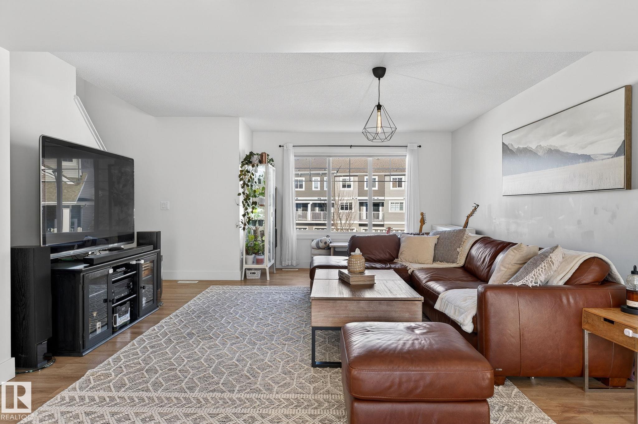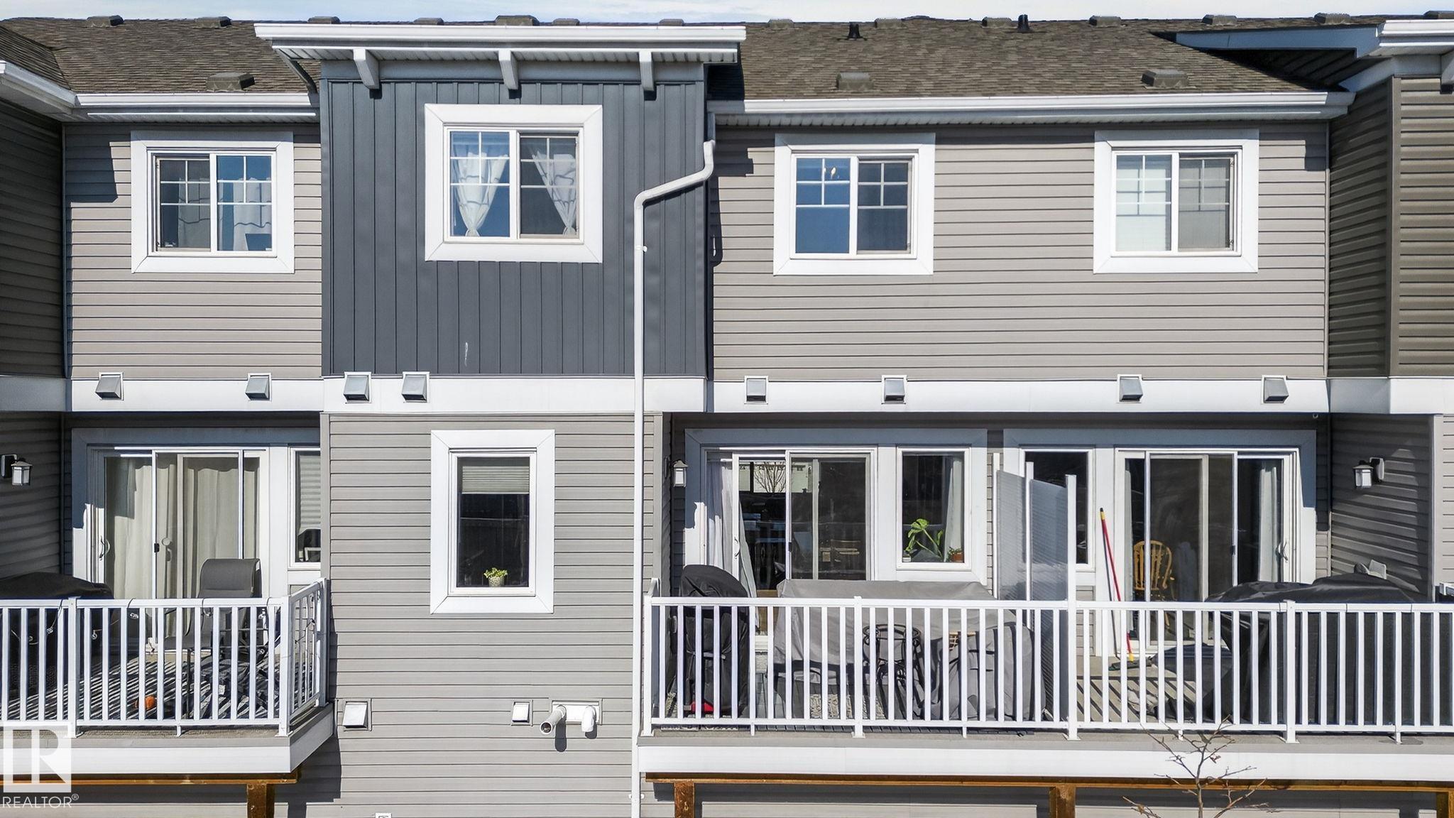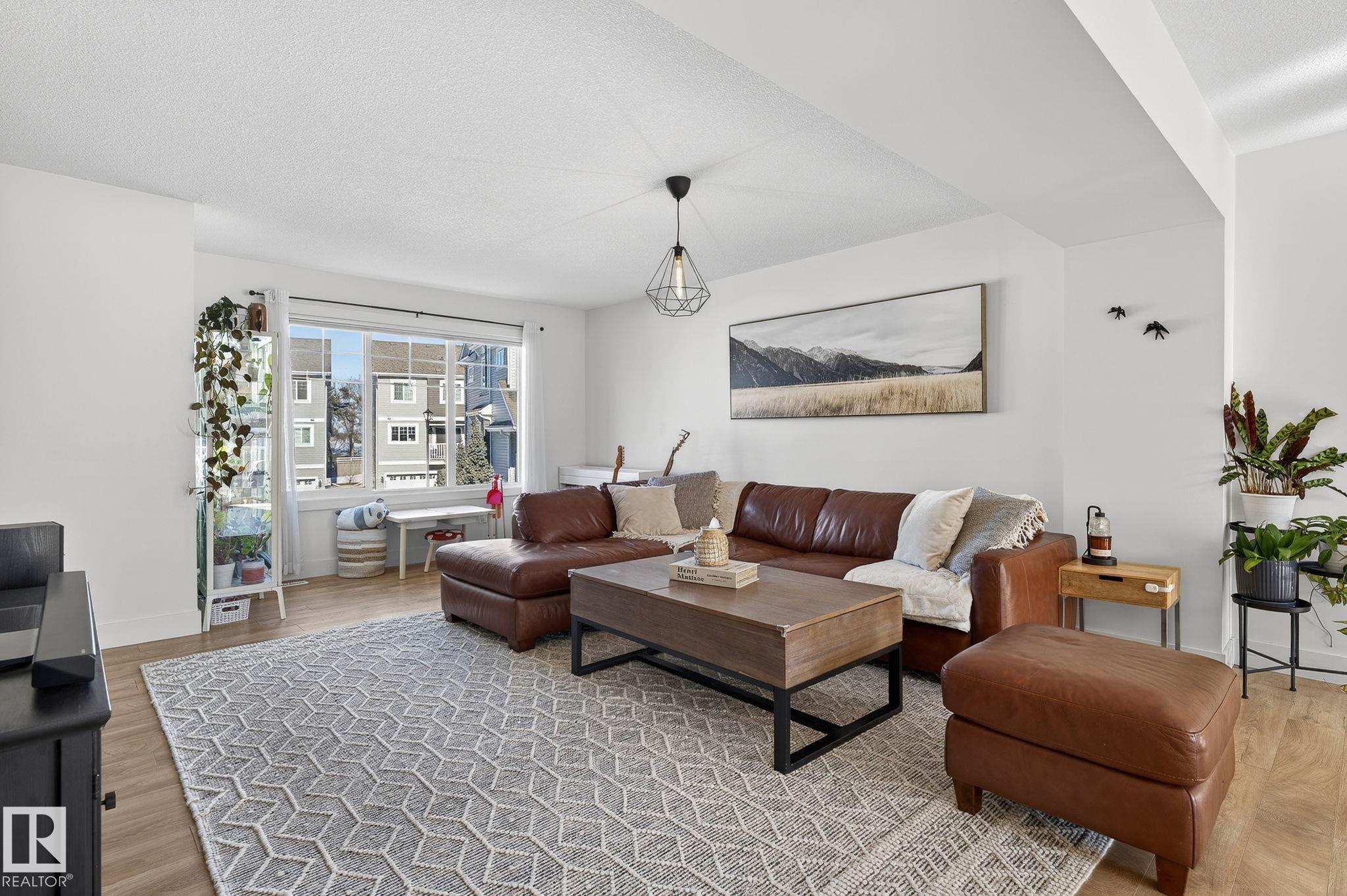 Step into this spacious and inviting 3-bedroom townhome, thoughtfully designed for family living. The generous living room offers a perfect place to relax, while the large dining area easily accommodates an 8-person table, ideal for entertaining. The open-concept layout flows into the elegant kitchen, complete with an eating bar/island, stainless steel appliances, and stylish cabinetry. This home features three well-appointed bathrooms, including a main-floor powder room, a 4-piece bathroom on the second level, and a 4-piece ensuite in the primary bedroom. The spacious primary suite fits a king-size bed and includes large double closets, while two additional bedrooms are bright and generously sized with large windows that bring in plenty of natural light. A tandem double attached garage offers ample space for vehicles, storage, and recreational gear. Ideally located near the Enjoy Centre, St. Albert, and the Anthony Henday, and across the street from Lois Hole Provincial Park, great for outdoor activities