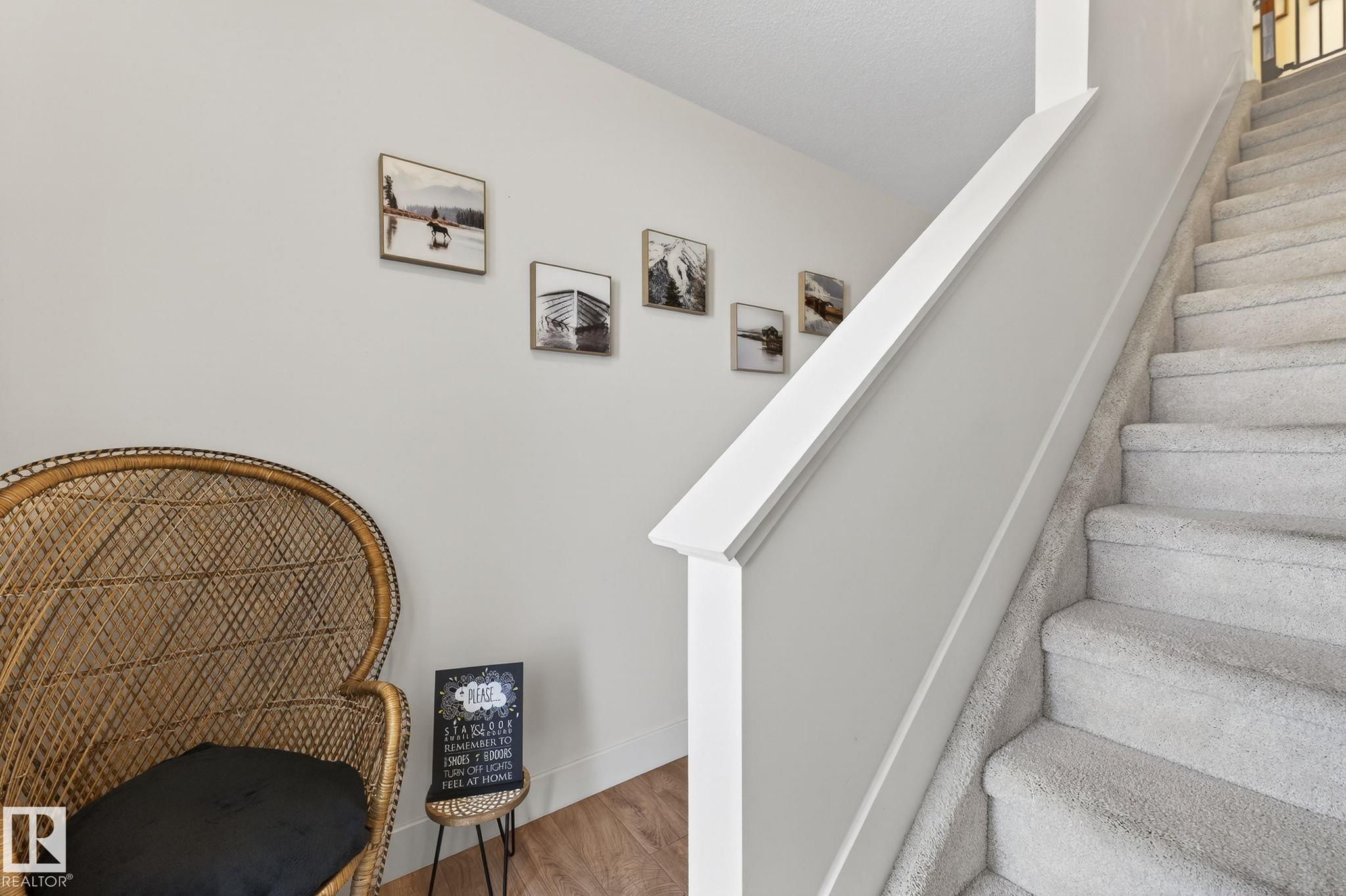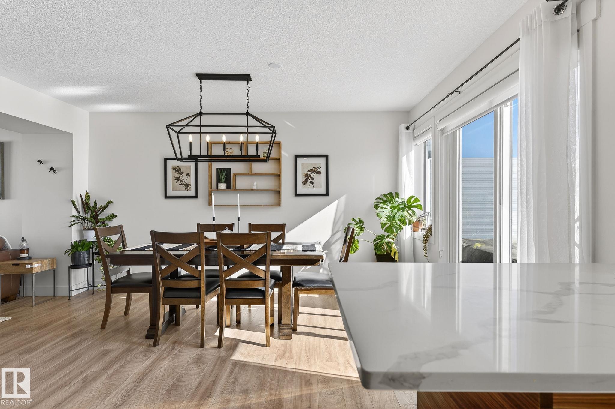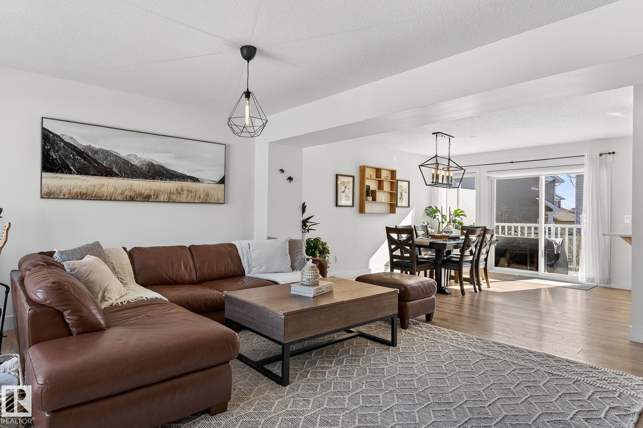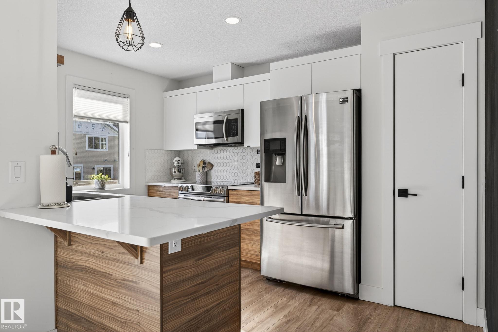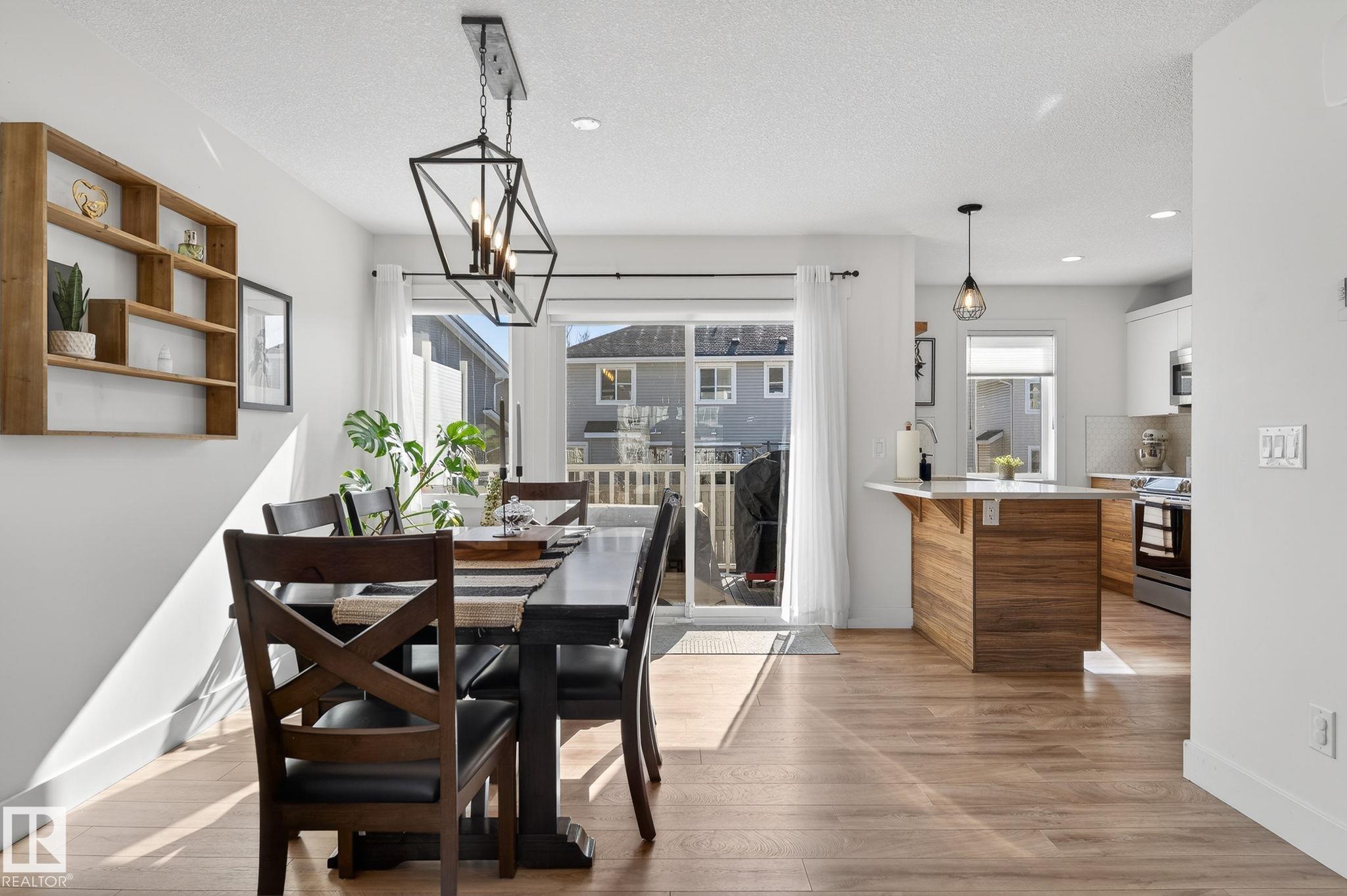Step into this spacious and inviting 3-bedroom townhome, thoughtfully designed for family living. The generous living room offers a perfect place to relax, while the large dining area easily accommodates an 8-person table, ideal for entertaining. The open-concept layout flows into the elegant kitchen, complete with an eating bar/island, stainless steel appliances, and stylish cabinetry. This home features three well-appointed bathrooms, including a main-floor powder room, a 4-piece bathroom on the second level, and a 4-piece ensuite in the primary bedroom. The spacious primary suite fits a king-size bed and includes large double closets, while two additional bedrooms are bright and generously sized with large windows that bring in plenty of natural light. A tandem double attached garage offers ample space for vehicles, storage, and recreational gear. Ideally located near the Enjoy Centre, St. Albert, and the Anthony Henday, and across the street from Lois Hole Provincial Park, great for outdoor activities
