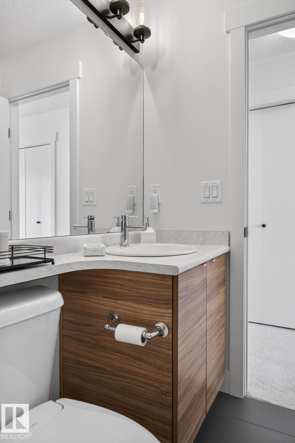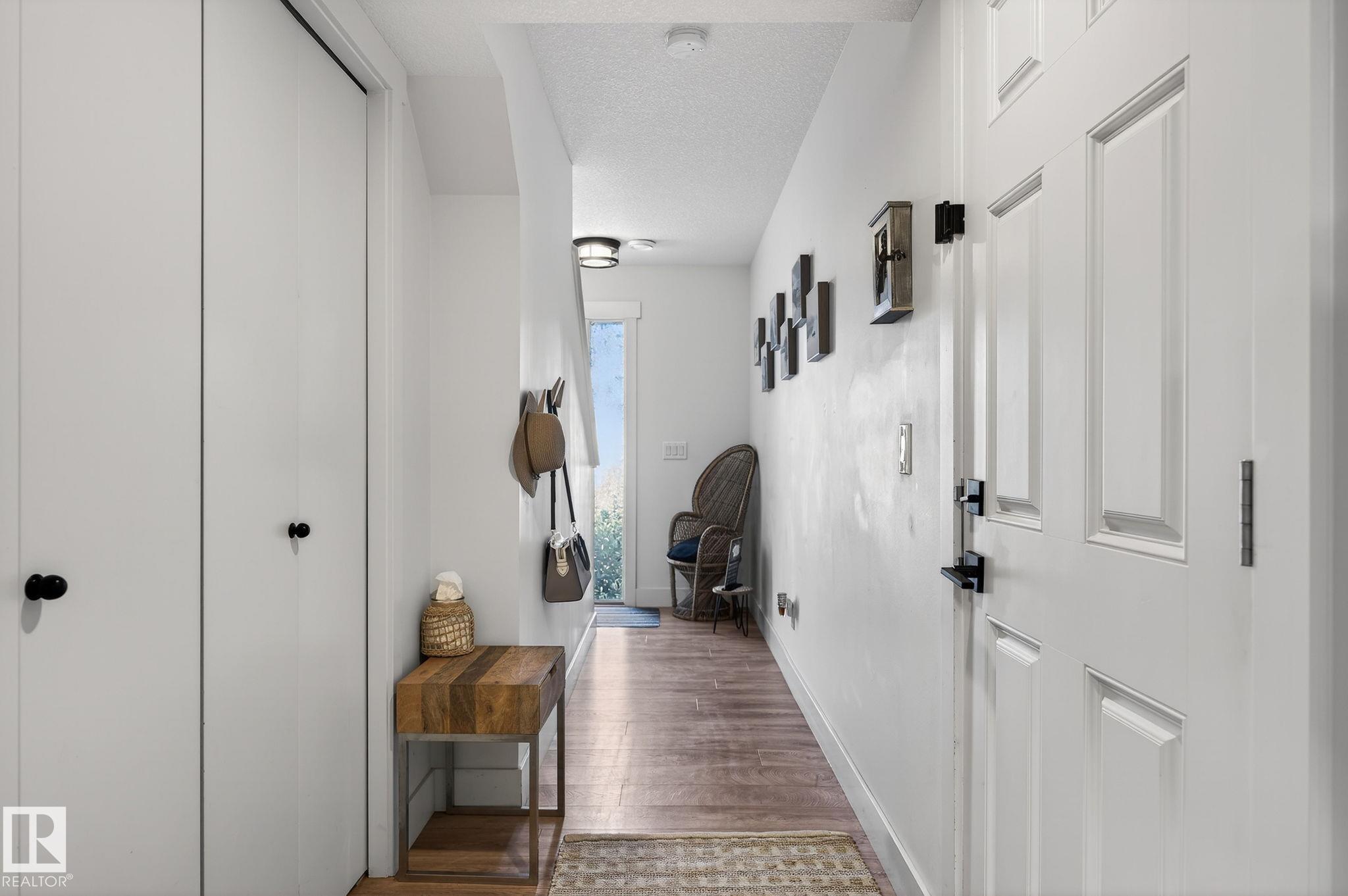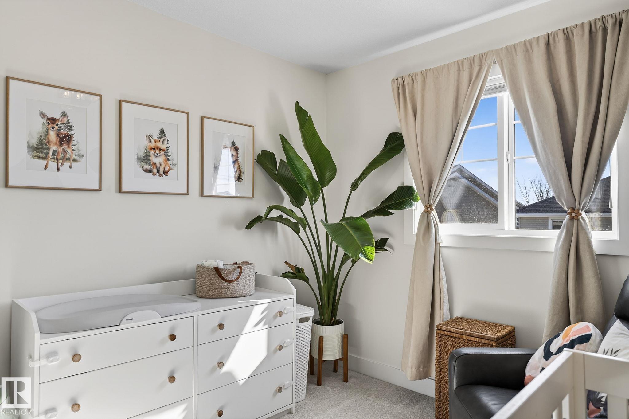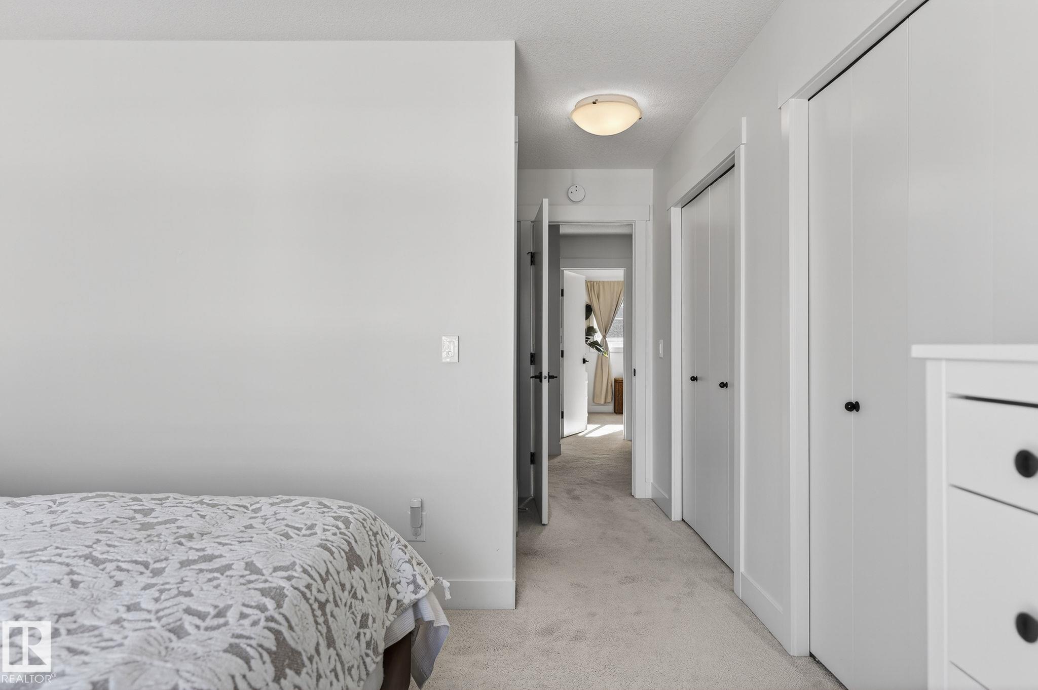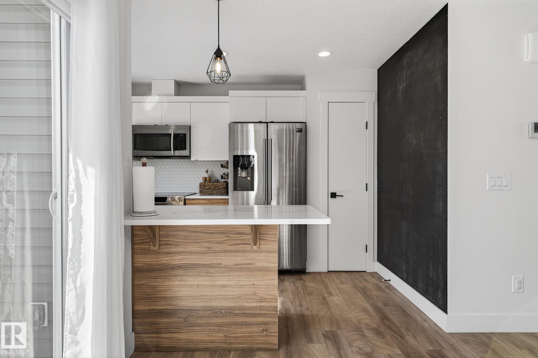 Step into this spacious and inviting 3-bedroom townhome, thoughtfully designed for family living. The generous living room offers a perfect place to relax, while the large dining area easily accommodates an 8-person table, ideal for entertaining. The open-concept layout flows into the elegant kitchen, complete with an eating bar/island, stainless steel appliances, and stylish cabinetry. This home features three well-appointed bathrooms, including a main-floor powder room, a 4-piece bathroom on the second level, and a 4-piece ensuite in the primary bedroom. The spacious primary suite fits a king-size bed and includes large double closets, while two additional bedrooms are bright and generously sized with large windows that bring in plenty of natural light. A tandem double attached garage offers ample space for vehicles, storage, and recreational gear. Ideally located near the Enjoy Centre, St. Albert, and the Anthony Henday, and across the street from Lois Hole Provincial Park, great for outdoor activities