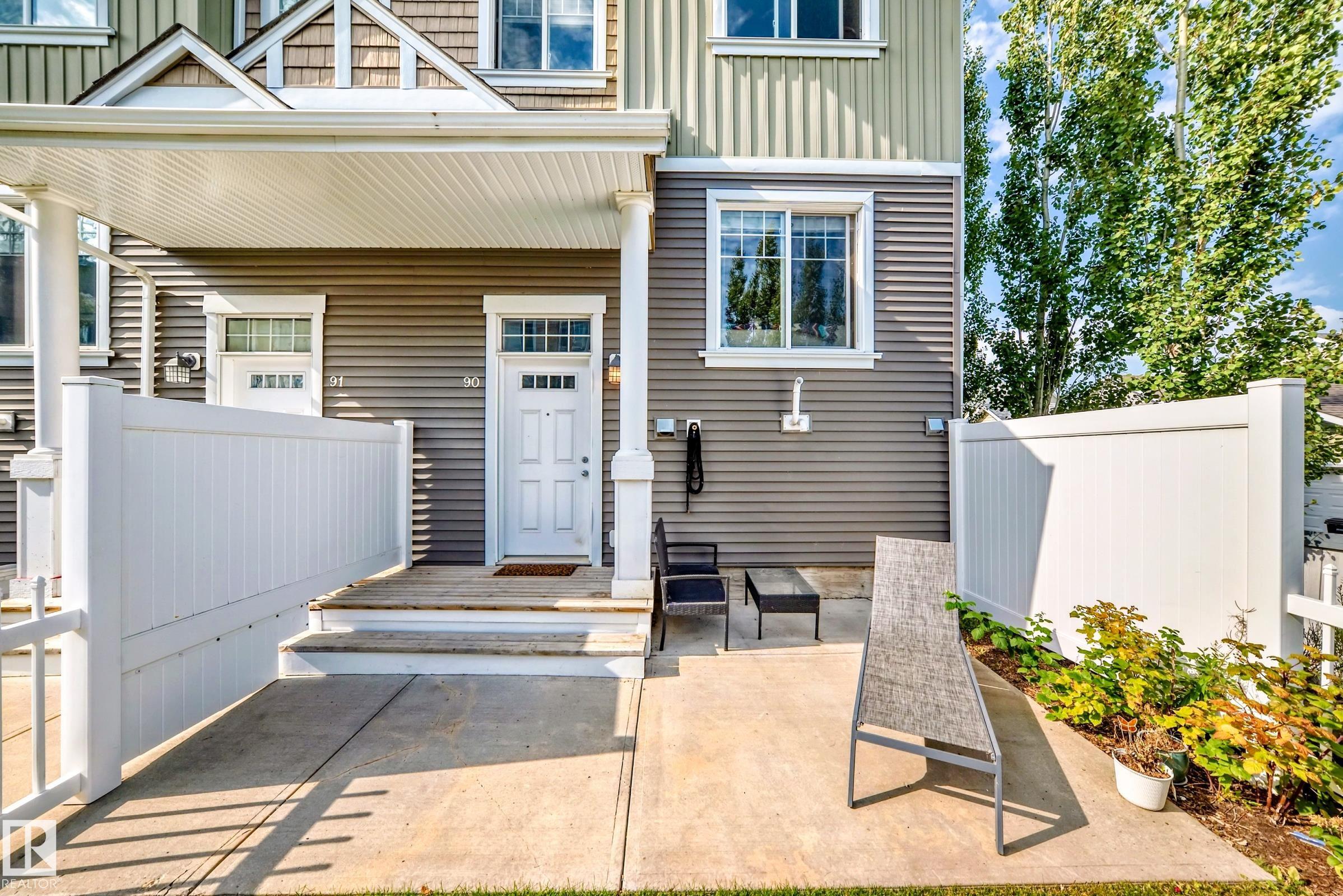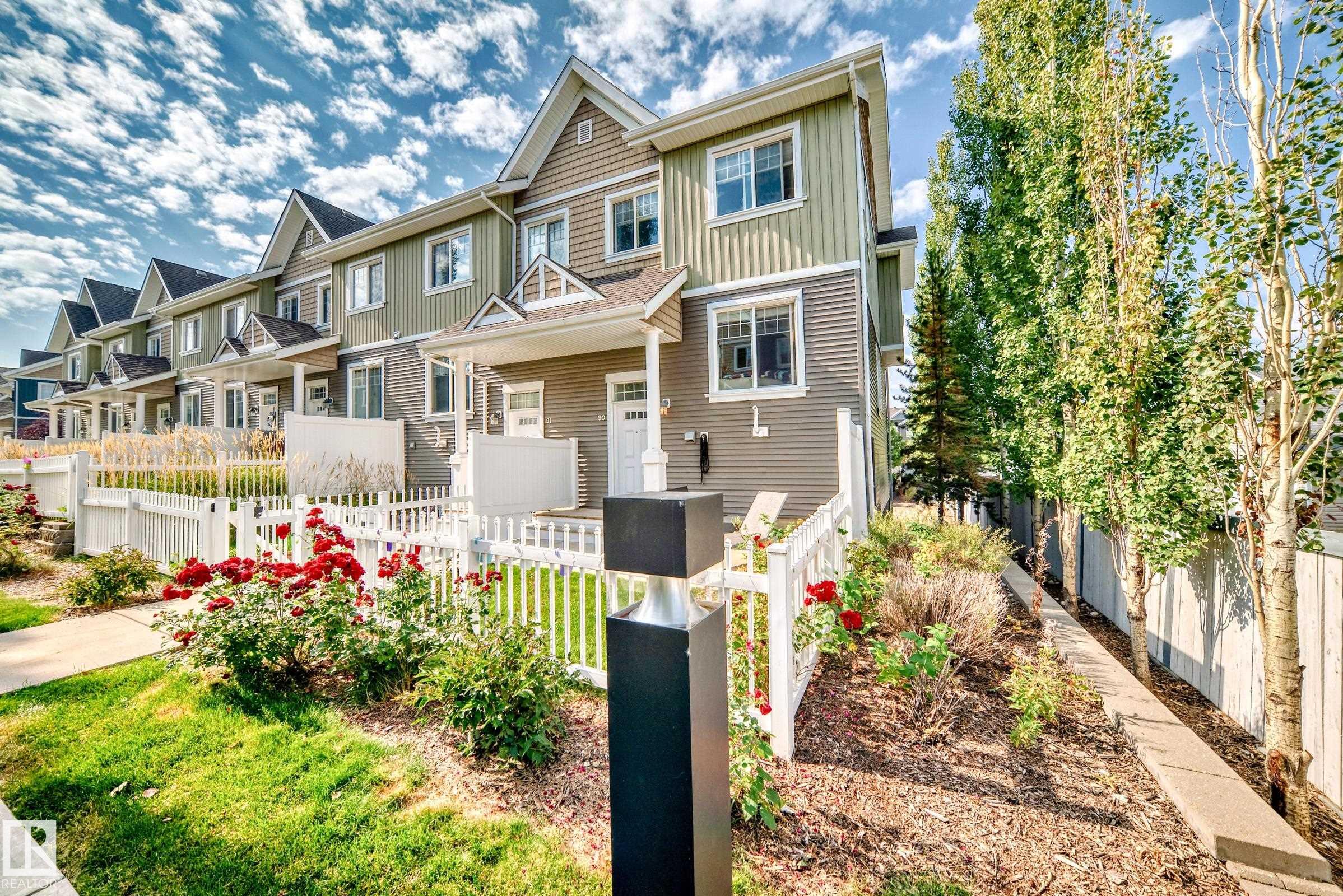 Welcome to this immaculate end-unit townhouse in the sought-after lake community of Summerside! Enjoy exclusive access to Lake Summerside, tennis courts, rinks, and more. This bright and airy 3-bedroom, 2.5-bath home features an open-concept main floor with stylish dark laminate flooring, quartz countertops, stainless steel appliances, a corner pantry, and a cozy electric fireplace. The spacious kitchen opens to a balcony perfect for entertaining. Upstairs offers a large primary bedroom with walk-in closet and ensuite, two additional bedrooms, a full bath, and upper laundry. Massive windows and an east-facing fenced yard flood the home with natural light. The unfinished basement provides excellent storage and access to the double attached garage. Walking distance to Michael Strembitsky School, parks, and just 15 minutes to the airport--this turnkey unit is perfect for first-time buyers or investors!