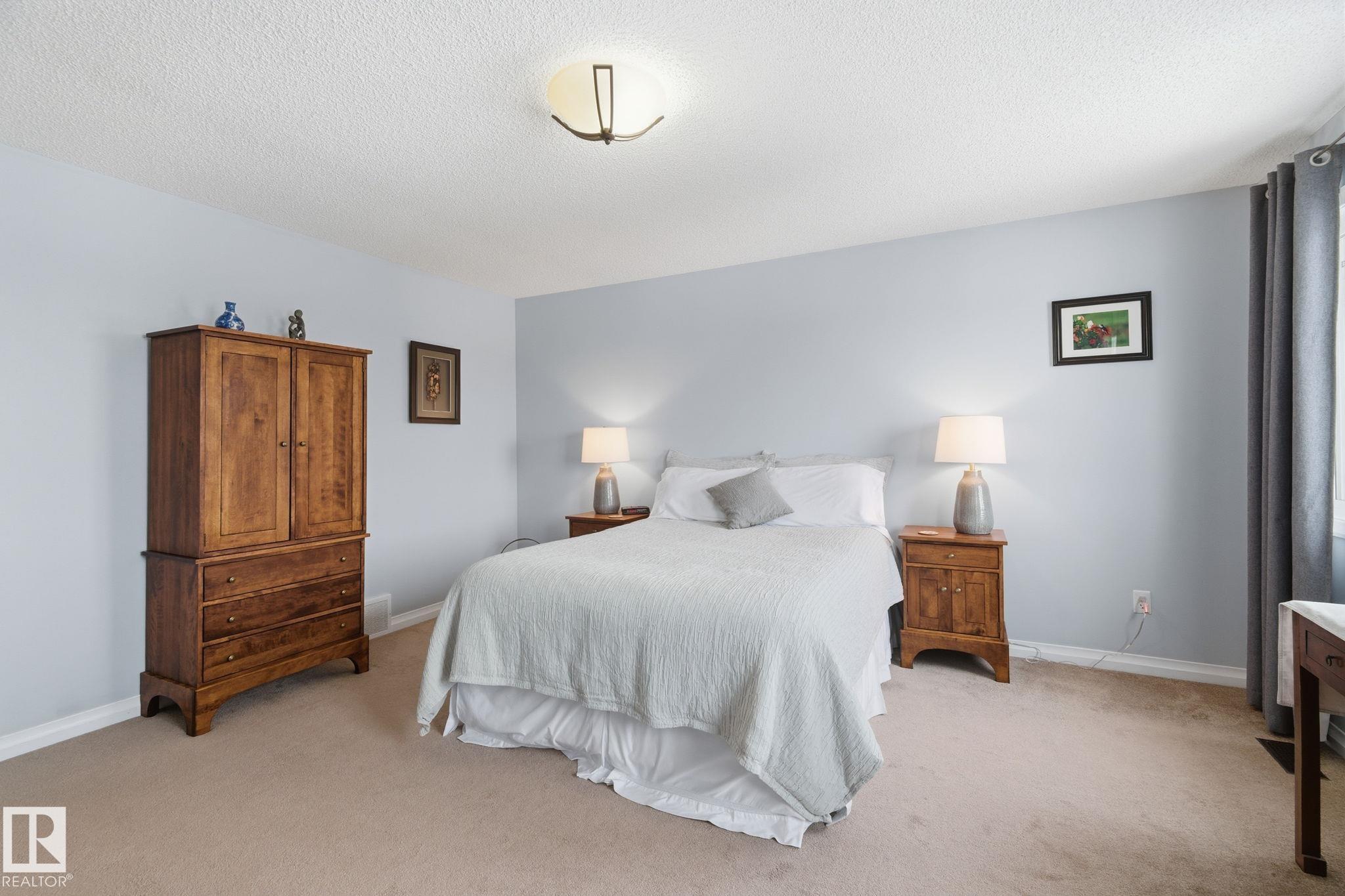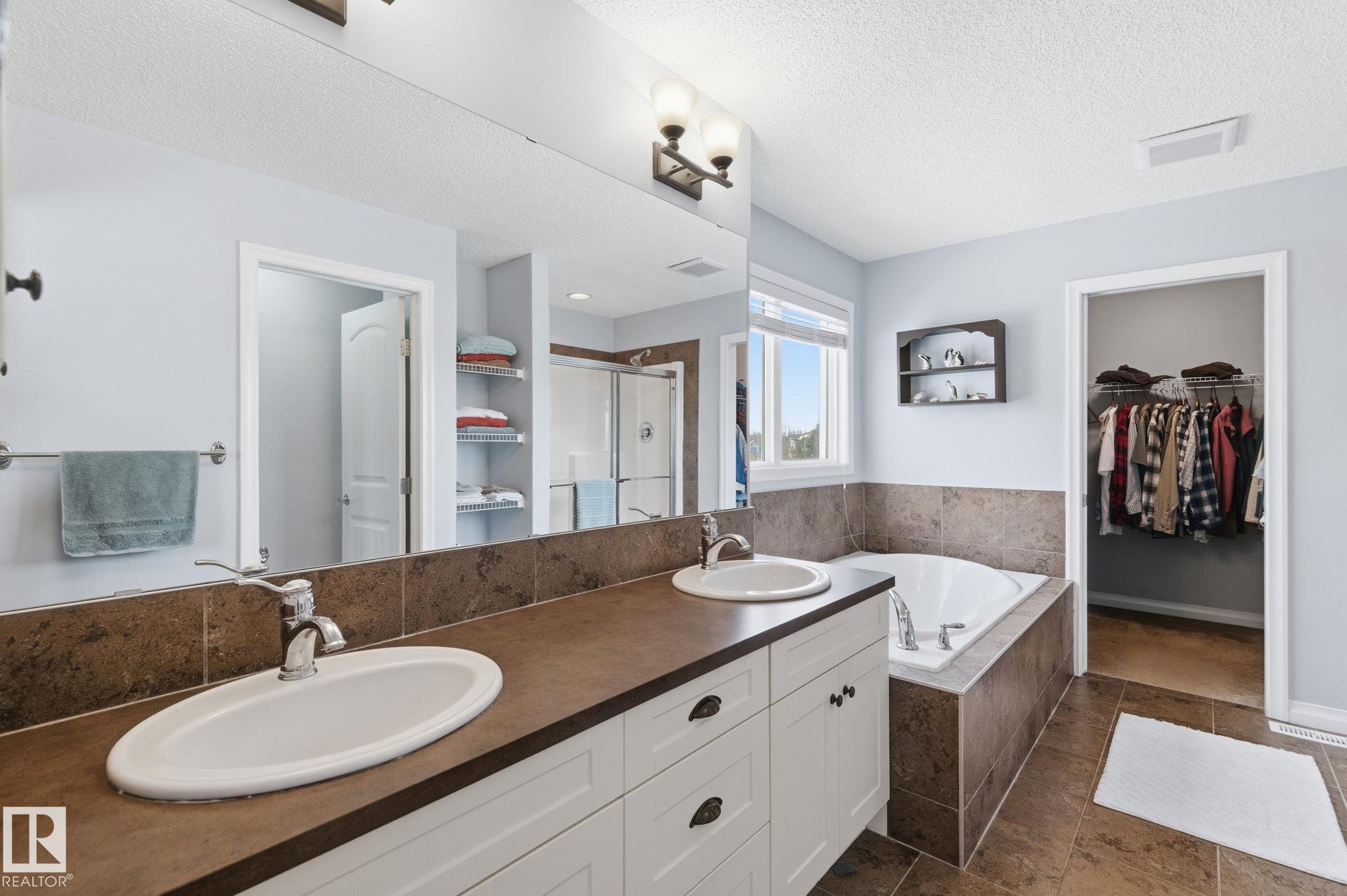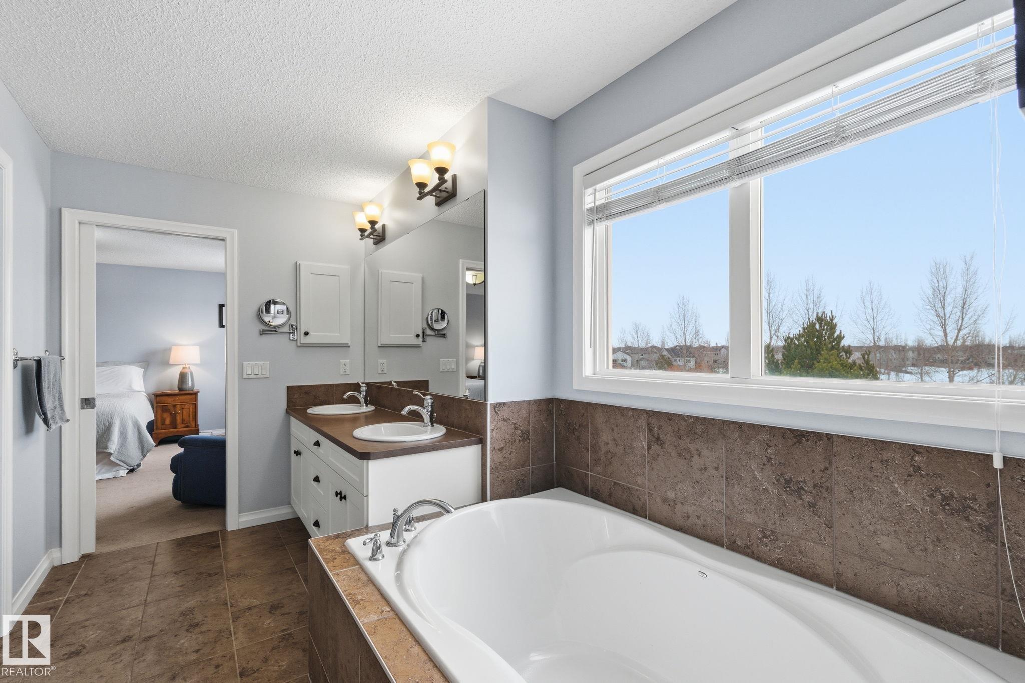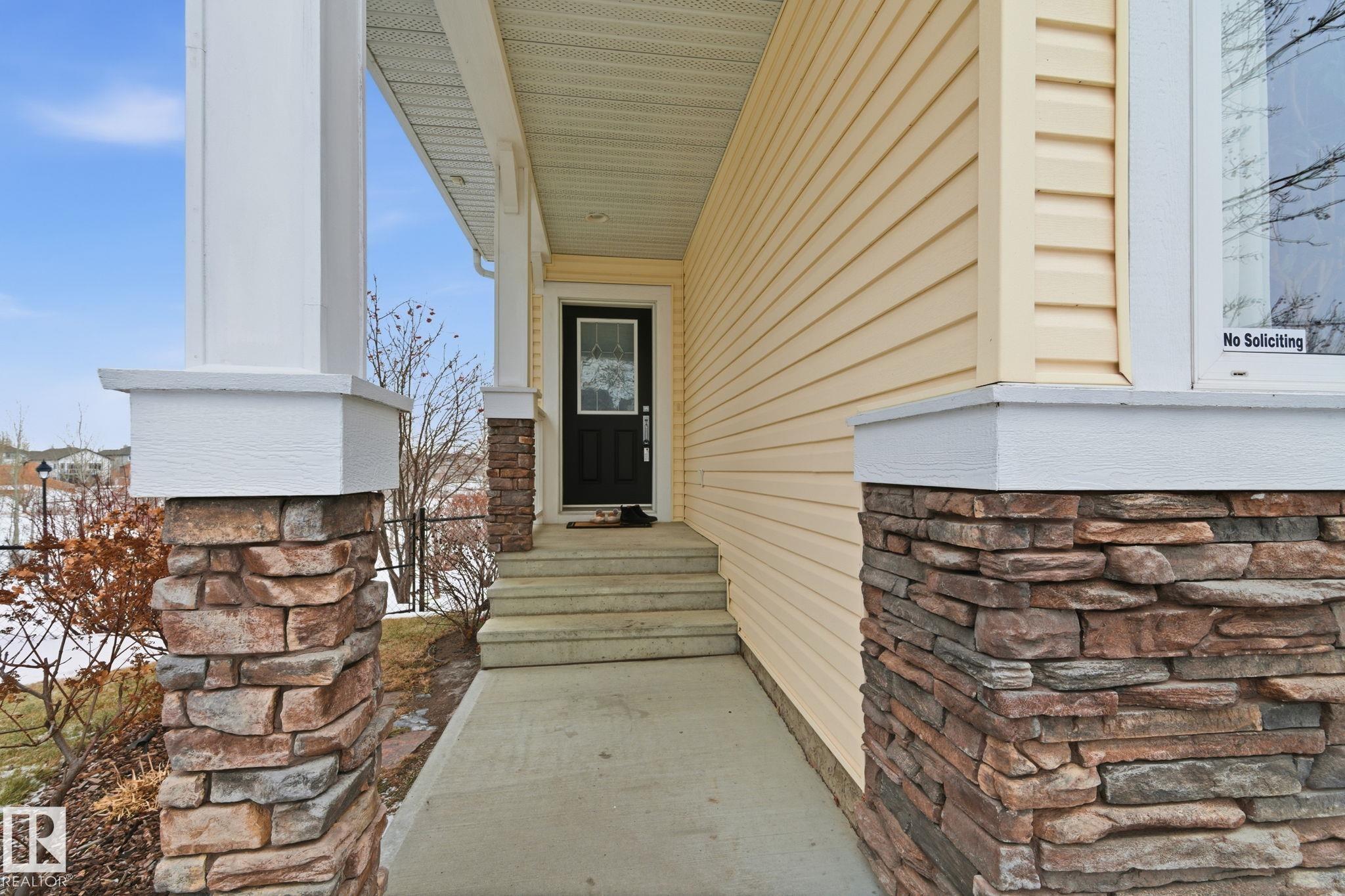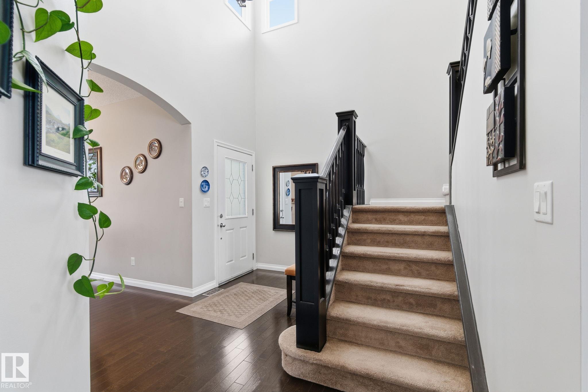 Backing directly onto a protected natural reserve with 3 interconnected ponds, this original owner home is set on one of The Hamptons' most exclusive no through streets, where homes rarely come to market. Positioned on the best lot, the property offers south east views of water, trees, and walking paths. The main floor features 9' ceilings and an open bright layout with generous living and dining spaces. Upstairs offers three bedrooms, including a spacious primary retreat and a built in office. The full unfinished basement with 9' ceilings provides excellent future development potential also drenched in sunlight. Additional features include central A/C, a finished double attached garage, mature landscaping, flagstone patio, fenced yard, deck with living wall, and an HOA-maintained community. Walking distance to multiple schools, playgrounds, and 5 min to COSTCO, this is a RARE opportunity to secure a long-term home in one of West Edmonton's most tightly held natural settings.