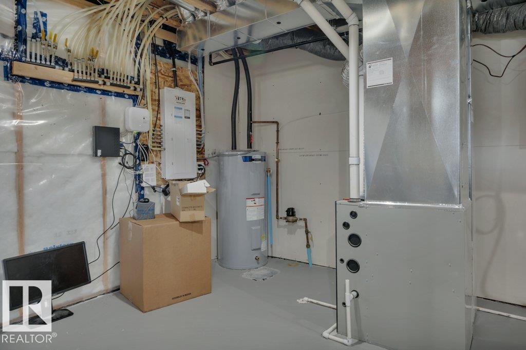 This beautifully maintained 2-story home in The Orchards At Ellerslie blends charm and functionality. Enjoy spacious living areas, modern finishes, and a bright open-concept layout with large windows. The chef's kitchen features sleek countertops, ample cabinetry, a huge island, and updated appliances. Upstairs offers 3 bedrooms, 2 bathrooms, an office, bonus room, and laundry. Relax in the private yard backing onto a pond--ideal for barbecues or stargazing. Includes a front double-car garage and basement with side entrance for future rental suite. Close to parks, schools, and amenities, this home offers comfort and convenience in a peaceful setting.