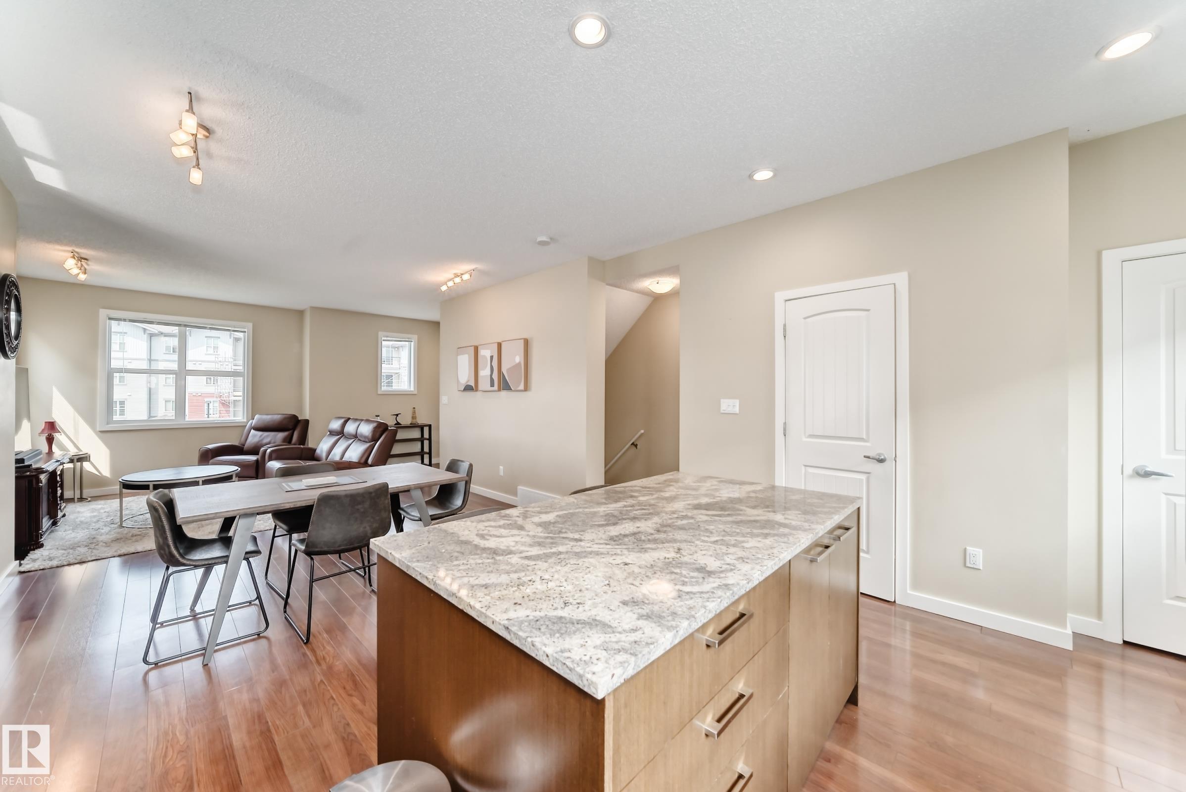 This immaculate freshly painted end unit townhouse has an incredible design with over 1,500 sqft of living space. It features a large living room with a 9 foot ceiling, lots of natural light, and a spacious kitchen equipped with stainless steel appliances, granite countertops, very large island, built in buffet with a wine cooler, and a pantry. This floor also has a 2 piece bathroom and a large deck. Upstairs you will find two spacious primary bedrooms with two full bath ensuites and plenty of closet space. The washer and dryer are conveniently located in the upper floor. Other bonuses included are the double attached garage, a central A/C for hot summer days and a window in the ensuite. The amenities include a clubhouse (social room and gym), visitor parking, lake access and more. Located in Walker Lakes only minutes from south common and the international airport. Move in ready!