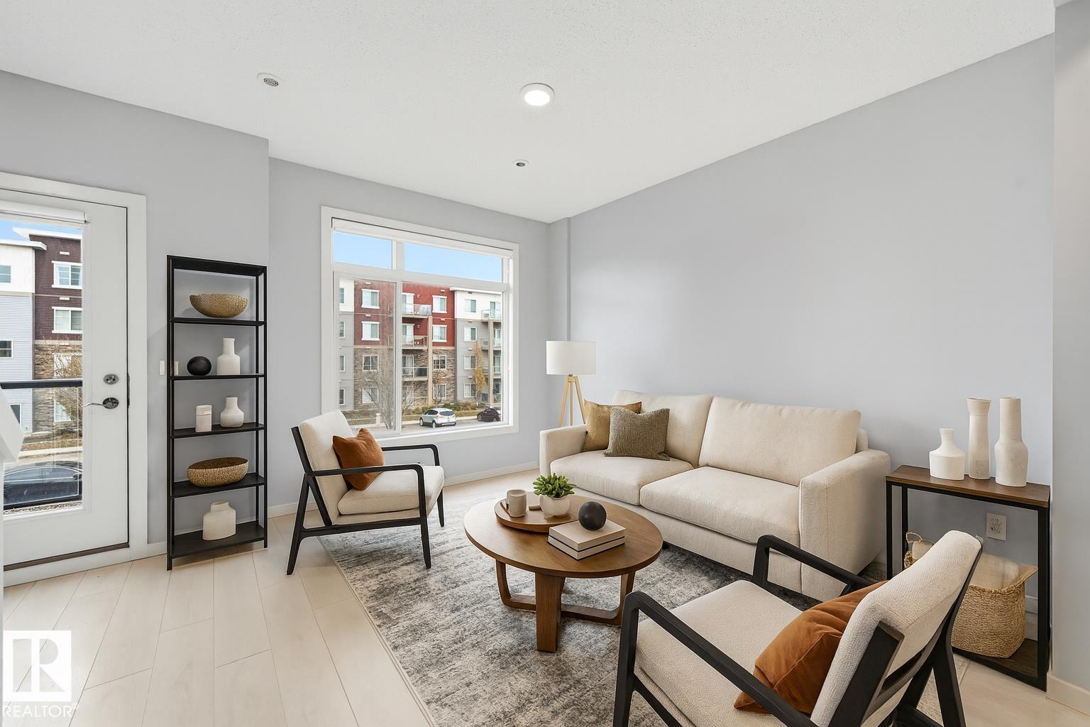 Absolutely stunning and spacious 2 BDR TOWNHOUSE W/ 2 ENSUITES and 2 car tandem garage in desirable Walker! Main floor features 9' ceilings & quality finishings incl quartz counters, wide plank vinyl floors. The functional kitchen has SS appliances, walk-in pantry & generously sized eating bar. Bright living room features a large window & attached balcony to enjoy the fresh air & green space. Upstairs, you'll find two generously sized bedrooms, both with their own full 4-pc bath ensuites and walk in closets - perfect for two roommates or a couple. Energy-efficient mechanical including HRV & tankless hot water for a lower utility bill. This well maintained complex offers visitor parking and nearby walking trails & lake. Excellent location conveniently close to everything you need incl shopping, schools & public transit. Quick access to major routes incl Anthony Henday and Ellerslie Rd