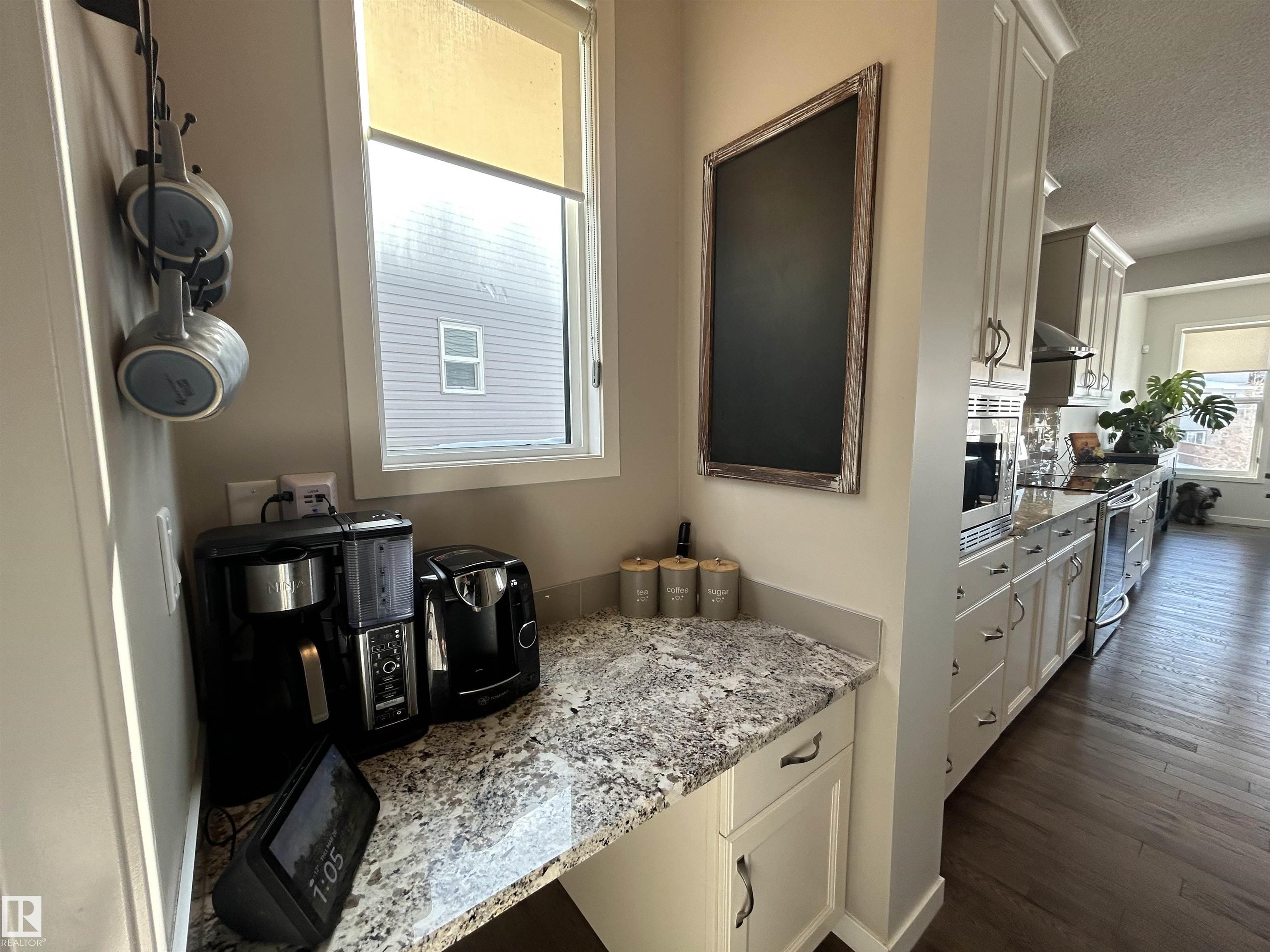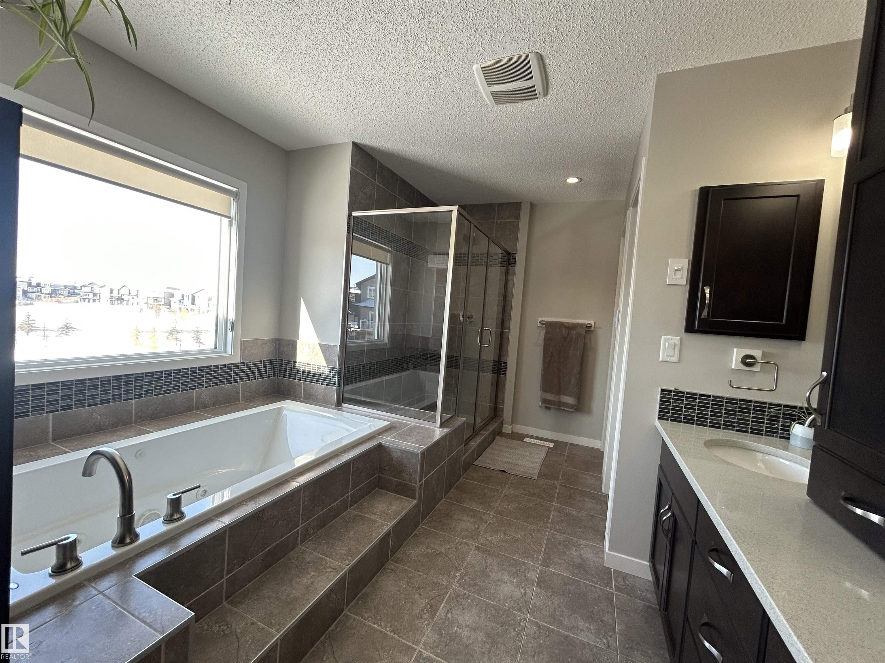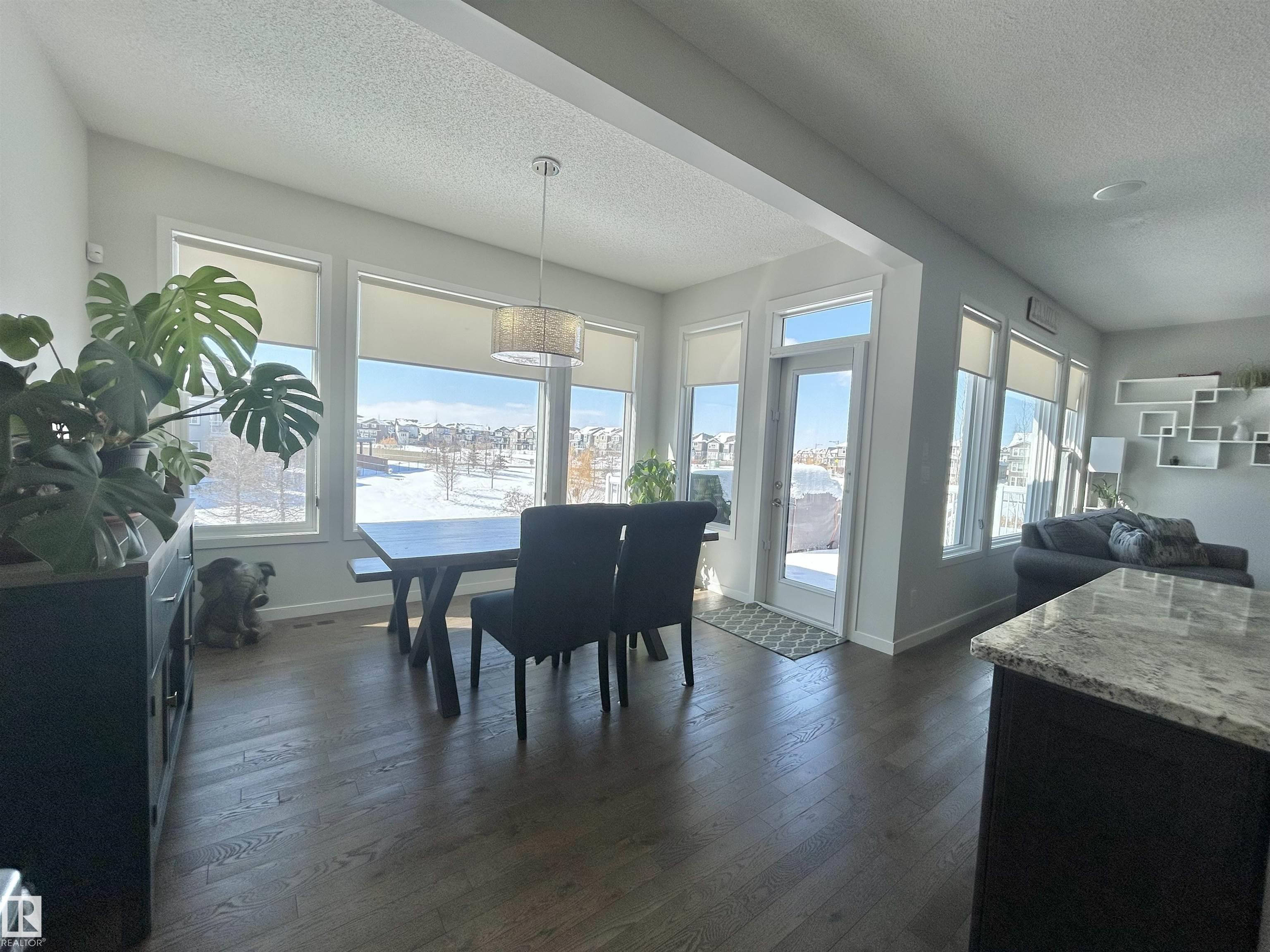 Amazing walk-out two story on a HUGE PIE LOT backing GREENSPACE/POND in a quiet cul-de-sac close to amenities and schools. The inviting, freshly painted, spacious main floor is flooded with natural light from the large west facing windows and has 9' ceilings. It features a gas fireplace, flex space for office or den, a luxury kitchen with granite countertops, separate coffee nook and entry onto the deck overlooking the pond... perfect for summer bbqs and sunset watching! The kitchen connects to the large back mudroom. Garage is oversized and heated. Upstairs you will find a massive bonus room, the master w/fireplace, walk in closet and spa like bathroom as well as 2 more bedrooms. A 4 pc bath and laundry room with tons of work space completes the upper level. The basement has heated floors and awaits your imagination. Walk out from the basement leads to the beautiful yard. Newer furnace and new A/C. Do NOT miss out on this amazing home that the whole family will love.
