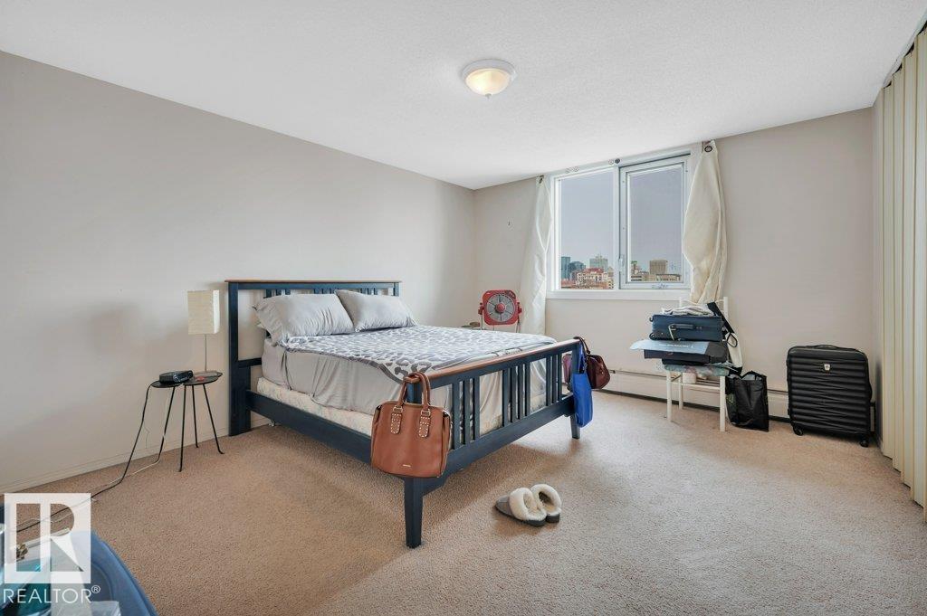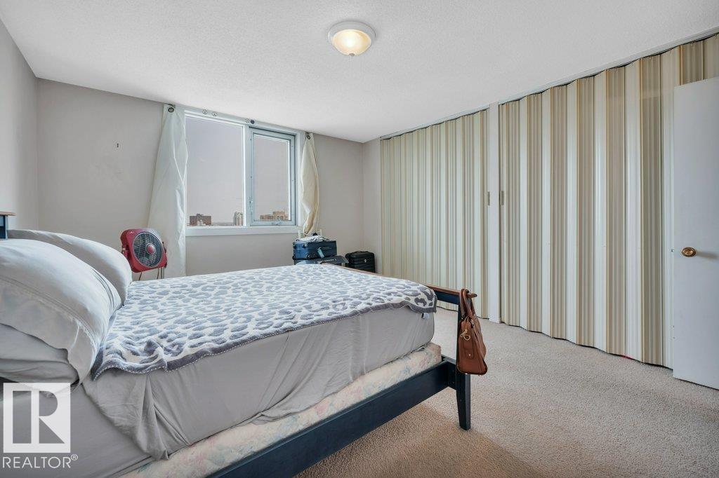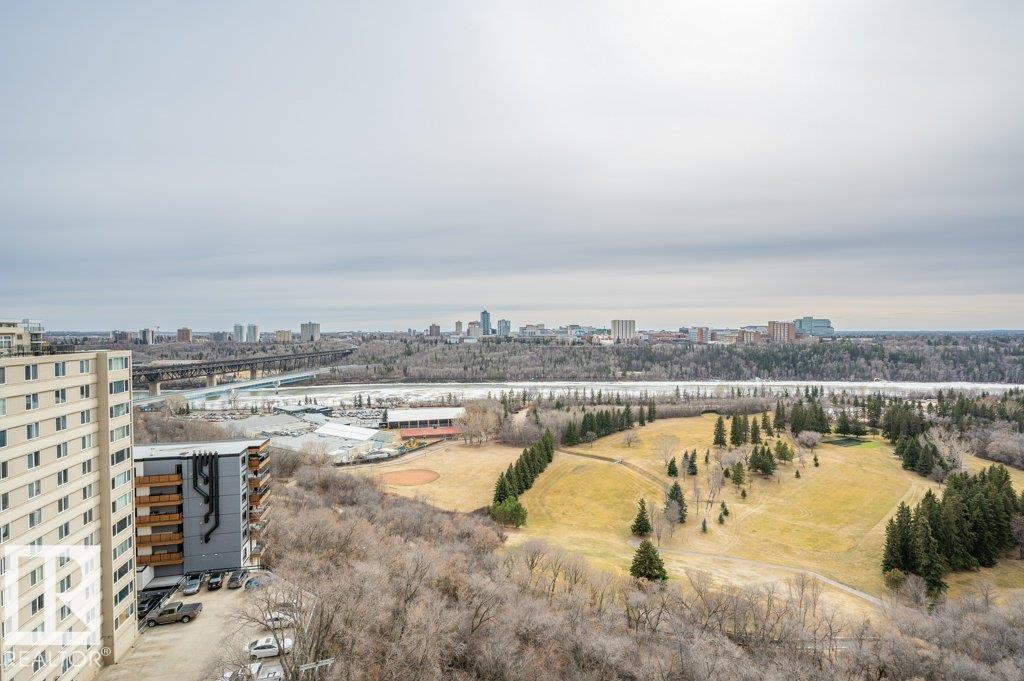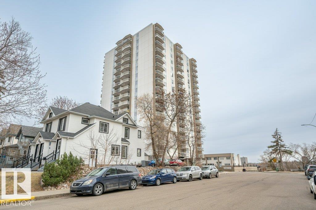 Welcome to your riverside retreat! This charming 2 bedroom, 1 bath corner unit condo offers peaceful living with stunning river valley views from the 15th floor. Ready for your personal updates, the spacious living and dining area features east and south exposure, filling the home with natural light. The kitchen is functional and ready for your custom touch. Built in concrete, the building offers exceptional quiet and privacy. Enjoy the convenience of same-floor laundry, a fully equipped gym with sauna and change rooms, plus a top-floor meeting room perfect for hosting with breathtaking views. Step onto the expansive rooftop terrace to relax, unwind, and take in the scenery. A large east-facing balcony and inviting courtyard add to the outdoor appeal. Condo fees include utilities. 1 heated underground stall. Just steps to shopping, schools, and scenic riverside trails.