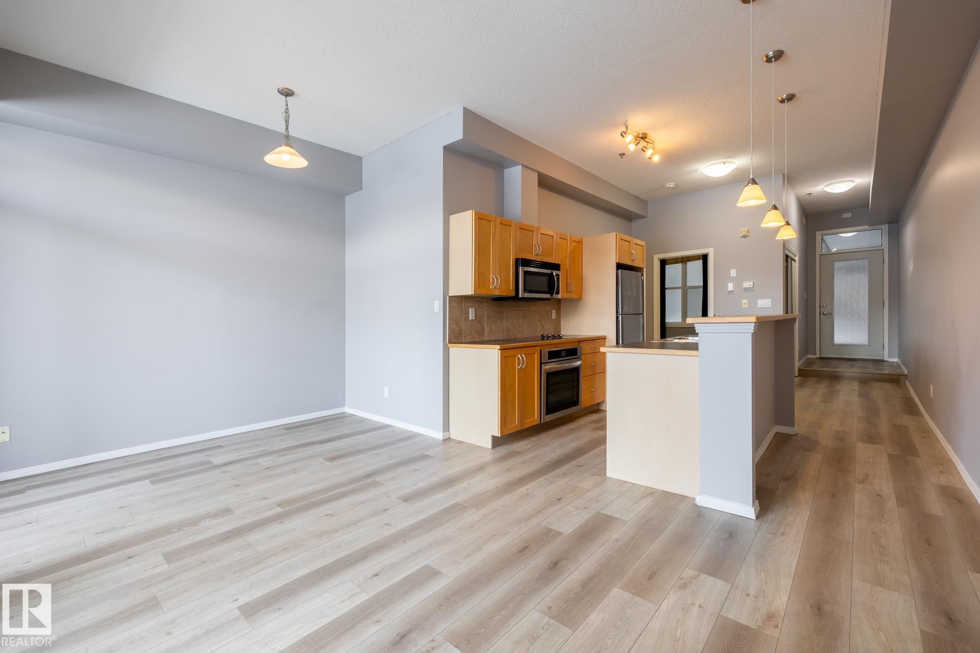 Welcome to this charming one-bedroom, one-bath condo in the heart of downtown! Perfectly situated just steps from top restaurants, shopping, and entertainment, this stylish unit offers the best of urban living. Inside, you'll find a contemporary open-concept layout with large windows that fill the space with natural light. The modern kitchen features stainless steel built in appliances and ample cabinet space. The spacious bedroom includes a generous closet, while the sleek bathroom boasts contemporary finishes. Enjoy your own balcony with gas bbq hookup and storage locker. This unit also features an in suite stacker washer/dryer and a titled underground parking stall with storage cage. With easy access to public transportation, office towers and Grant Macewan this condo is ideal for professionals, first-time buyers, or investors. Don't miss this opportunity to own a piece of downtown living!