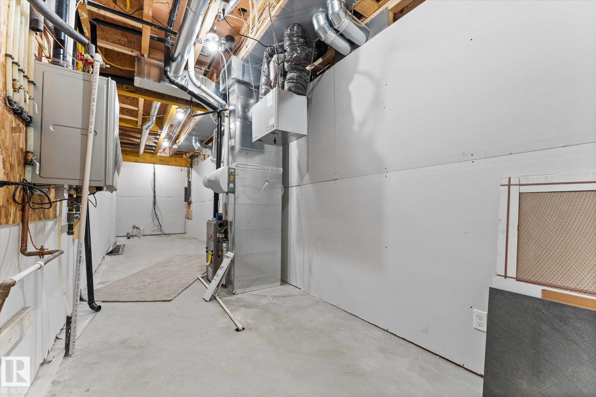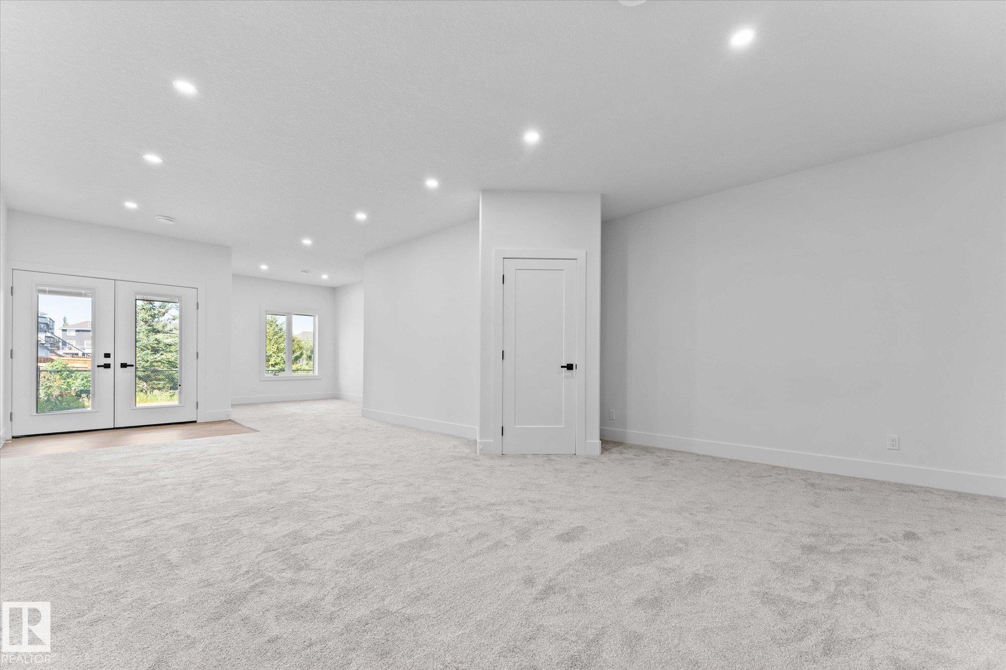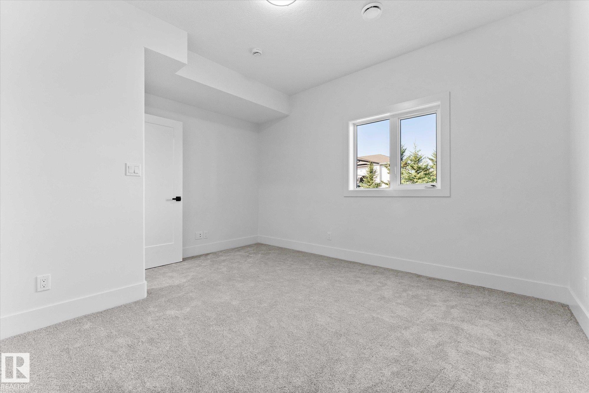 Stunning Walkout Bungalow Backing onto the Pond in The Meadows! This 1527 sq ft home offers a rare combination of serene views, functional design, and exceptional upgrades. The main floor features 9' ceilings and an open layout with 3 bedrooms, including a spacious primary suite with a walk-in closet and a luxurious 5-piece ensuite. The kitchen is a chef's dream--equipped with quartz countertops, dual pantries, built-in appliances, and a large central island. The fully finished walkout basement adds two more generously sized bedrooms, a large family/rec room, a 4-piece bathroom, and an expansive mechanical/storage room. From the basement, step out to the stamped concrete patio and enjoy your private backyard oasis with views of the peaceful pond. The massive triple attached garage is a standout, offering high ceilings, a floor drain, and more than enough room for vehicles, tools, and toys. This is a rare opportunity to own a walkout bungalow in a premium Fort Saskatchewan location.
