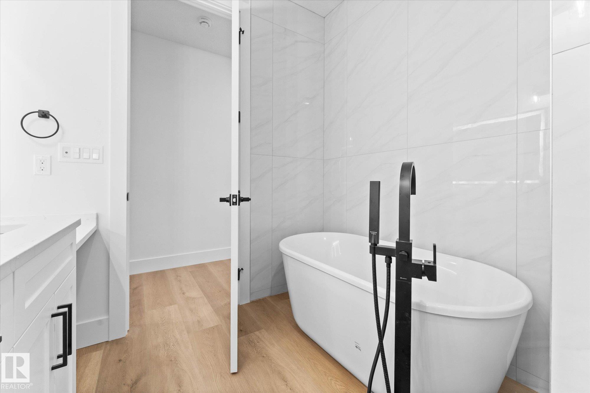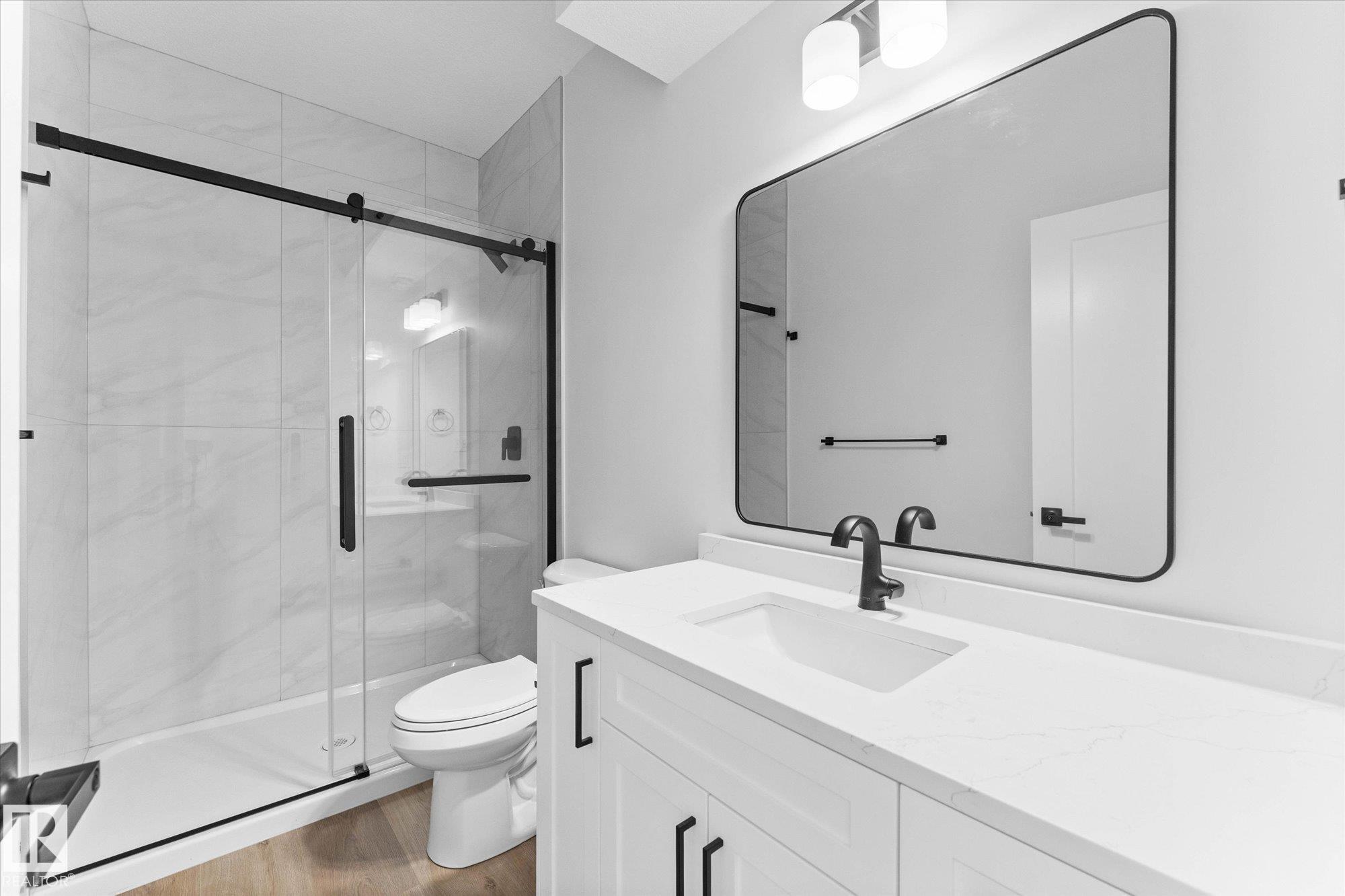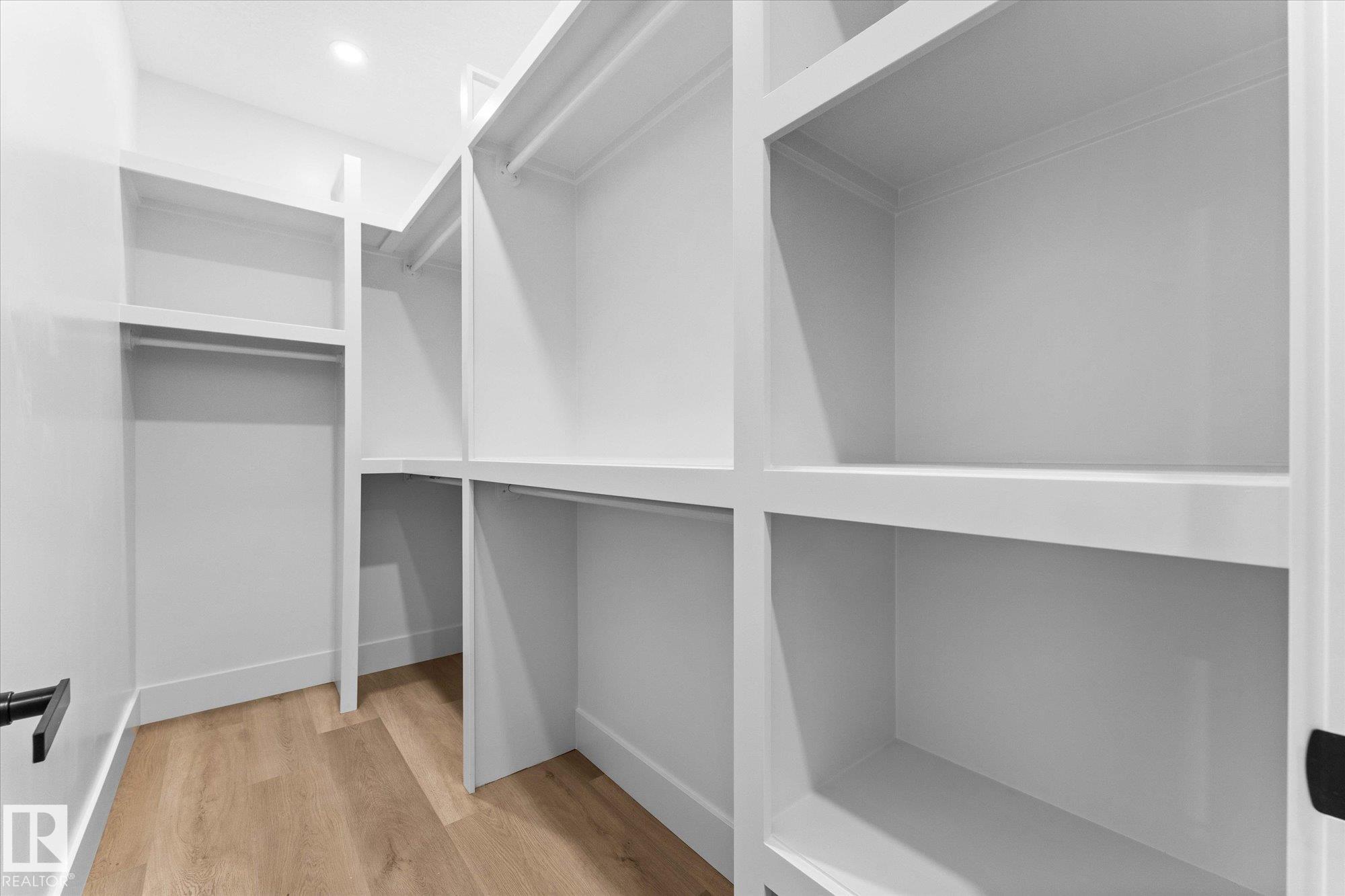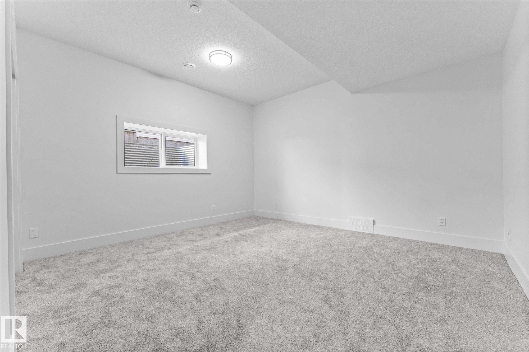 Stunning Walkout Bungalow Backing onto the Pond in The Meadows! This 1527 sq ft home offers a rare combination of serene views, functional design, and exceptional upgrades. The main floor features 9' ceilings and an open layout with 3 bedrooms, including a spacious primary suite with a walk-in closet and a luxurious 5-piece ensuite. The kitchen is a chef's dream--equipped with quartz countertops, dual pantries, built-in appliances, and a large central island. The fully finished walkout basement adds two more generously sized bedrooms, a large family/rec room, a 4-piece bathroom, and an expansive mechanical/storage room. From the basement, step out to the stamped concrete patio and enjoy your private backyard oasis with views of the peaceful pond. The massive triple attached garage is a standout, offering high ceilings, a floor drain, and more than enough room for vehicles, tools, and toys. This is a rare opportunity to own a walkout bungalow in a premium Fort Saskatchewan location.