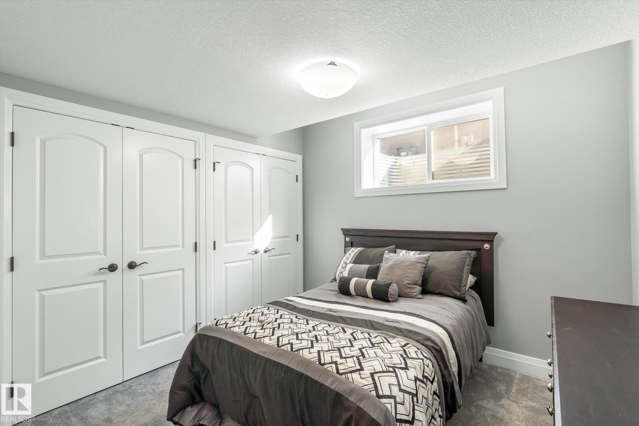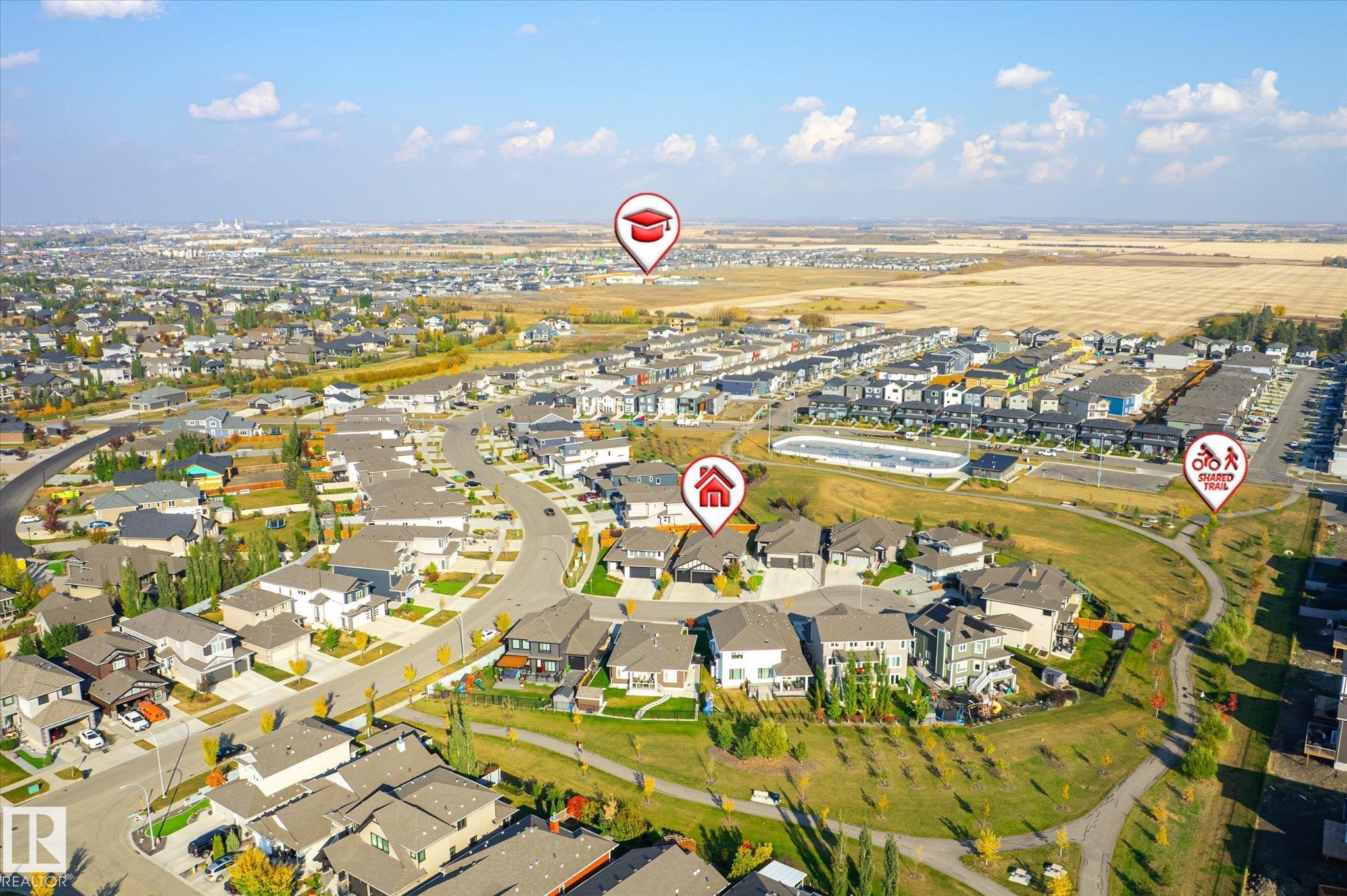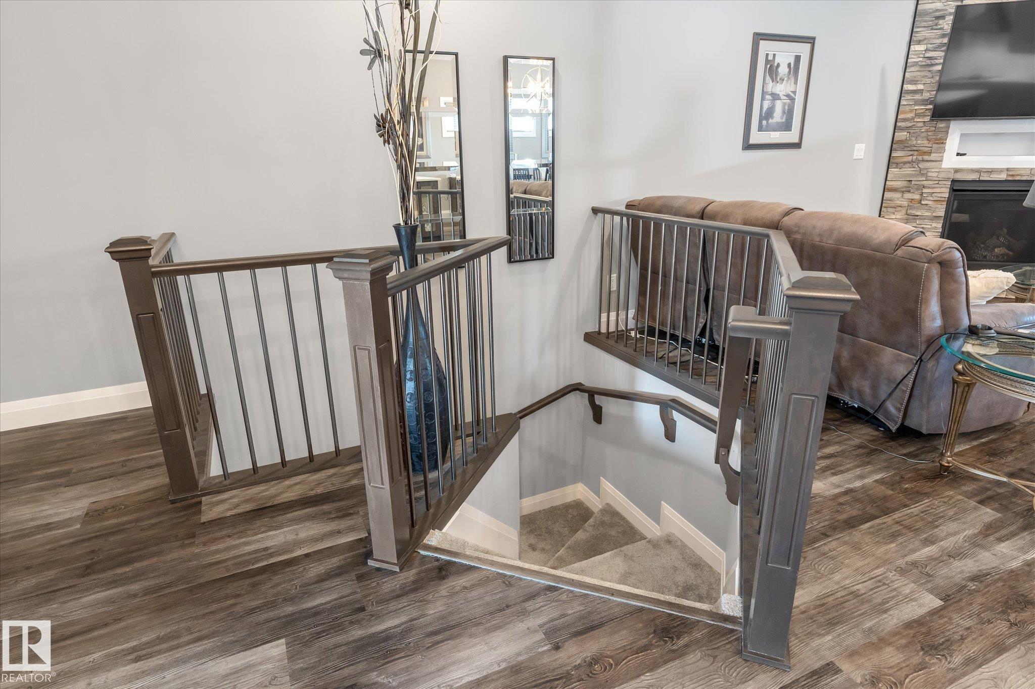 Exquisite custom-built bungalow with all the bells and whistles! Rare find in Fort Saskatchewan on a quiet cul-de-sac, partially backing a park for privacy. At 1,577 sq ft with fully finished basement, it offers high-end finishes and plenty of space for downsizers seeking single-floor living while keeping a functional basement. Stunning curb appeal includes a triple car garage and front veranda. Main floor features a bright den, warm fireplace in the living room, dining area, chef's kitchen with stainless appliances, granite counters, island, and pantry. Mudroom with laundry, 4-pc main bath, and spacious primary bedroom with TWO walk-in closets and 5-pc ensuite with heated floors. Basement boasts high ceilings, large windows, 3 bedrooms, and massive rec space. Enjoy the back deck, landscaping, central A/C, and pristine condition -- a true 10/10!
