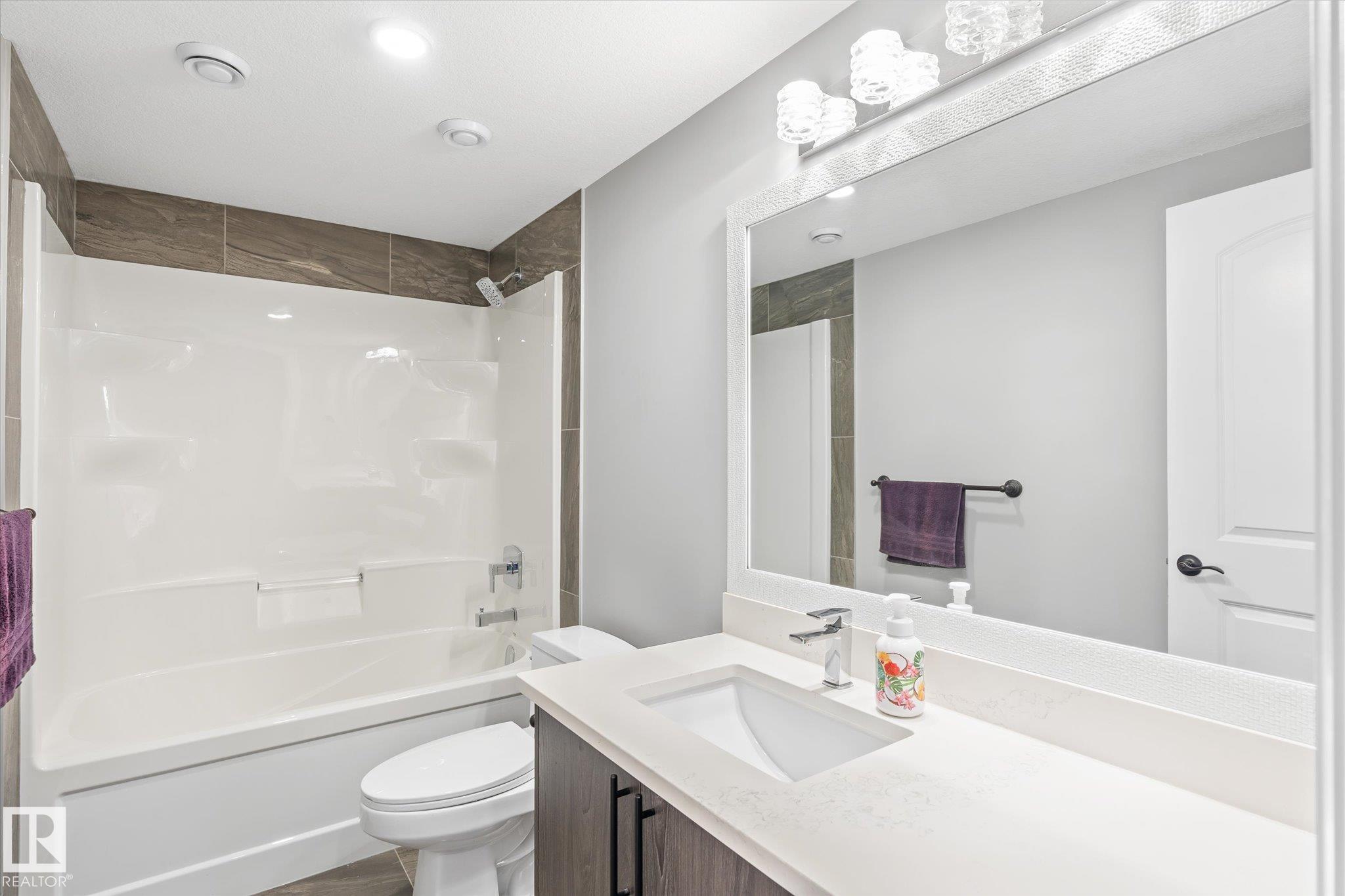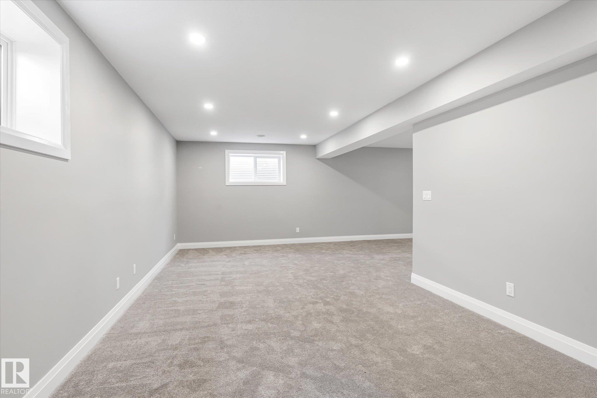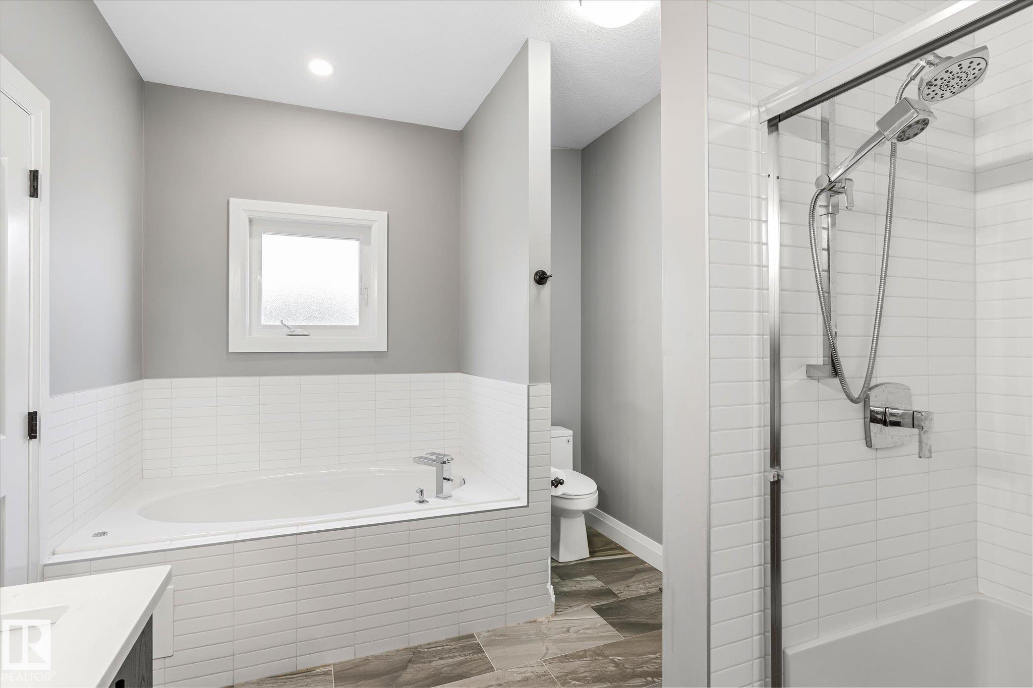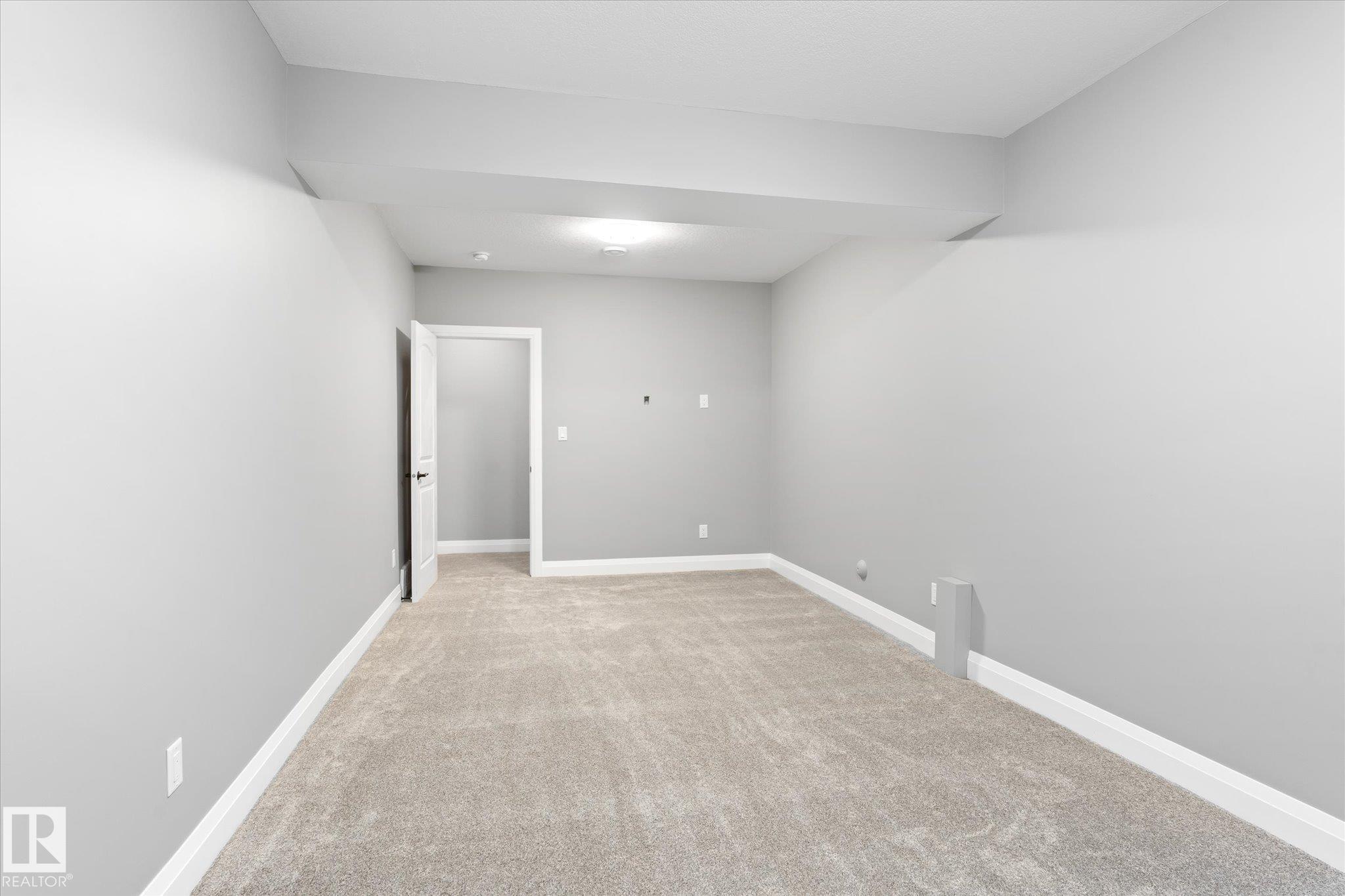 Exquisite custom-built bungalow with all the bells and whistles! Rare find in Fort Saskatchewan on a quiet cul-de-sac, partially backing a park for privacy. At 1,577 sq ft with fully finished basement, it offers high-end finishes and plenty of space for downsizers seeking single-floor living while keeping a functional basement. Stunning curb appeal includes a triple car garage and front veranda. Main floor features a bright den, warm fireplace in the living room, dining area, chef's kitchen with stainless appliances, granite counters, island, and pantry. Mudroom with laundry, 4-pc main bath, and spacious primary bedroom with TWO walk-in closets and 5-pc ensuite with heated floors. Basement boasts high ceilings, large windows, 3 bedrooms, and massive rec space. Enjoy the back deck, landscaping, central A/C, and pristine condition -- a true 10/10!