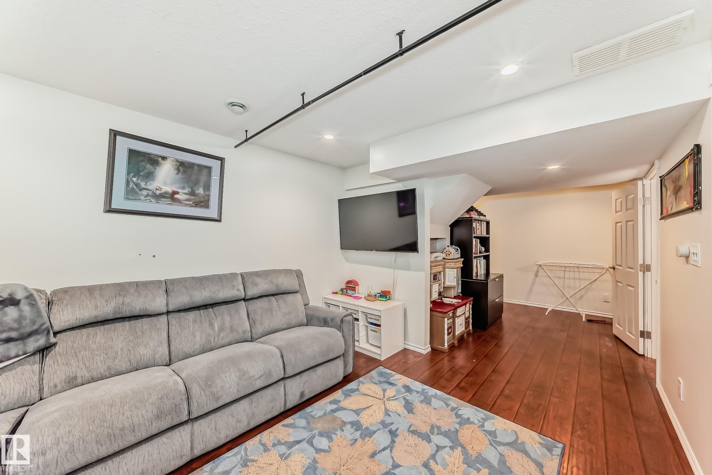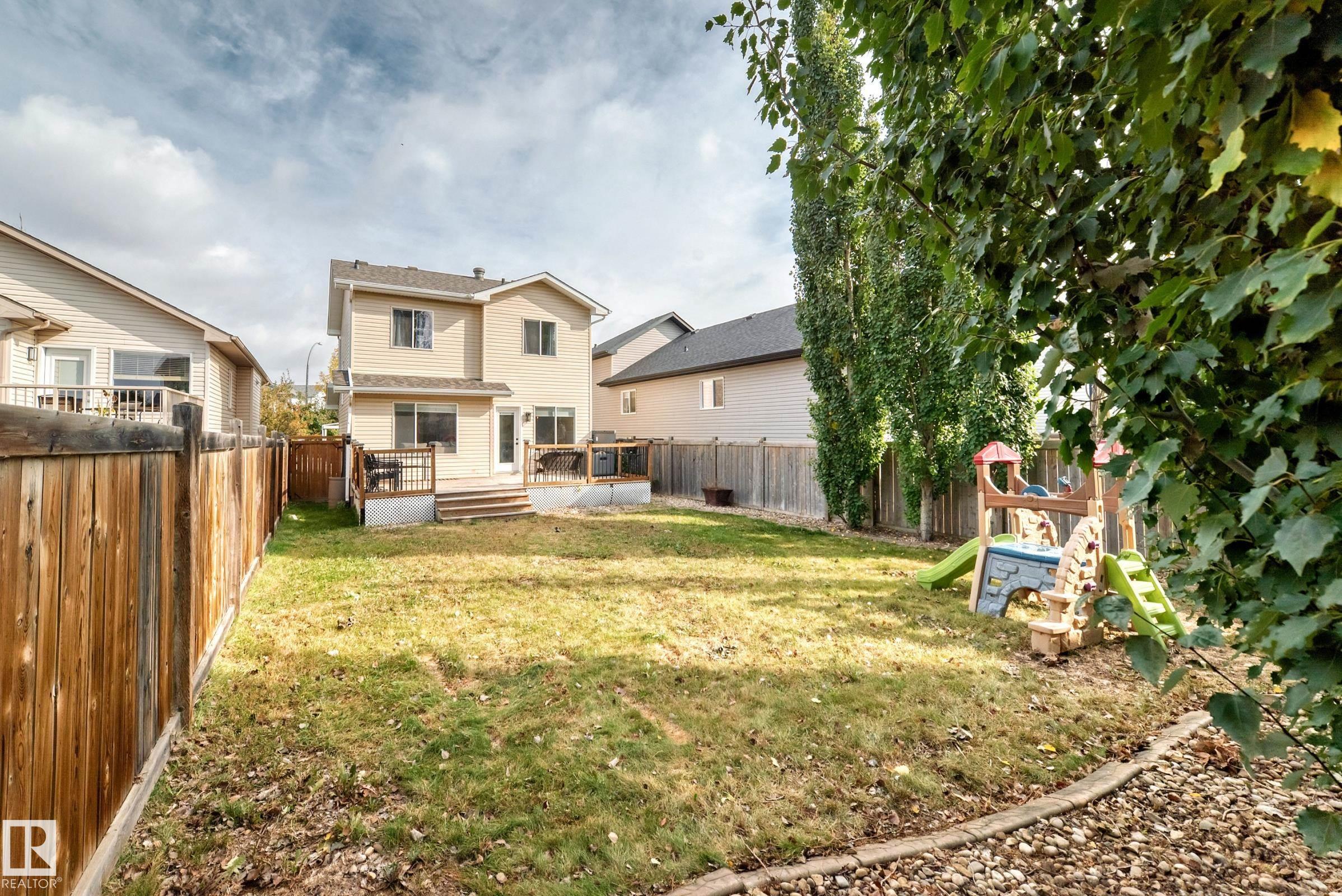 Welcome to 34 Wisteria Lane, a bright and modern 1,260 sq ft 2-storey home in Fort Saskatchewan. The open-concept main floor is perfect for entertaining, featuring a gorgeous updated kitchen with stylish cabinets, new hardware, and brand-new stainless steel appliances. A cozy gas fireplace anchors the living space, while large windows fill the home with natural light. Upstairs, enjoy plush new carpet throughout 3 bedrooms, including a primary with walk-in closet and full ensuite. The finished basement offers a games area, 4th bedroom, laundry, and half bath--ideal for extra living space. Additional upgrades include newer shingles (2 years old) and a high-efficiency furnace. Step outside to enjoy your private backyard and spacious deck, perfect for summer evenings. Complete with a double attached garage, this move-in ready home blends comfort, style, and convenience.