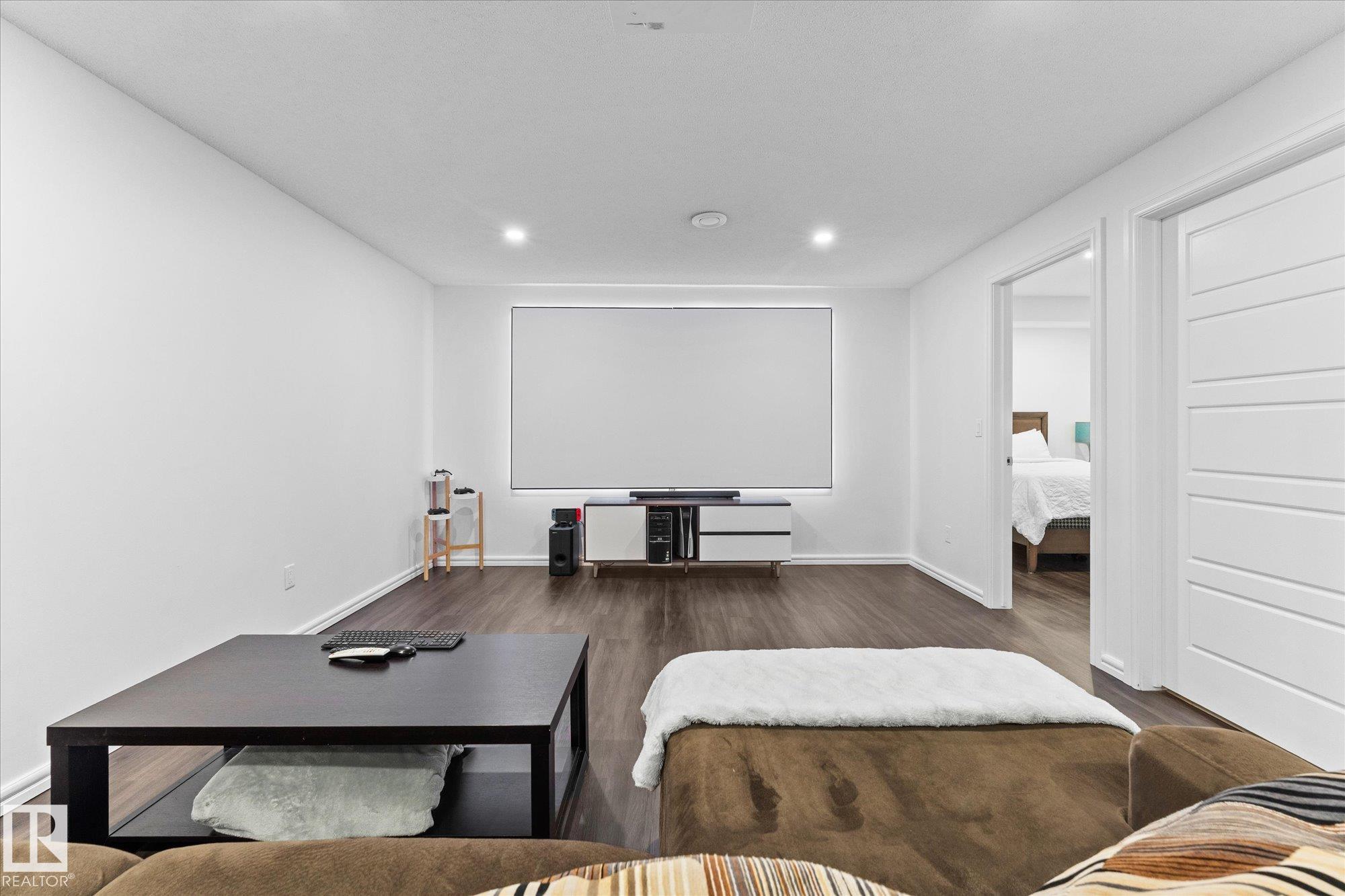 Beautifully finished from top to bottom, this 1900+ sq ft 2-storey in Westpark offers the perfect mix of space, comfort, and style. The main floor features 9' ceilings, quartz countertops, a corner pantry, and a cozy gas fireplace in the living room -- plus main floor laundry for convenience. A 2 piece bathroom completes the main floor. Upstairs, enjoy a bonus room with vaulted ceilings, and 3 bedrooms, including a spacious primary with a 4-piece ensuite. The fully finished basement adds a 4th bedroom, full 4 piece bathroom, and an awesome theatre setup for movie nights. Complete with central A/C, a double attached garage, fully fenced yard, and a great family-friendly location close to parks and trails -- this home truly has it all!