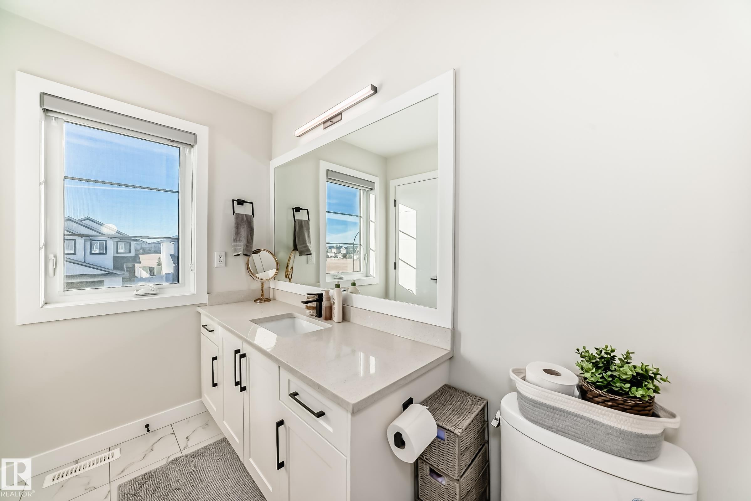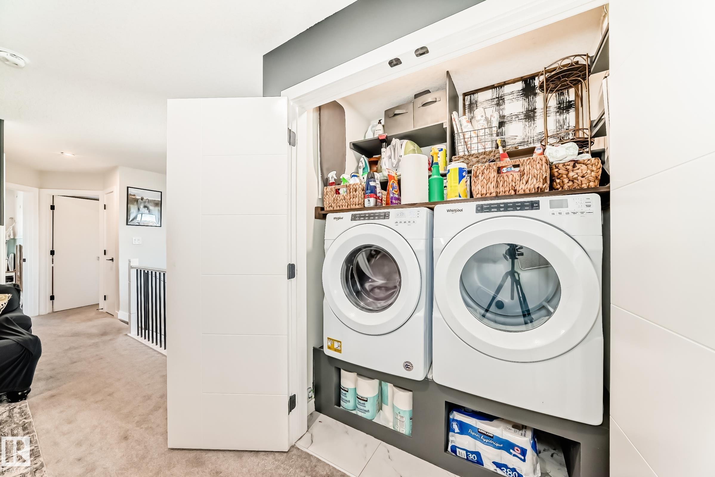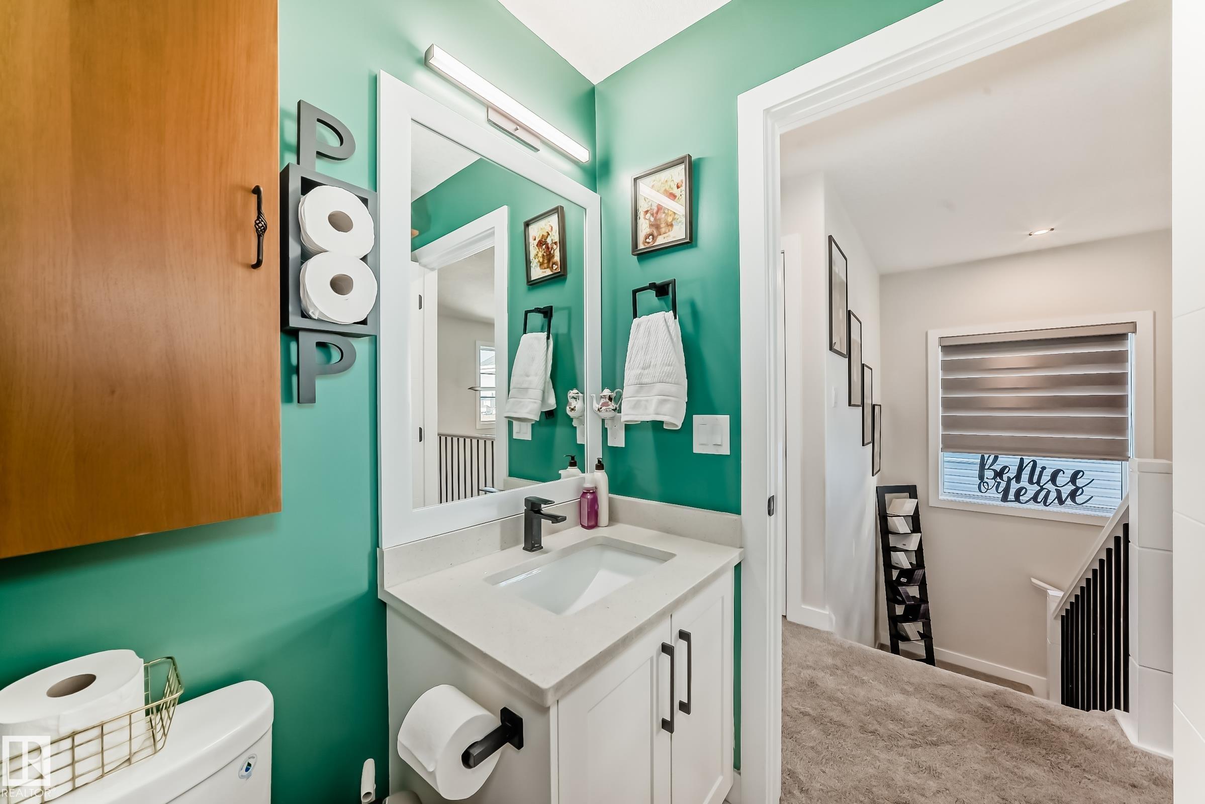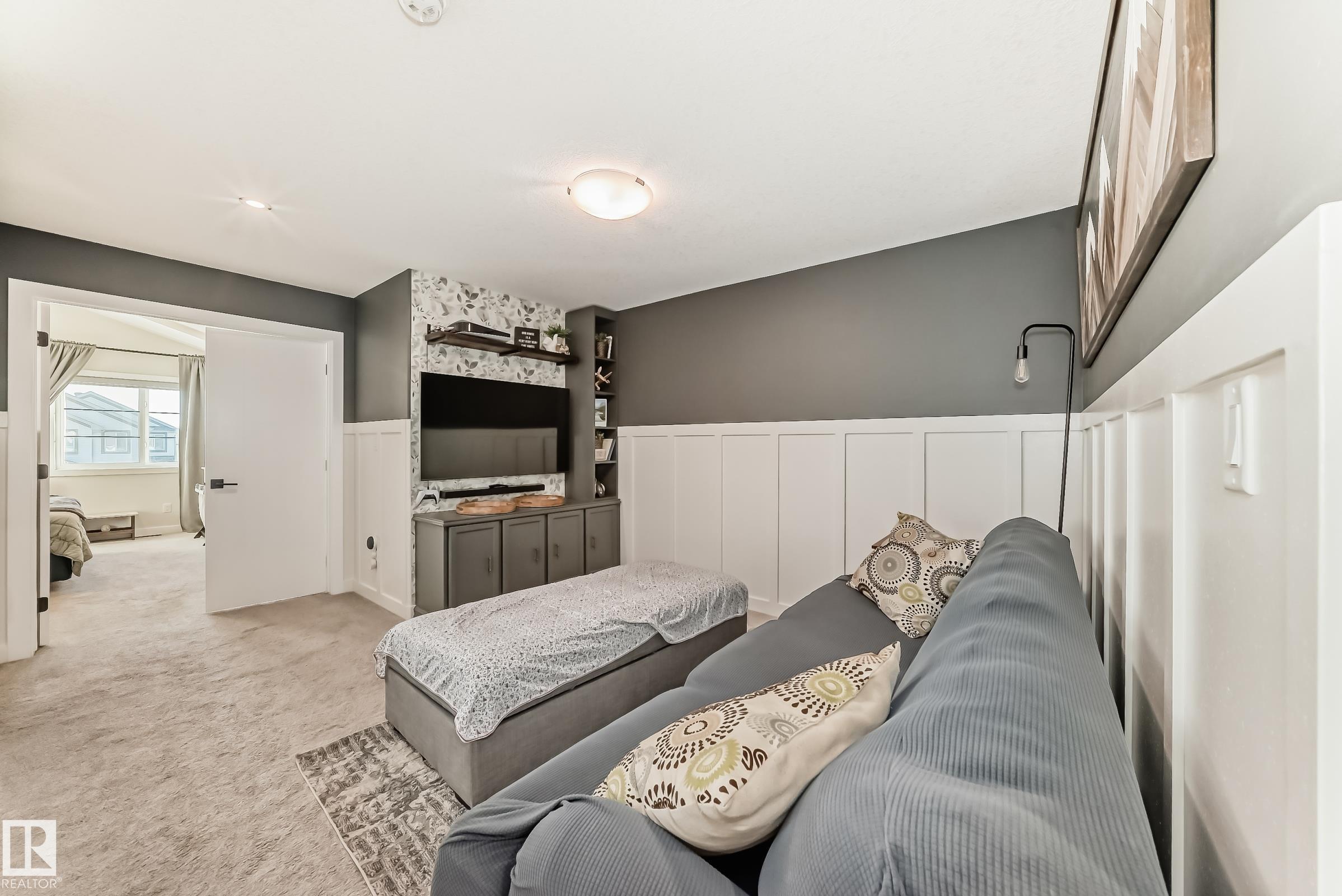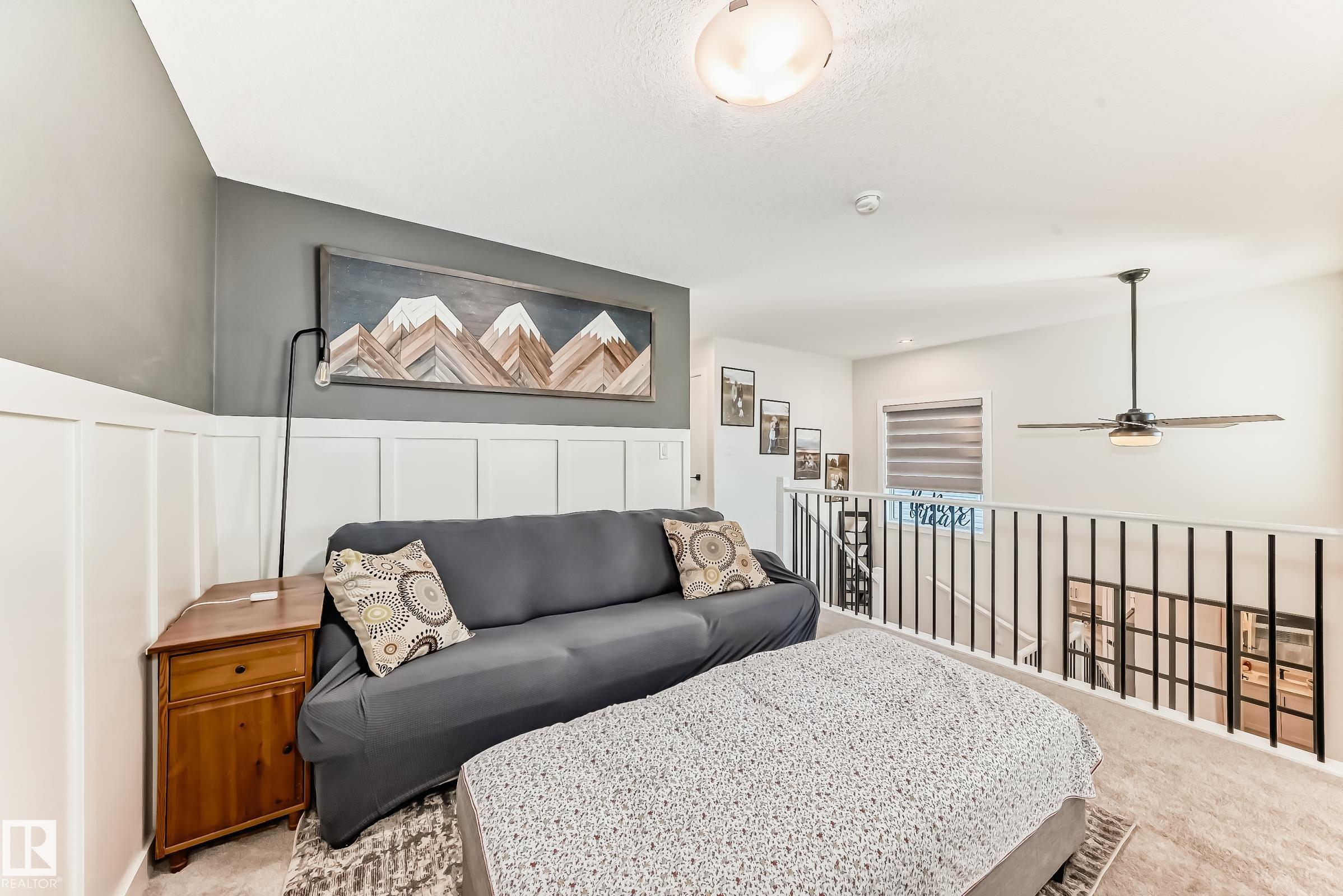 Welcome home to this tastefully finished half duplex in the desirable community of Westpark. Stepping into the bright and spacious entryway you're immediately greeted with high quality finishing's that are sure to impress. On the main level you will find a beautiful kitchen featuring a large island, Stainless steel appliances, quartz countertops, a walk-in pantry, custom built-in storage, a smart lighting system, and a spacious living room filled with natural light, centered around an electric fireplace. Upstairs you will find an elegant primary bedroom featuring a large walk in closet and an ensuite bath, two additional large bedrooms, a full bath, a bonus room, and laundry. Heading downstairs there is a separate side entrance to the basement awaiting your finishing touches. Outside features a large deck, and a vinyl fence. Across the street you will find a large park, as well as close proximity to the scenic walking trails. This modern home in a family friendly neighborhood is a must see!