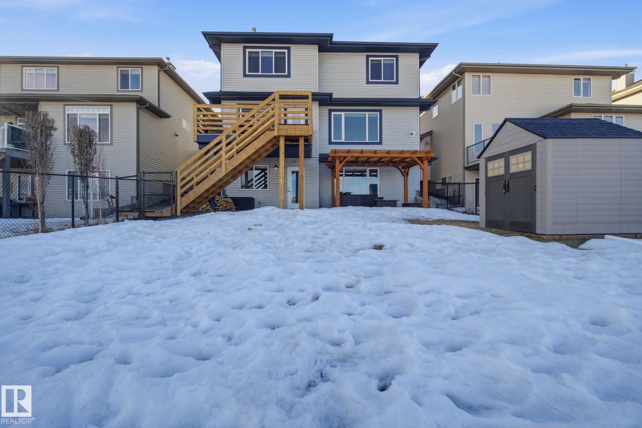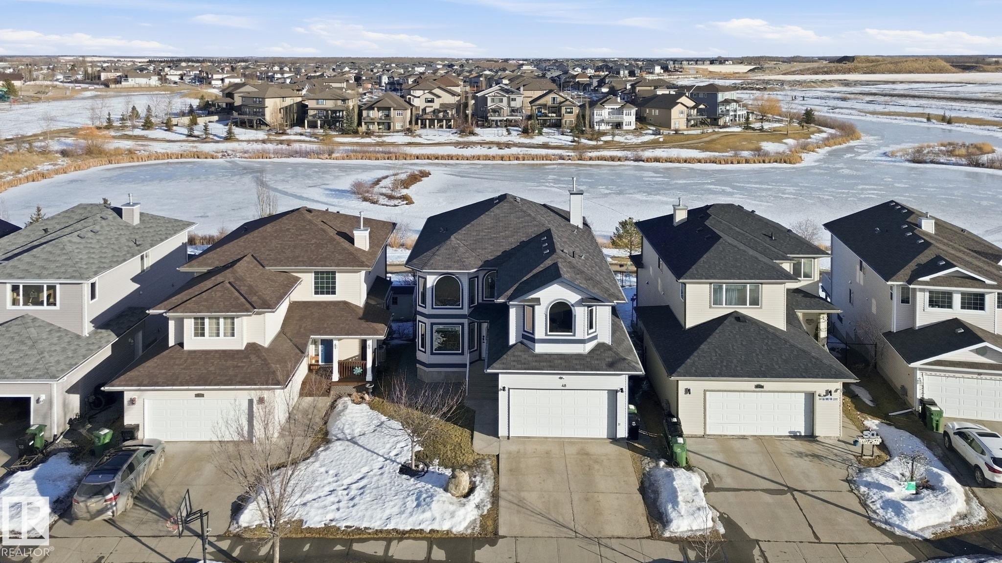 Well-maintained walkout home backing onto walking paths and a peaceful pond, offering over 3,700 sq ft of finished living space. This 5 bedroom, 4.5 bath home features a functional gourmet kitchen with granite countertops & maple cabinetry, hardwood flooring & a gas fireplace in the living room. The primary bedroom includes a spacious ensuite with corner tub. There are 2 other bedroom, 1 that has its own private ensuite & walk in closet. A bonus room & 4pc bath finish this floor. The fully finished walkout basement provides a versatile space for family living, recreation, 2 bedroom & 3pc bath. Recent upgrades within the last year include new carpet and fresh paint throughout, all new windows & blinds, heated garage, & new dishwasher, microwave, fridge, and washing machine. Outside, enjoy a fully landscaped backyard with pergola, deck stairs, garden shed, Firepit, dog run, sidewalk leveling & permanent Christmas lights. Located in a quiet setting with easy access to pathways and green space.