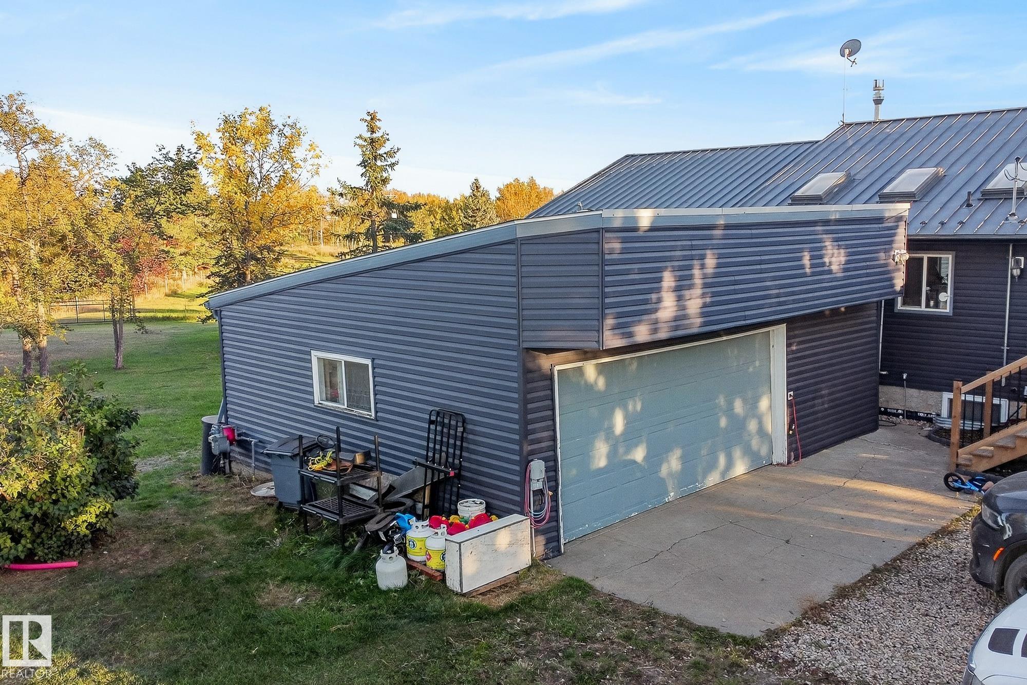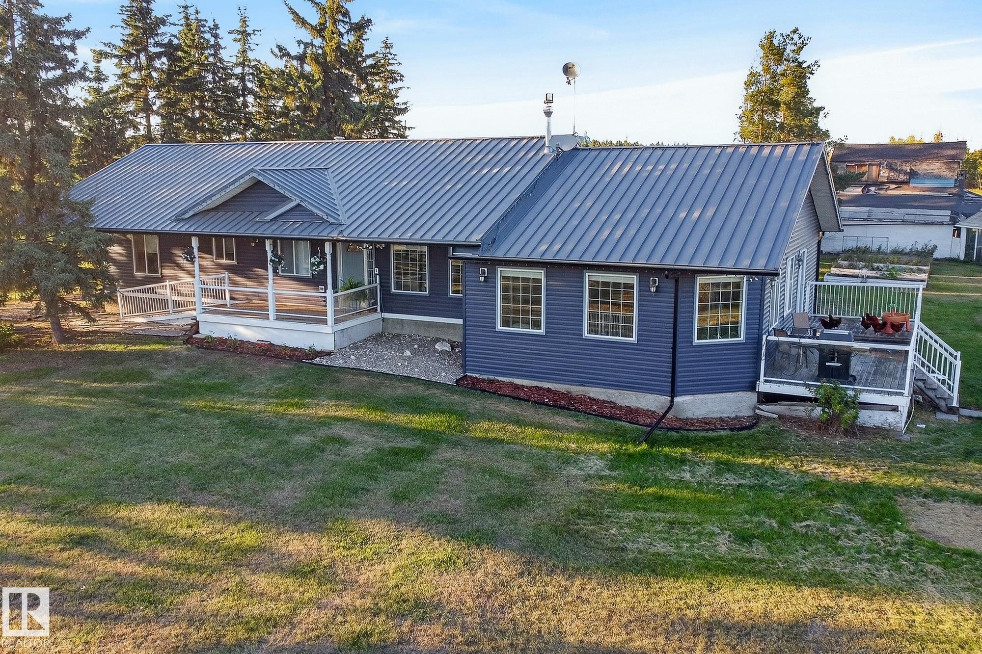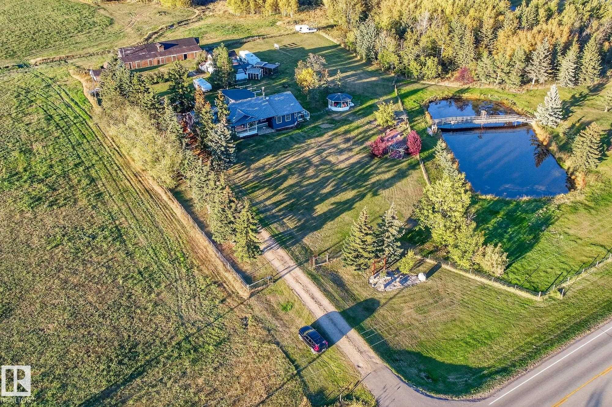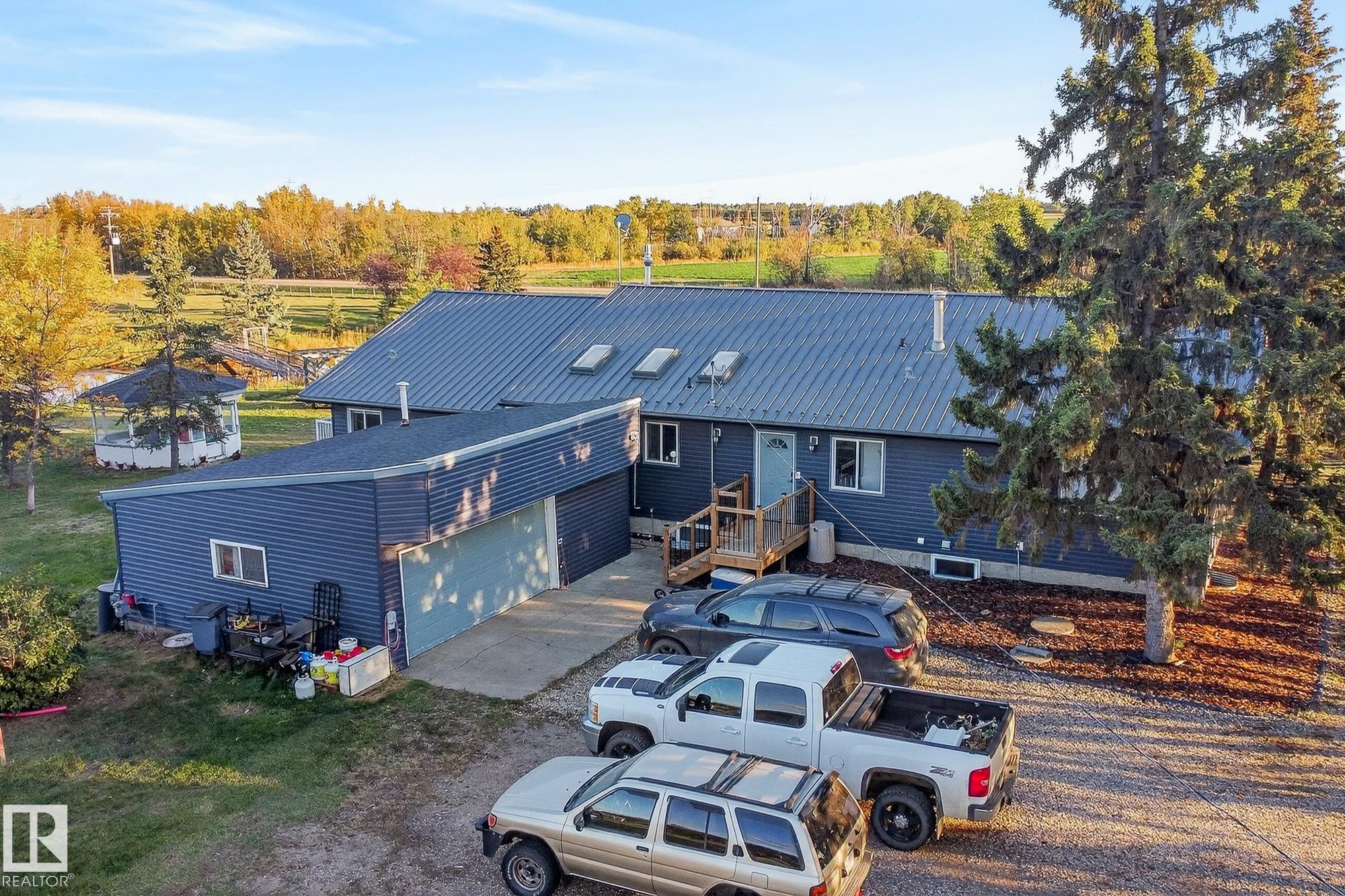 Welcome to 25206 Hwy 651 in Rural Sturgeon County. Located on a paved highway just 2 km to Legal, this stunning 24.56-acre ranch offers breathtaking views & exceptional privacy. The yard is truly unforgettable, featuring a massive pond with bridge, mature trees, picturesque landscaping, & pasture land bordered by a creek. This home offers an incredible setting for photos & outdoor enjoyment, plus the convenience of city water. The 2,251 sq ft home showcases a vaulted eat-in kitchen w/skylights, & a large island. The grand living room offers bright windows & a striking brick gas fireplace. Formal dining room, 3 bdrms, 2 baths, den, & a storage room complete this level. The fully finished basement offers 3 bdrms, a full bath, & a spacious rec room; perfect for relaxing or entertaining. Downstairs you'll also find a laundry room & 2 storage spaces. 28'x22' detached garage w/workspace completes this exceptional property. Brand new tin roof, brand new siding and eaves, new weeping tile, and new appliances!