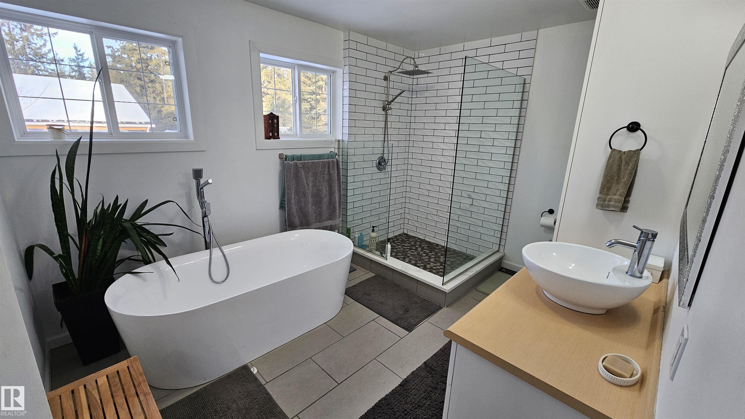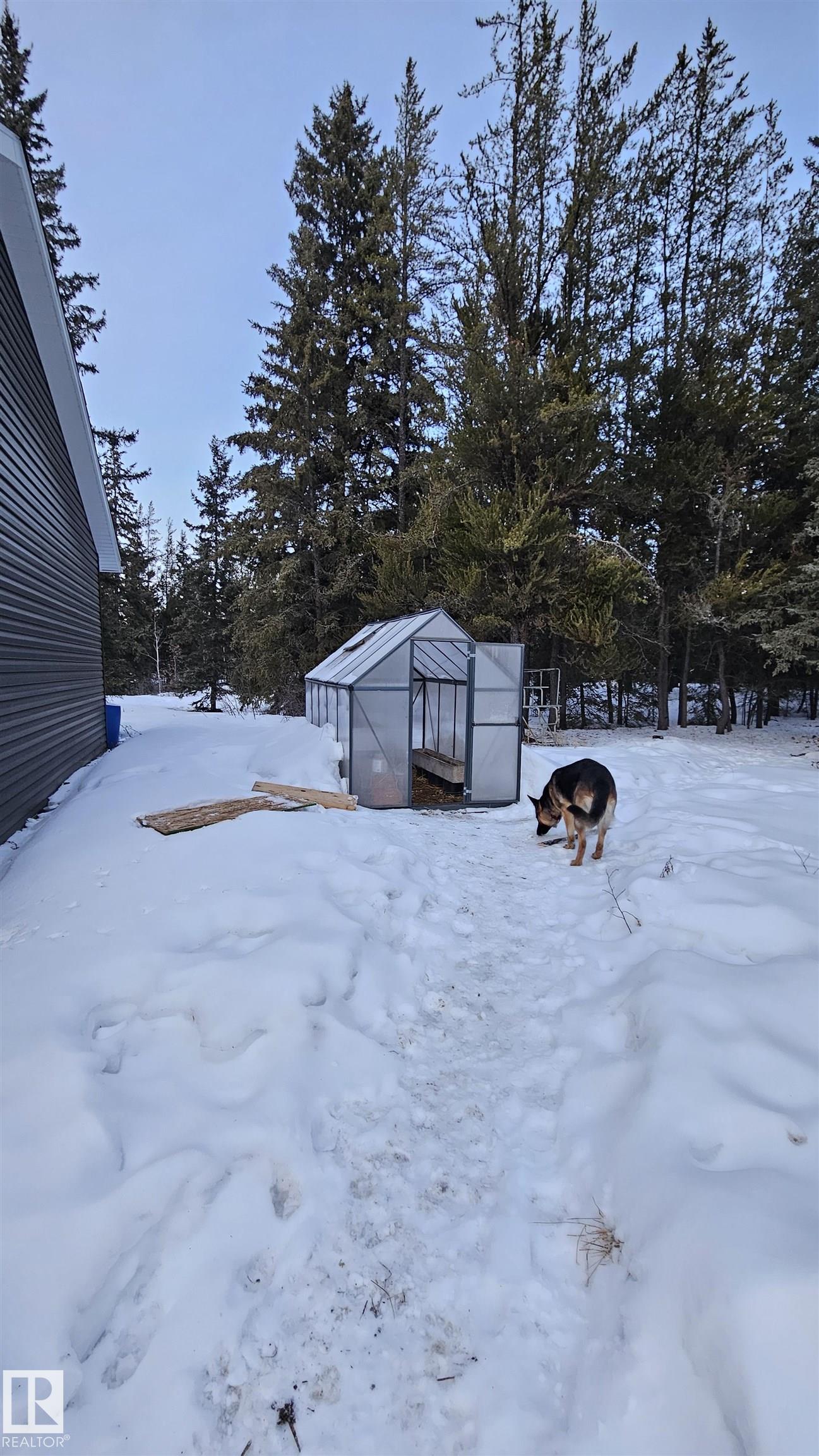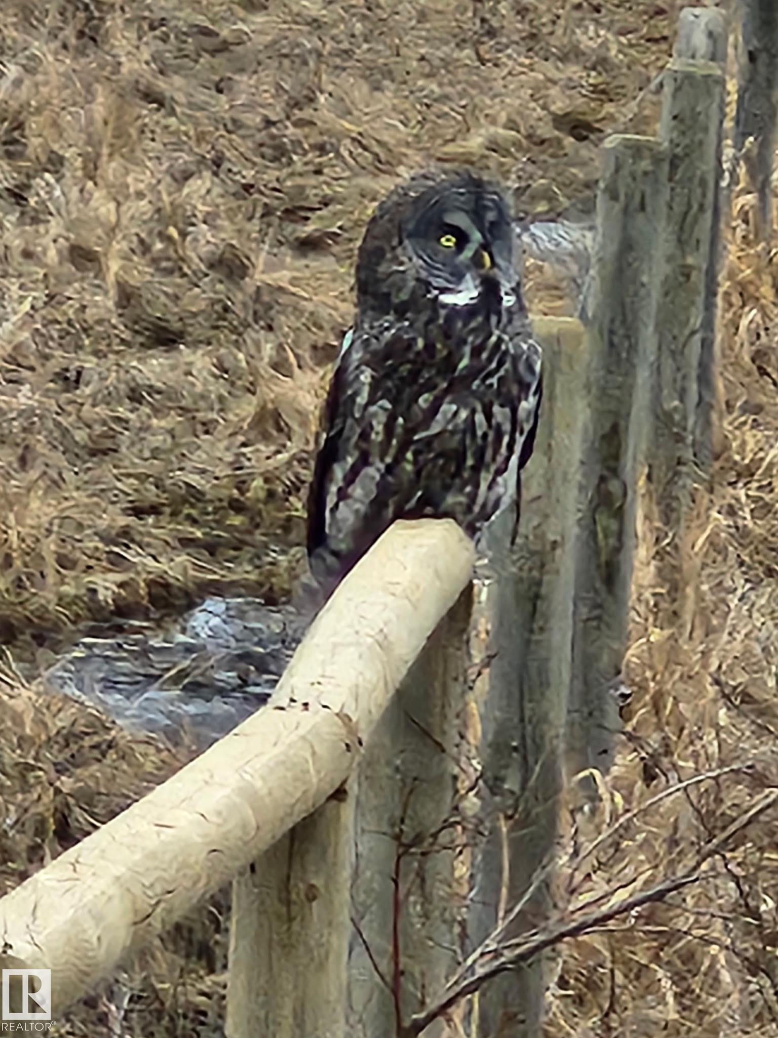 Escape to your own private retreat on this treed acreage boardering Crown land, where peace, privacy, and nature take center stage. This light-filled home features walls of windows that frame stunning farmland views and bring the outdoors in. A wraparound deck on 3 sides invites morning coffee, sunset dinners, and wildlife watching. Upstairs, oversized bedrooms & luxurious 5-piece bath with soaker tub and walk-in shower offer room to truly unwind. The walk-out basement expands your living space, with a 4th bedroom, 3pc bath and den perfect for entertaining or relaxing. No gas bill! Benefit from highly efficient geothermal heating. Along with basement woodstove, enjoy lower utility costs, and year-round comfort. Dont' forget the oversized garage featuring in-floor heating! Additional perks include convenient main floor laundry, central vac,a greenhouse, and a chicken coop for those embracing country living. With easy access to Half Moon Lake and nearby nature reserves, this is country living at its finest.