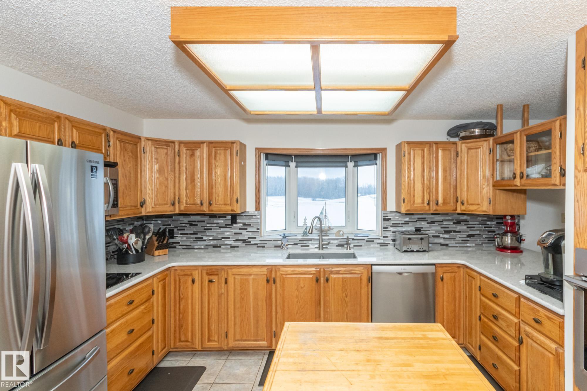 ACCOMODATION FOR 2 FAMILIES IN THIS BEAUTIFUL 2414 SQ FT HOME FEATURING A WALKOUT BASEMENT & LOCATED ON A 5.5 ACRE PARCEL JUST 10 MINUTES EAST OF SHERWOOD PARK. UPGRADES TO THE HOME INCLUDE METAL ROOF 2015 (45,000), WINDOWS 2015 (35,000), GRANITE COUNTER TOPS 2022 (40,000), SEPTIC SYSTEM 2015 (40,000), SHOP SHINGLES 2020 (17,000) , DECK (2015), BOILER & HOT WATER TANK 2022 (45,000), PAVED DRIVEWAY, SIDEWALKS, ELECTRICAL PANEL & ELECTRIC AWNINGS. A VERY BRIGHT & SUNNY HOME FEATURING INFLOOR HEAT UP & DOWN, 2 KITCHENS, 2 LAUNDRY ROOMS, 5 BEDROOMS, 5 BATHROOMS, ACACIA ENGINEERED HARDWOOD FLOORS, AND A VERY OPEN FULLY DEVELOPED LOWER LEVEL WITH LARGE WINDOWS. VERY NICE FEATURES OF THIS PROPERTY ARE THE 24X26 HEATED GARAGE WITH DIRECT ENTRY TO THE HOME AND A 32 X 52 HEATED SHOP. 2 FREEZERS & FRIDGE IN THE GARAGE ARE INCLUDED.