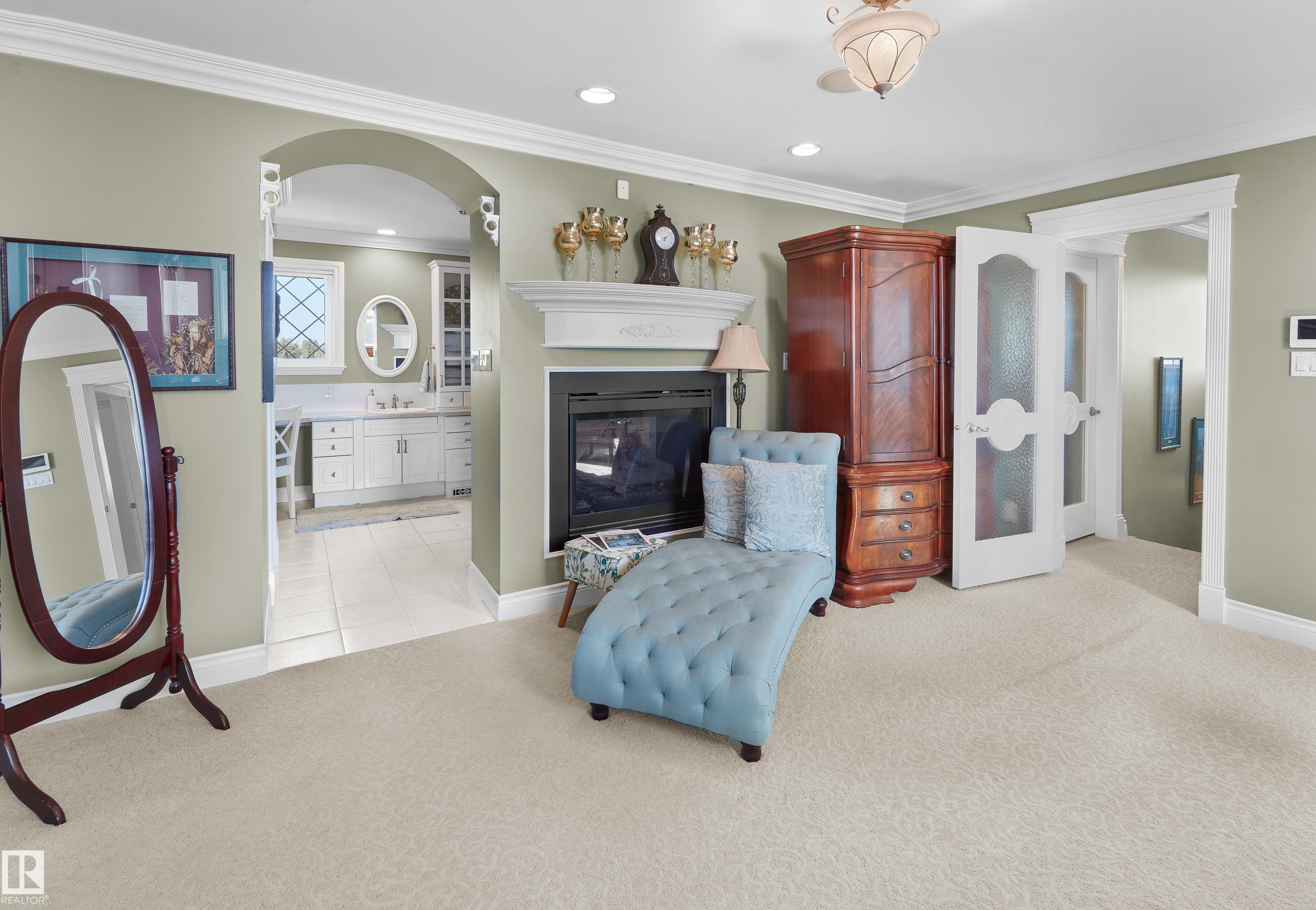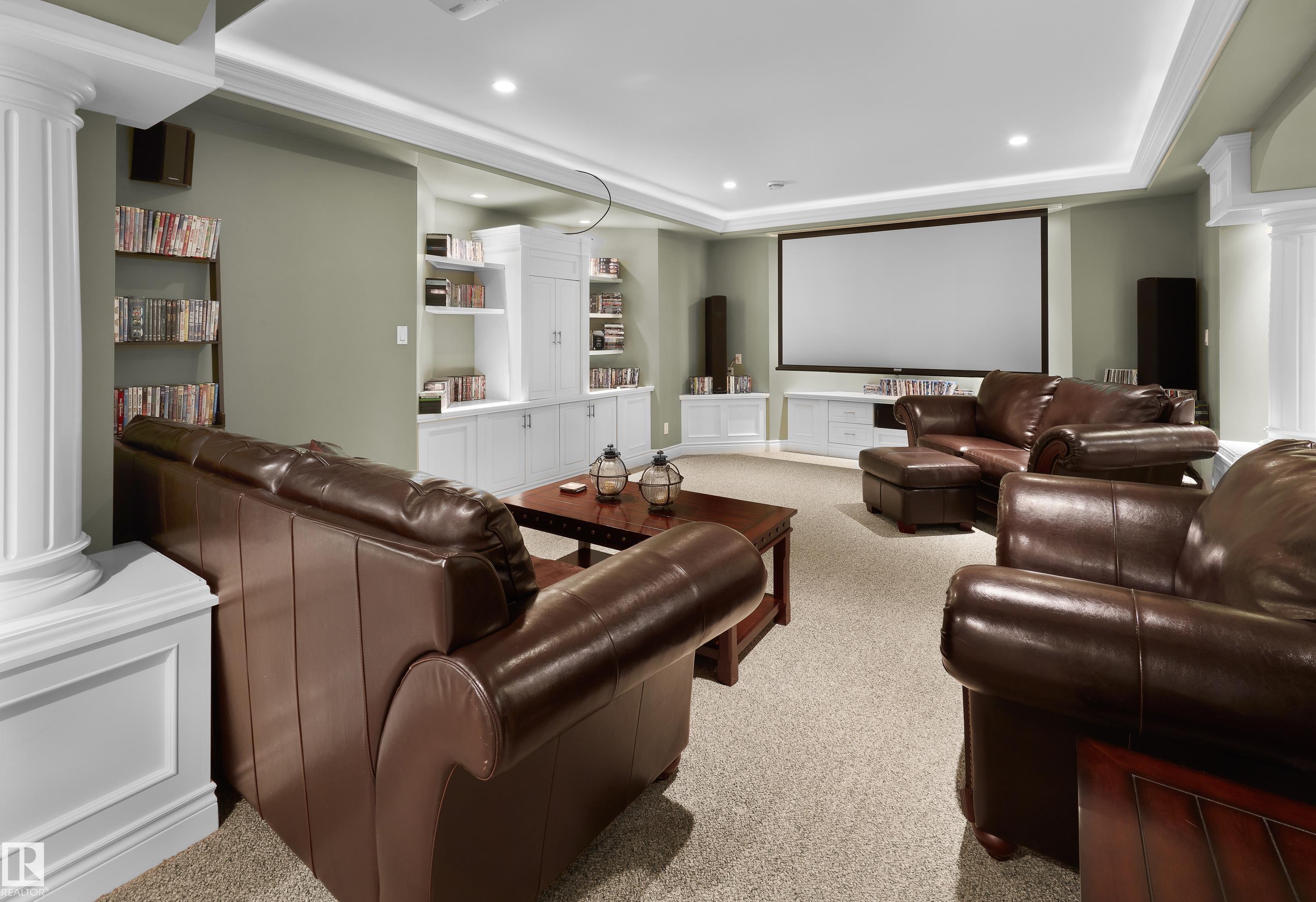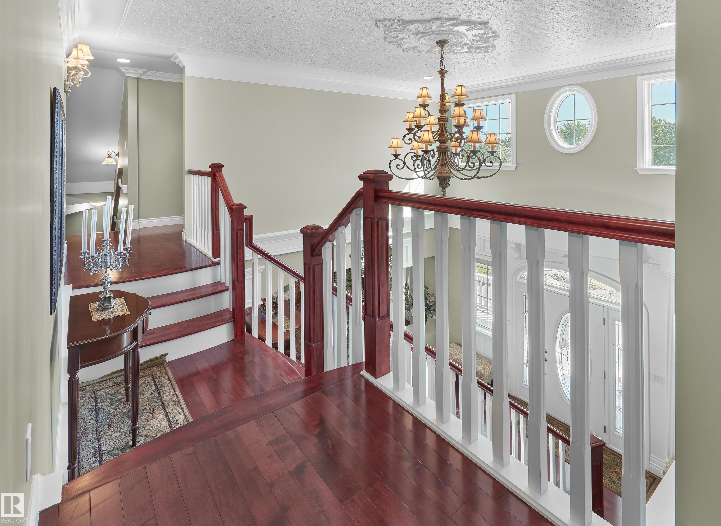 Discover the ultimate luxury escape in this one-of-a-kind six thousand plus SqFt custom home, set on 2.04 acres in the Barry Hill subdivision, minutes from Sherwood Park. This entertainer's dream, with six bedrooms, 4.5 bathrooms, welcomes you with striking curb appeal and meticulously manicured landscaping as you arrive along the paved driveway. Inside, a grand staircase, exquisite finishings, and ten-foot ceilings create an atmosphere of sophistication and warmth. The separate library, with twelve-foot ceilings, a gas fireplace, and custom woodwork, is a sanctuary for quiet moments. The gourmet kitchen features an abundance of cabinetry, granite countertops, and generous pantry. Upstairs, discover an expansive primary suite retreat with dual walk-in closets and a grande five-piece ensuite. Downstairs, the heated basement includes a bedroom, full theatre room, kitchen, recreation area, exercise room, and an incredible twenty-foot high gymnasium, offering a lifestyle of grandeur, comfort and tranquility!