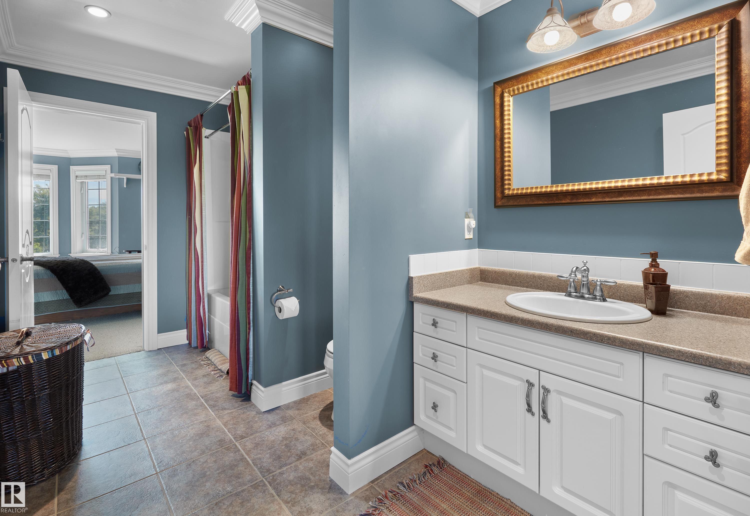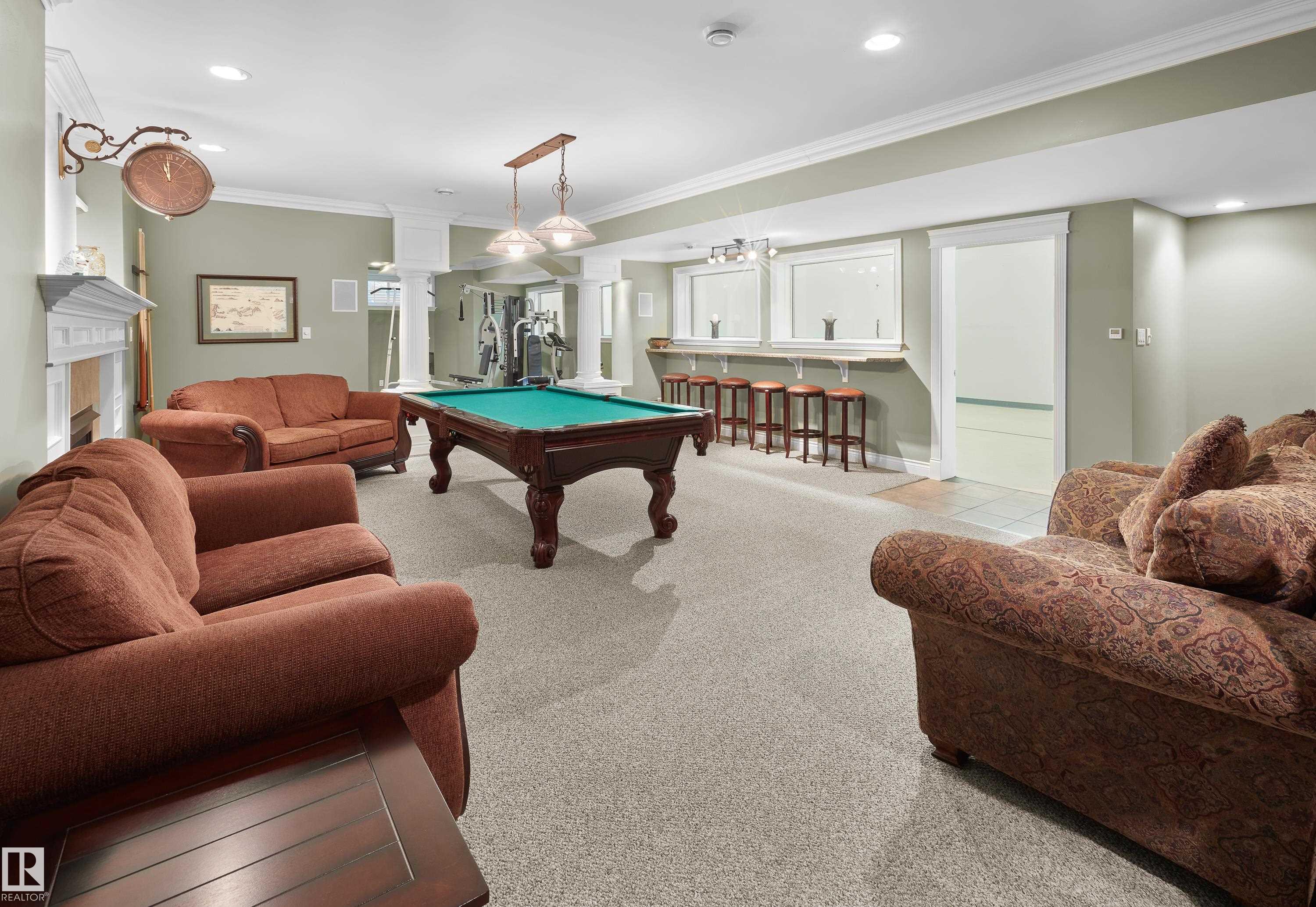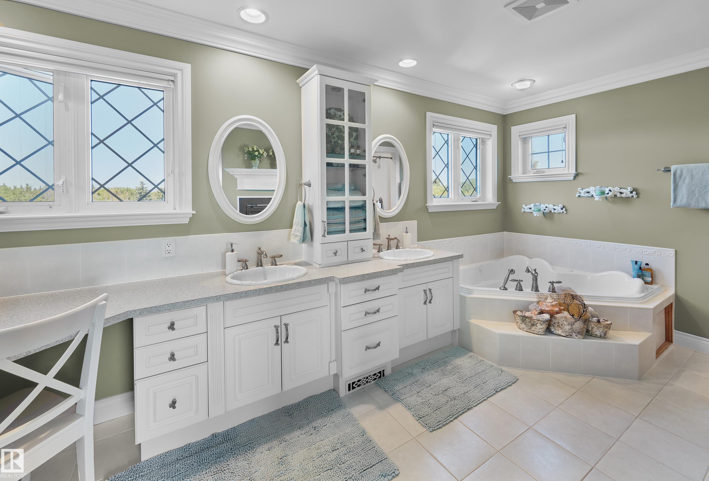 Discover the ultimate luxury escape in this one-of-a-kind six thousand plus SqFt custom home, set on 2.04 acres in the Barry Hill subdivision, minutes from Sherwood Park. This entertainer's dream, with six bedrooms, 4.5 bathrooms, welcomes you with striking curb appeal and meticulously manicured landscaping as you arrive along the paved driveway. Inside, a grand staircase, exquisite finishings, and ten-foot ceilings create an atmosphere of sophistication and warmth. The separate library, with twelve-foot ceilings, a gas fireplace, and custom woodwork, is a sanctuary for quiet moments. The gourmet kitchen features an abundance of cabinetry, granite countertops, and generous pantry. Upstairs, discover an expansive primary suite retreat with dual walk-in closets and a grande five-piece ensuite. Downstairs, the heated basement includes a bedroom, full theatre room, kitchen, recreation area, exercise room, and an incredible twenty-foot high gymnasium, offering a lifestyle of grandeur, comfort and tranquility!