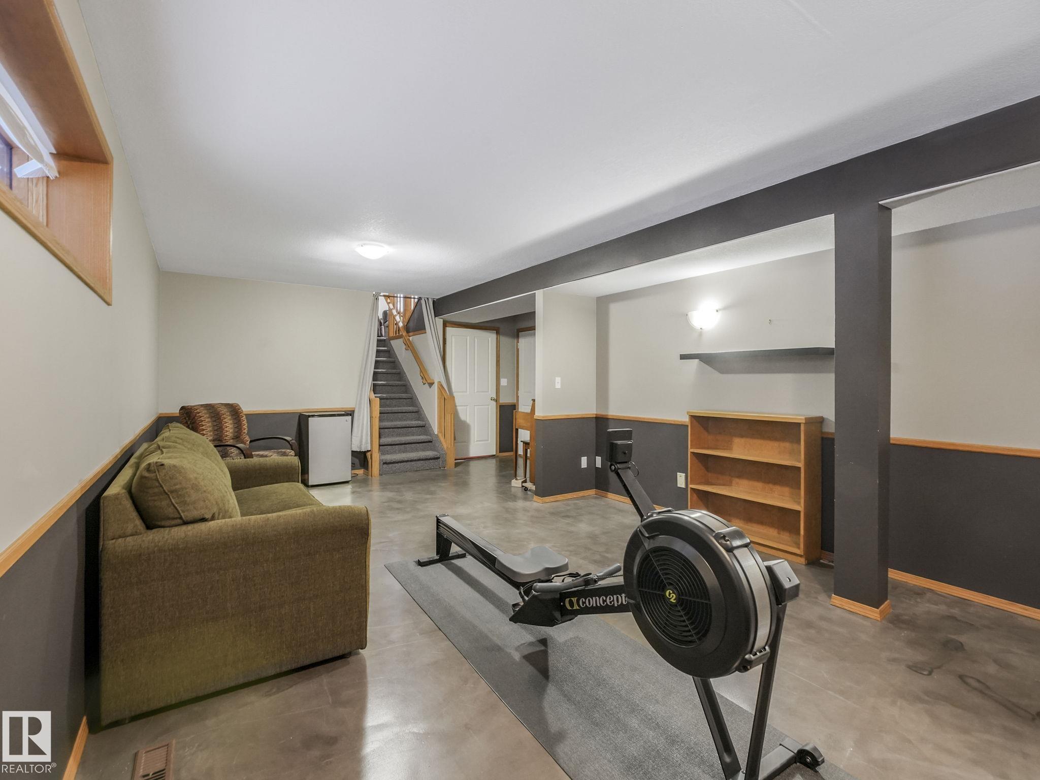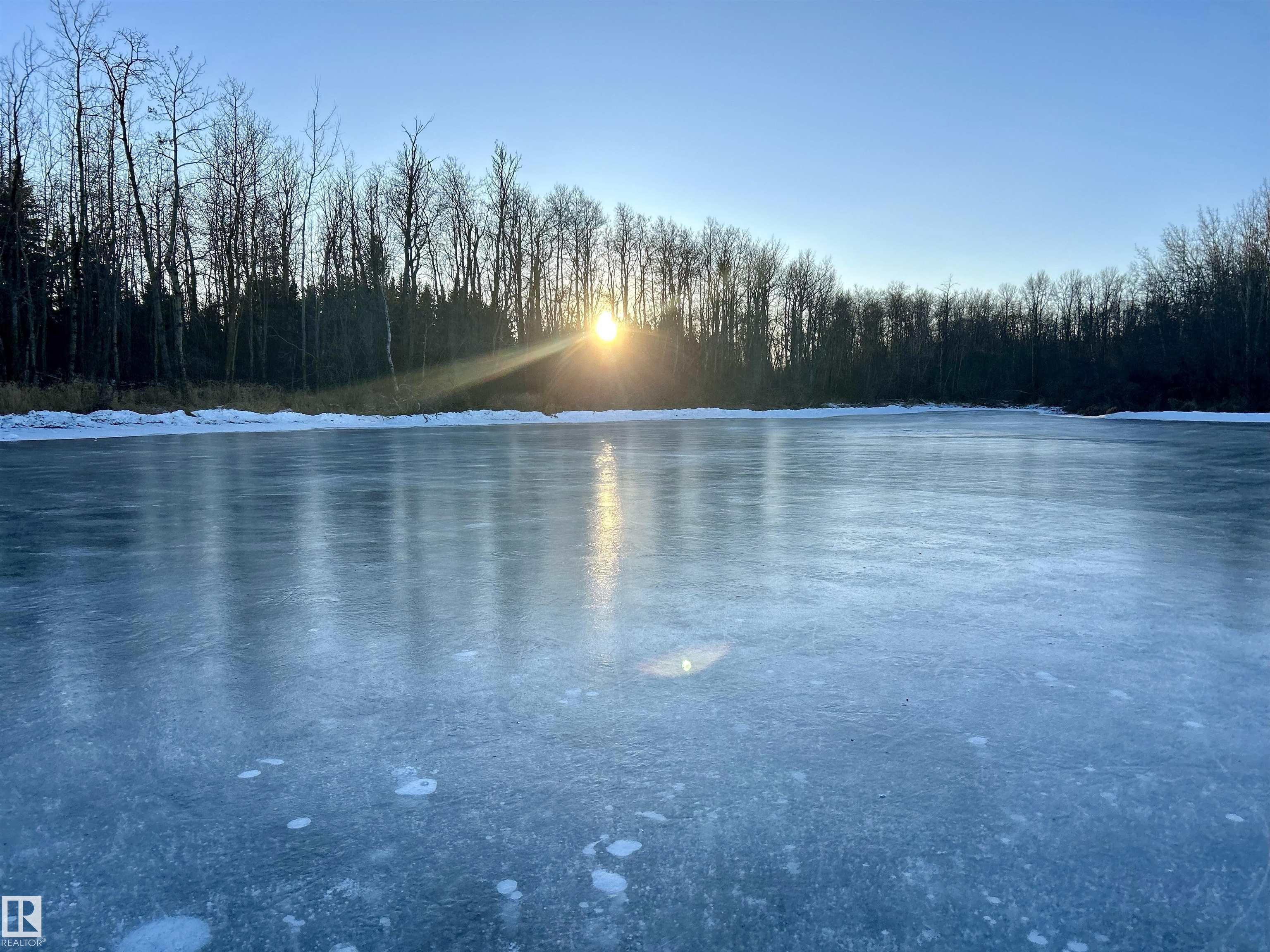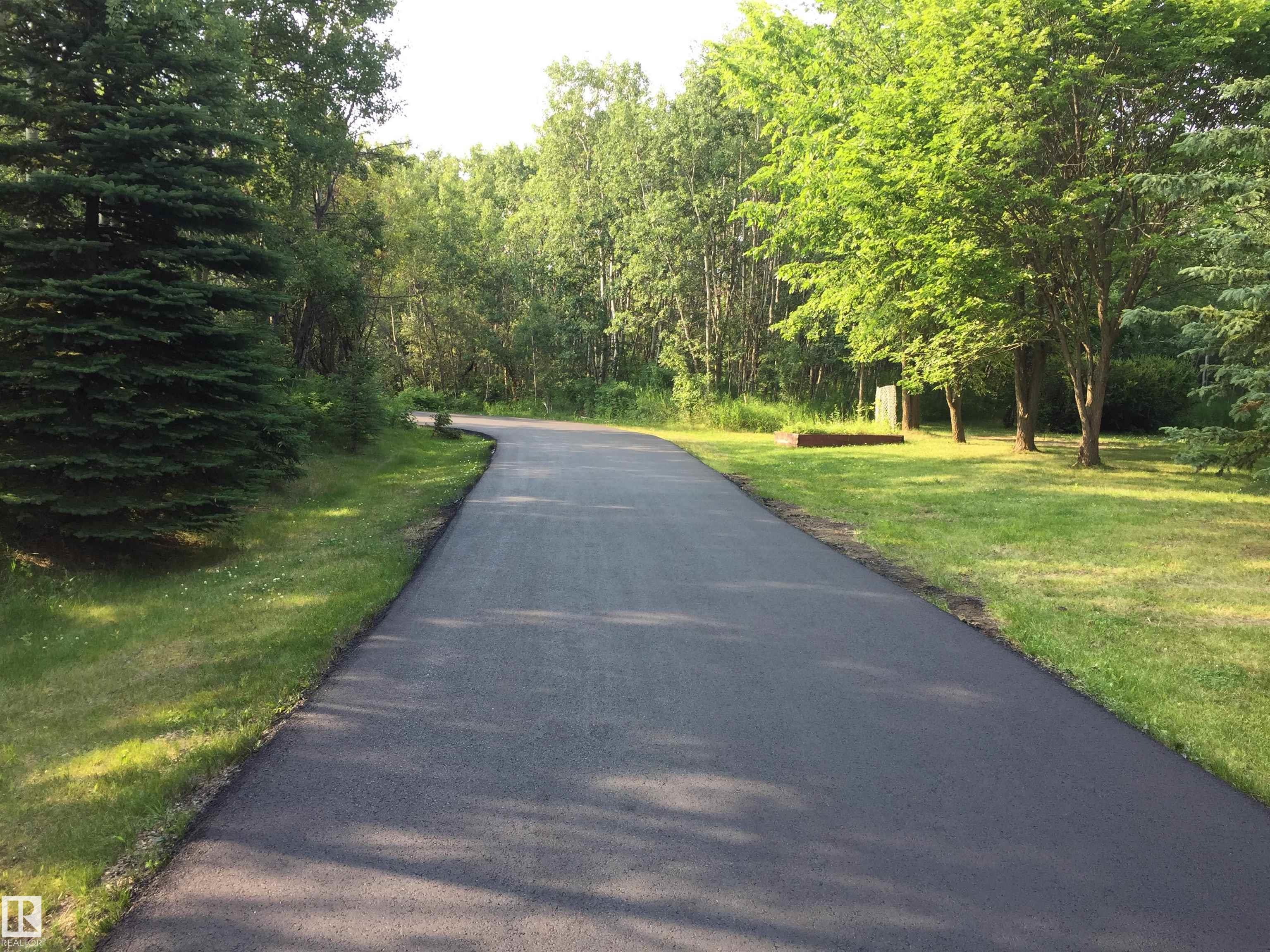 Private, treed acreage living just minutes from Sherwood Park and Edmonton, set on a secluded 3.13-acre lot with an environmental reserve directly behind, offering year-round enjoyment with wildlife on the pond in summer and skating in winter. This 1774 sq ft walkout bungalow features hardwood and slate flooring, oak cabinetry, stainless steel appliances, a sunken living room with a cozy wood stove, and an absolutely huge wrap-around deck ideal for entertaining or quiet evenings. The main floor offers 1 bedroom, while the fully developed walkout basement includes a separate entrance, 3 additional bedrooms, and flexible space suitable for a future suite or home-based business. Garage space is exceptional with a massive (30x30) heated double attached garage featuring epoxy flooring and built-in cabinets, plus a 12x20 detached garage for lawn equipment and toys, all complemented by a paved circular driveway that adds convenience and great curb appeal.