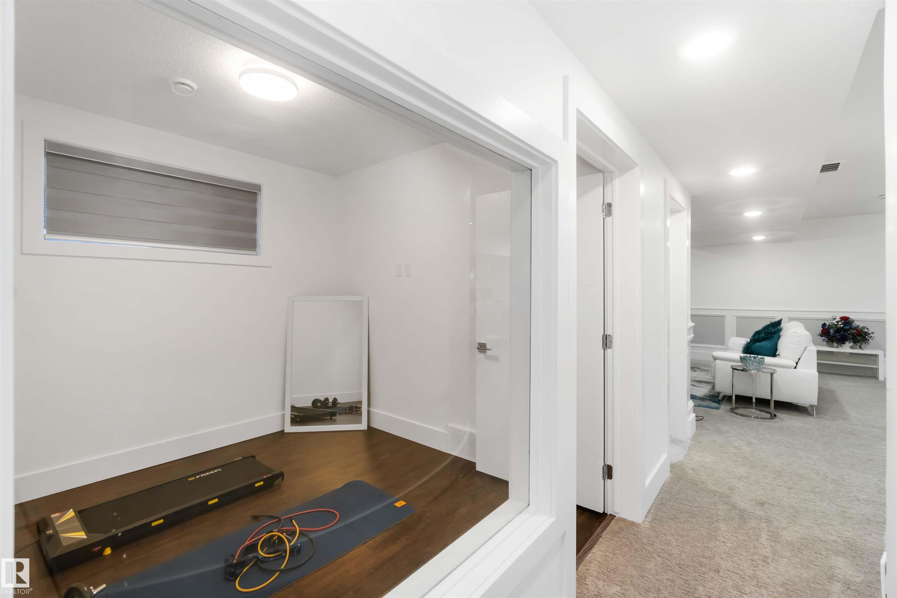 Set on an impressive lot with an expansive 80x35 ft driveway, this custom-built luxury home offers over 6,700 sq ft of total living space. Designed to impress, it features 7 bedrooms, central A/C, a spice kitchen, and a rare quad garage. The grand foyer opens to an elegant formal living area and flows into the family room showcasing soaring 20-foot ceilings, a striking fireplace set within a custom feature wall, and ceramic tile flooring. The chef-inspired kitchen includes a large island, double-wide refrigerator, and a fully equipped spice kitchen. The main floor is complete with a private office and a bedroom with ensuite--ideal for guests or multi-generational living. Upstairs offers four spacious bedrooms, each with its own ensuite, including three with balconies and a luxurious primary retreat. The fully finished basement adds two more bedrooms (one with ensuite), a home theatre, wet bar with entertainment space, and a private home gym. A home built for luxury living and entertaining.