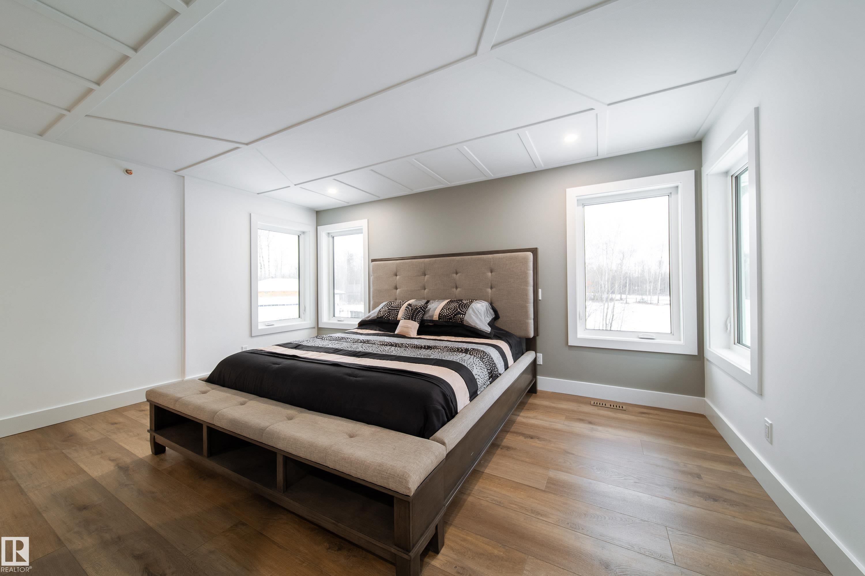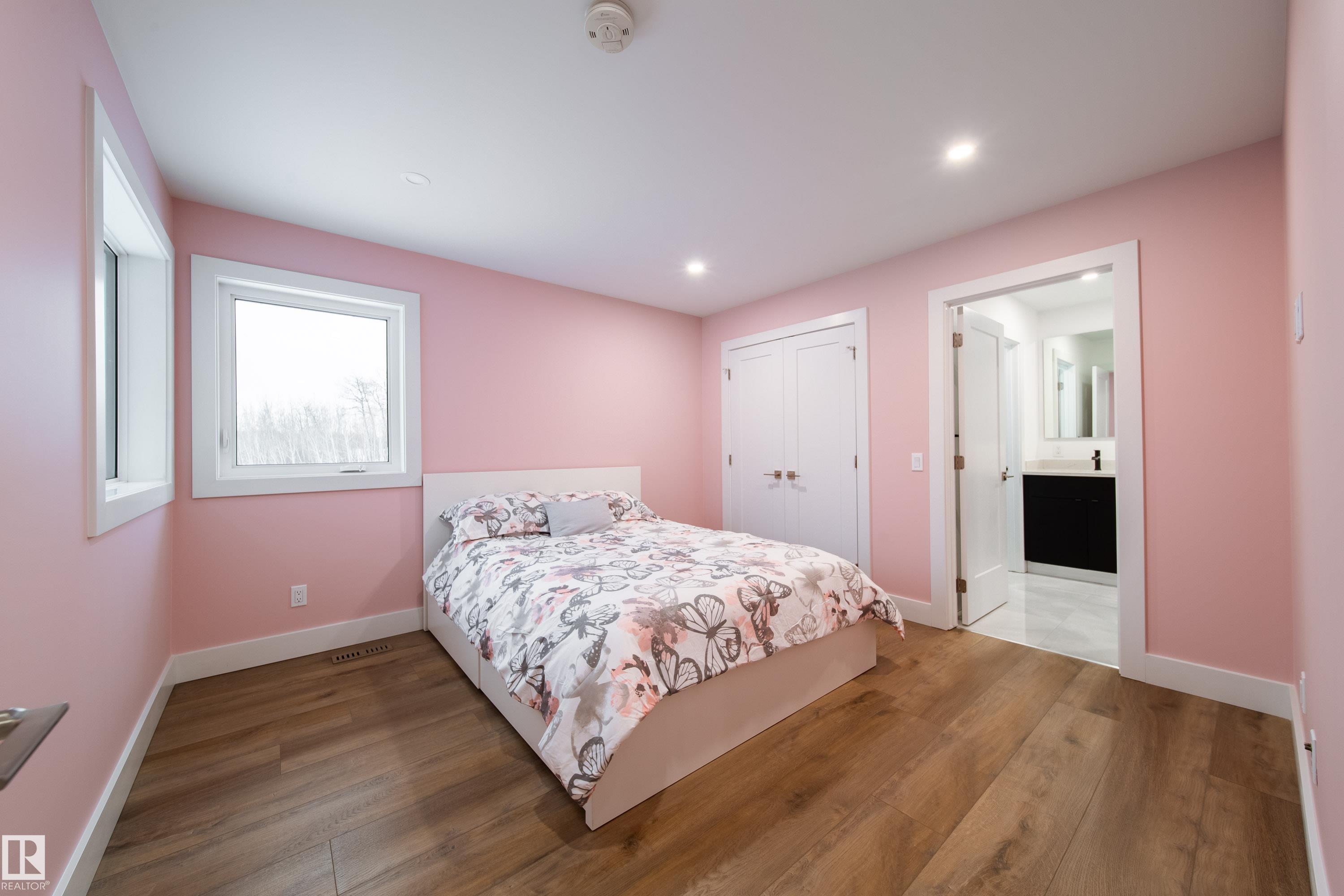 Welcome to your new home located in West Bear Haven Estates Backing on to the 12th fairway of the legendary PGA Northern Bear Golf Course,this gated community offers safety,space & serenity just 20 minutes from Edmonton & Sherwood Park. o Over 6,500 SqFt of living spaceÿon a « acre estate lot o 8 bedrooms,5 bathrooms o 9-10ft ceilings with a vaulted living room o Dream entertainer's kitchen:2 stoves,pot filler,quartz counters,soft-close drawers,wide vinyl plank flooring o Triple-pane windows & built-in speakers in den o Spa-inspired ensuite with porcelain tile,double showers & a 140 SqFt custom California walk-in closet o 200 AMP service,2 AC units,2 furnaces,2 HRVs,water softener & indoor fire suppression o Covered outdoor kitchen & Duradek-covered decks o 18ž18 concrete pad with hot tub hookup o 10ž12 matching Hardie Board shed o Private putting green o Gym with walk-out patio o RV parking with exposed aggregate finish o Upgraded Insulation MOVE IN READY Immediate Possession!