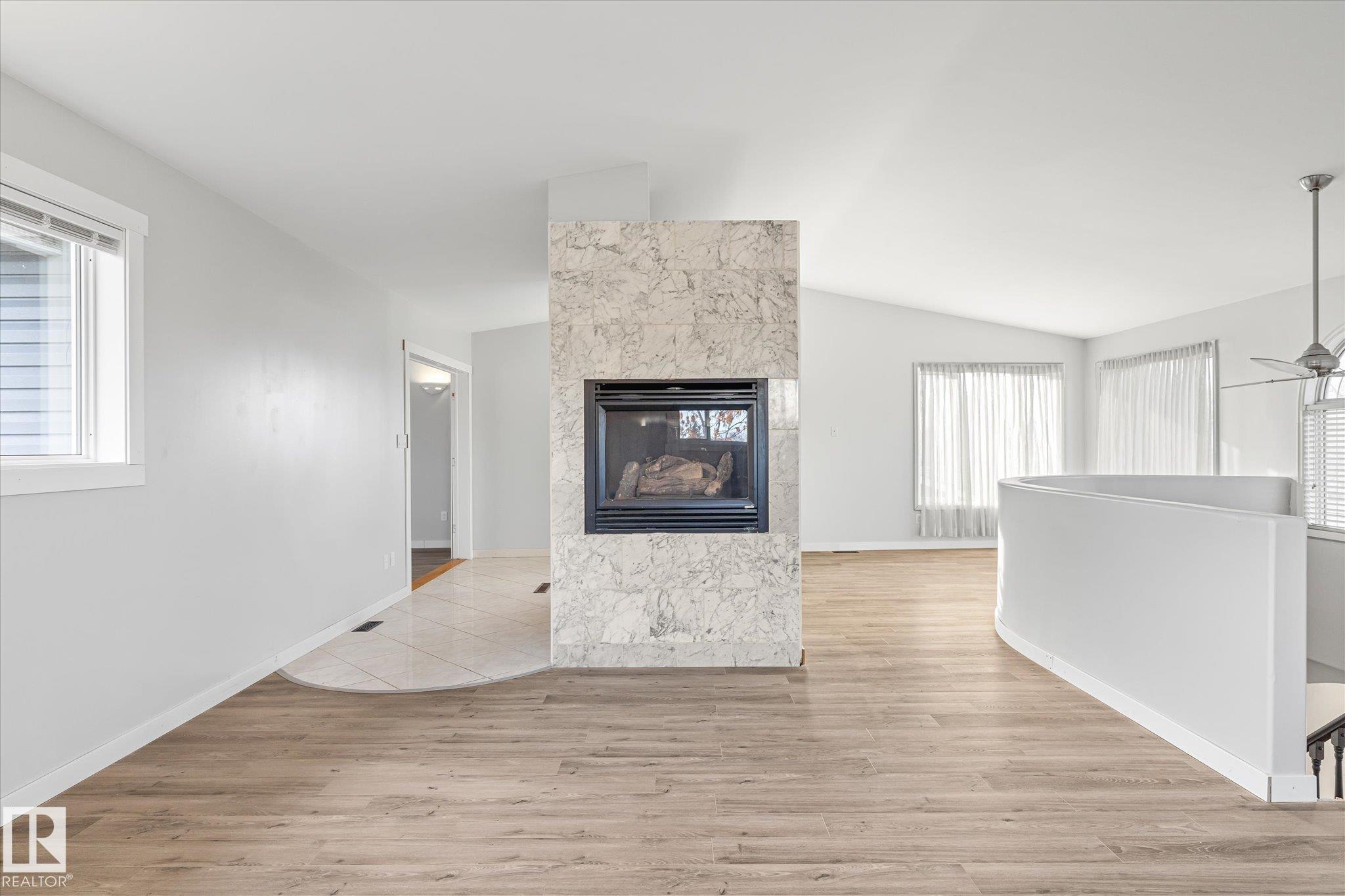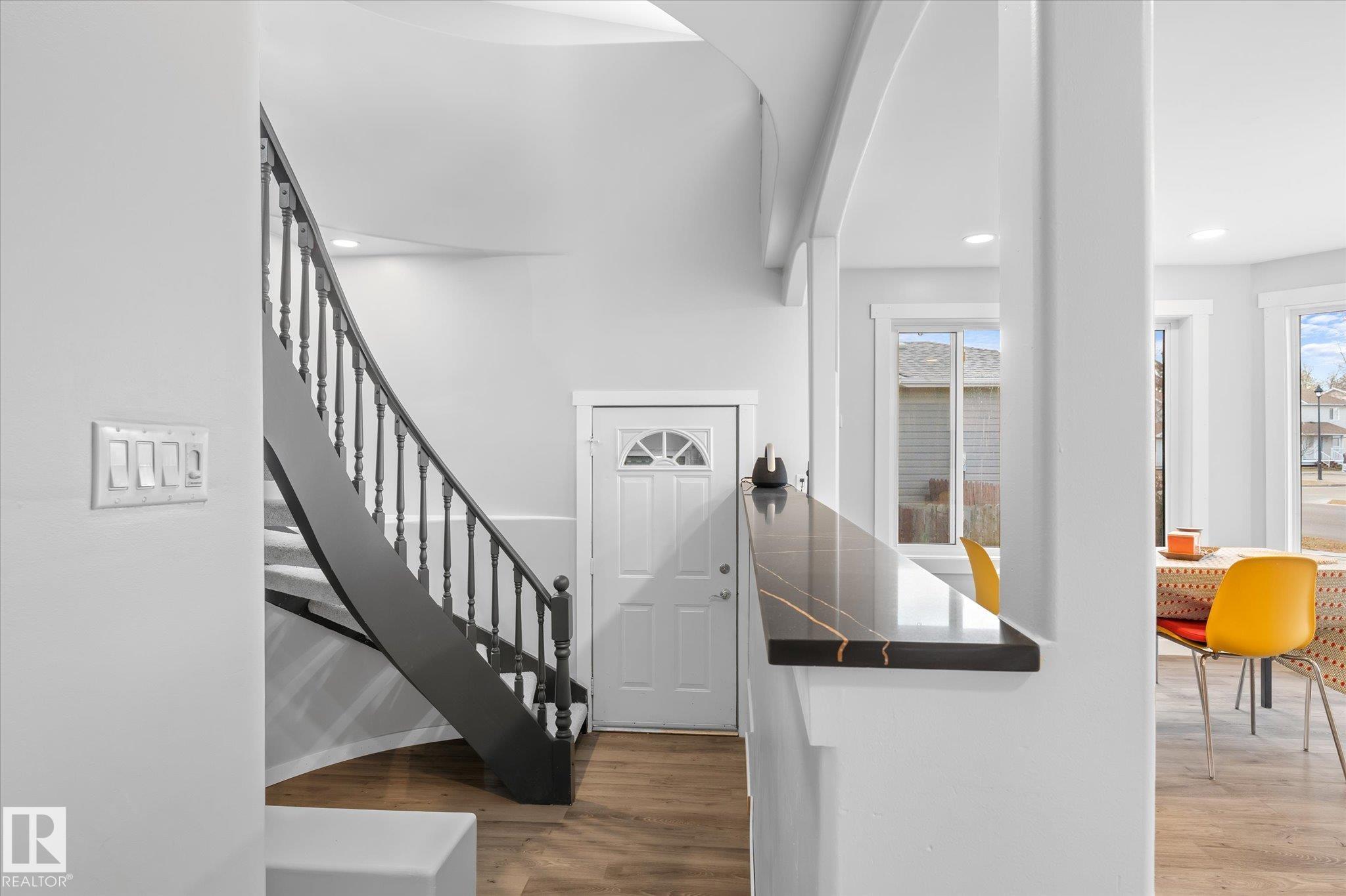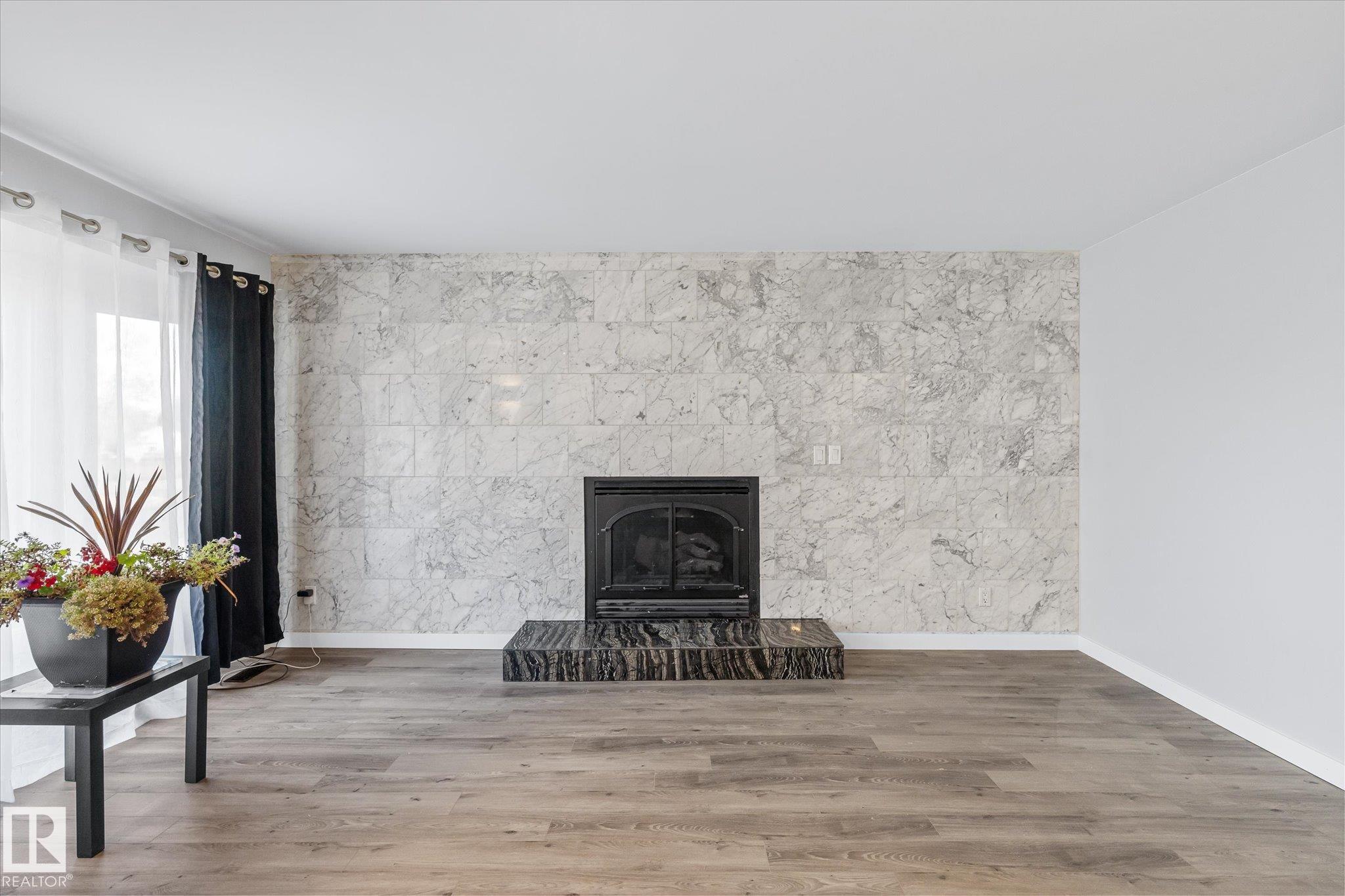 Beautifully renovated 4-bed, 3-bath home offering modern style and functionality. The main floor features 3 bedrooms, 2 bathrooms, an open-concept living area with elegant archways, newer flooring, and a marble-tiled fireplace. Enjoy the indoor hot tub for year-round relaxation. The bright kitchen boasts white cabinetry, quartz countertops, black backsplash, and stainless steel appliances. Upstairs offers a private bedroom, full bath, fireplace and large balcony. The basement, with side entrance, includes a full kitchen and private laundry.