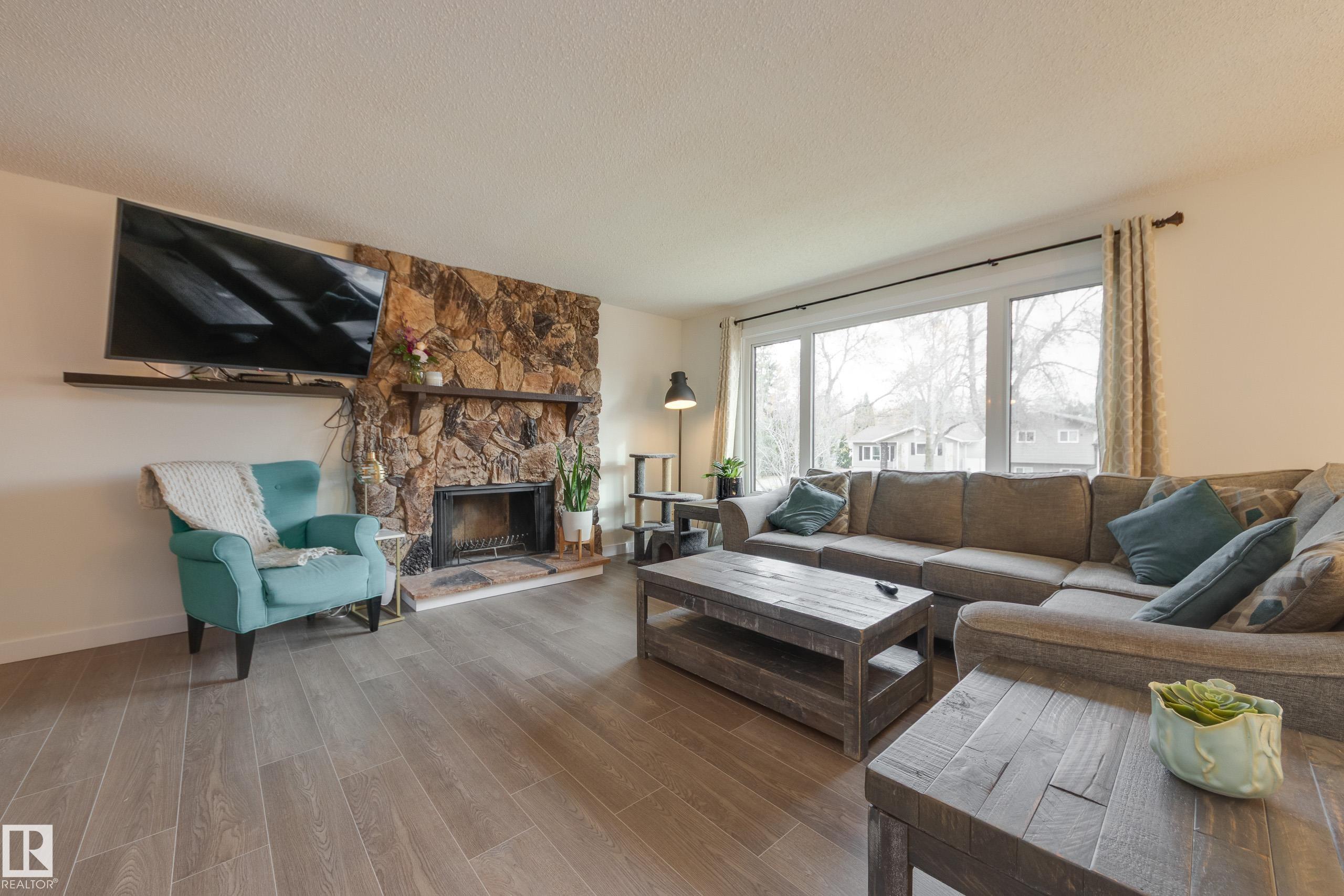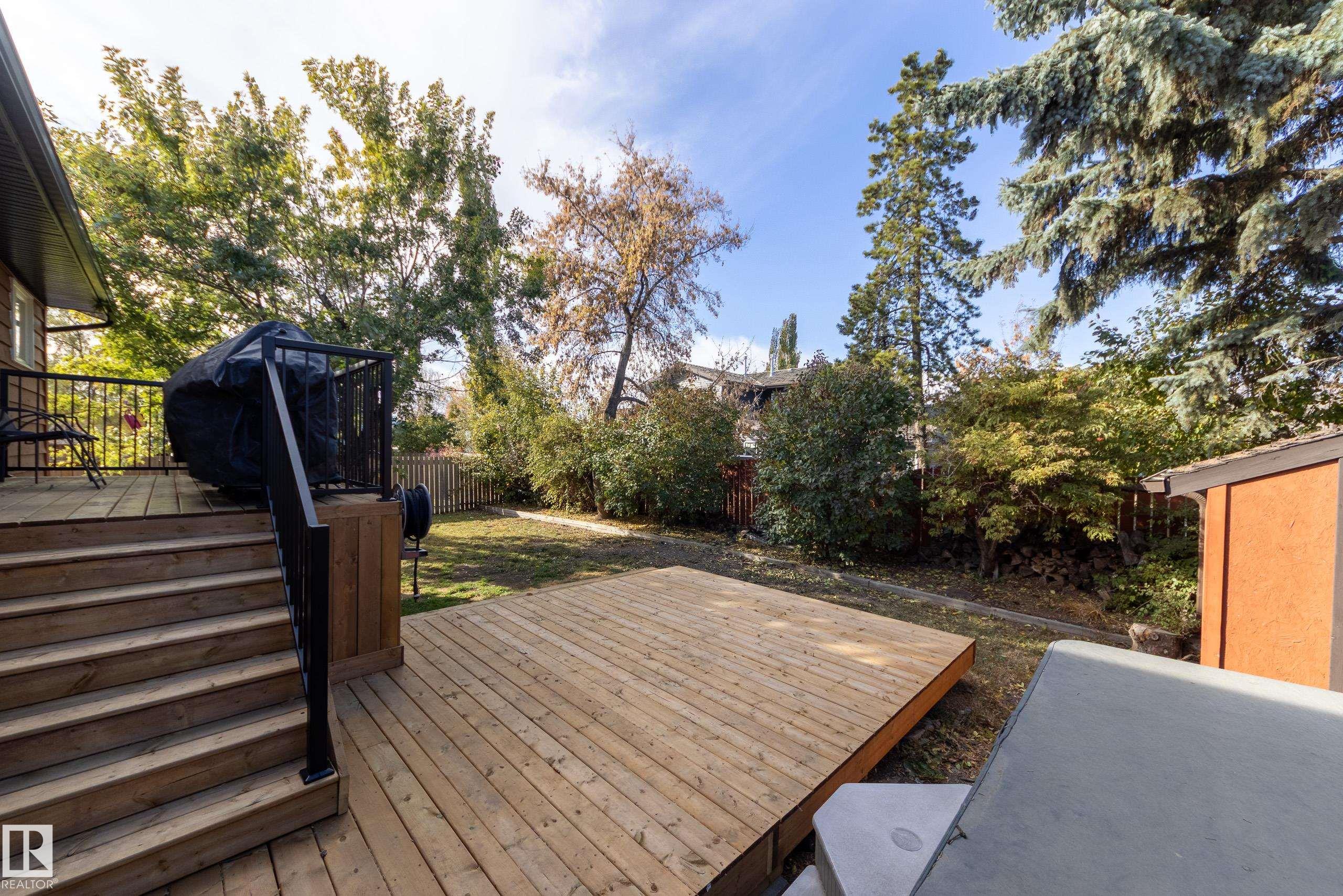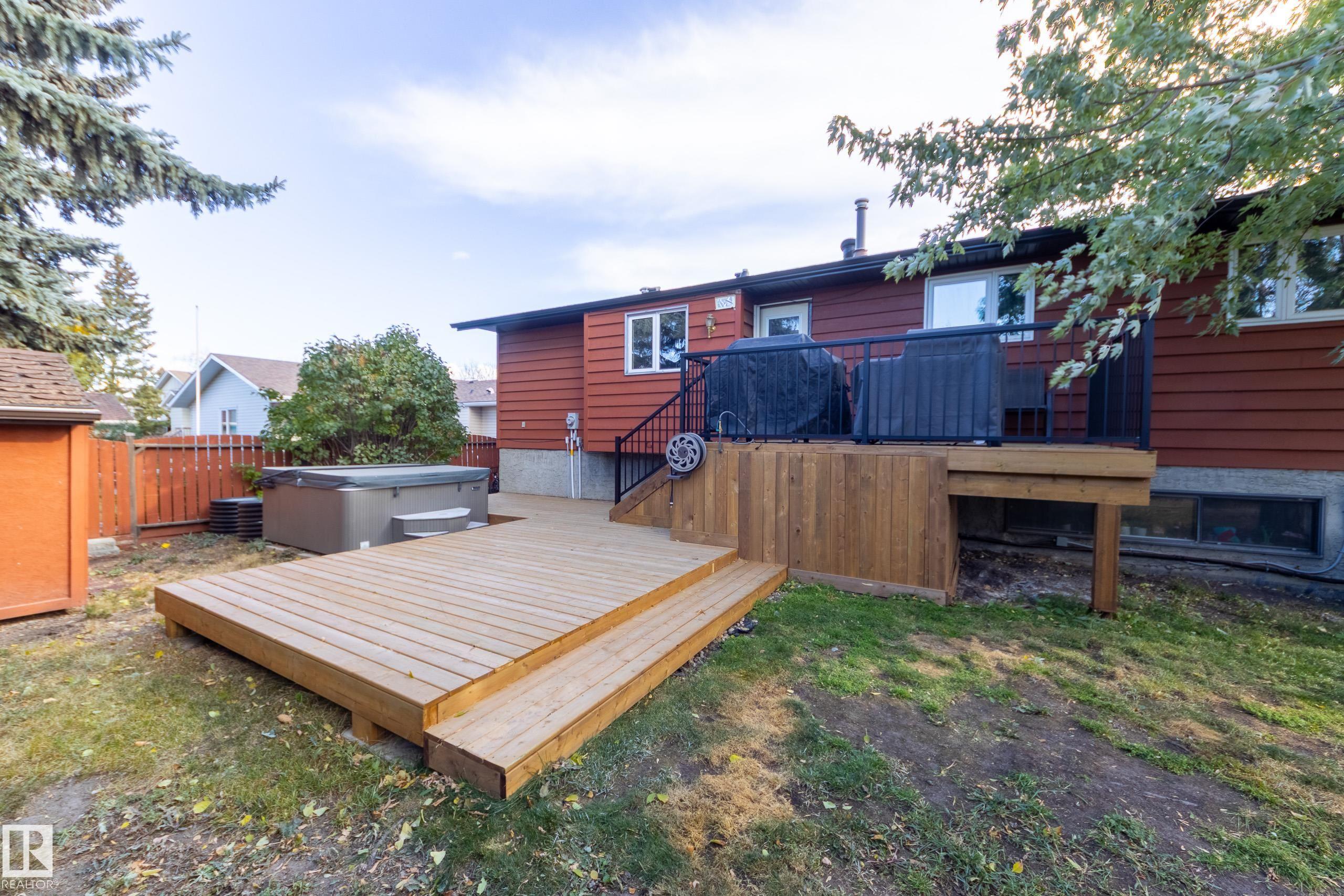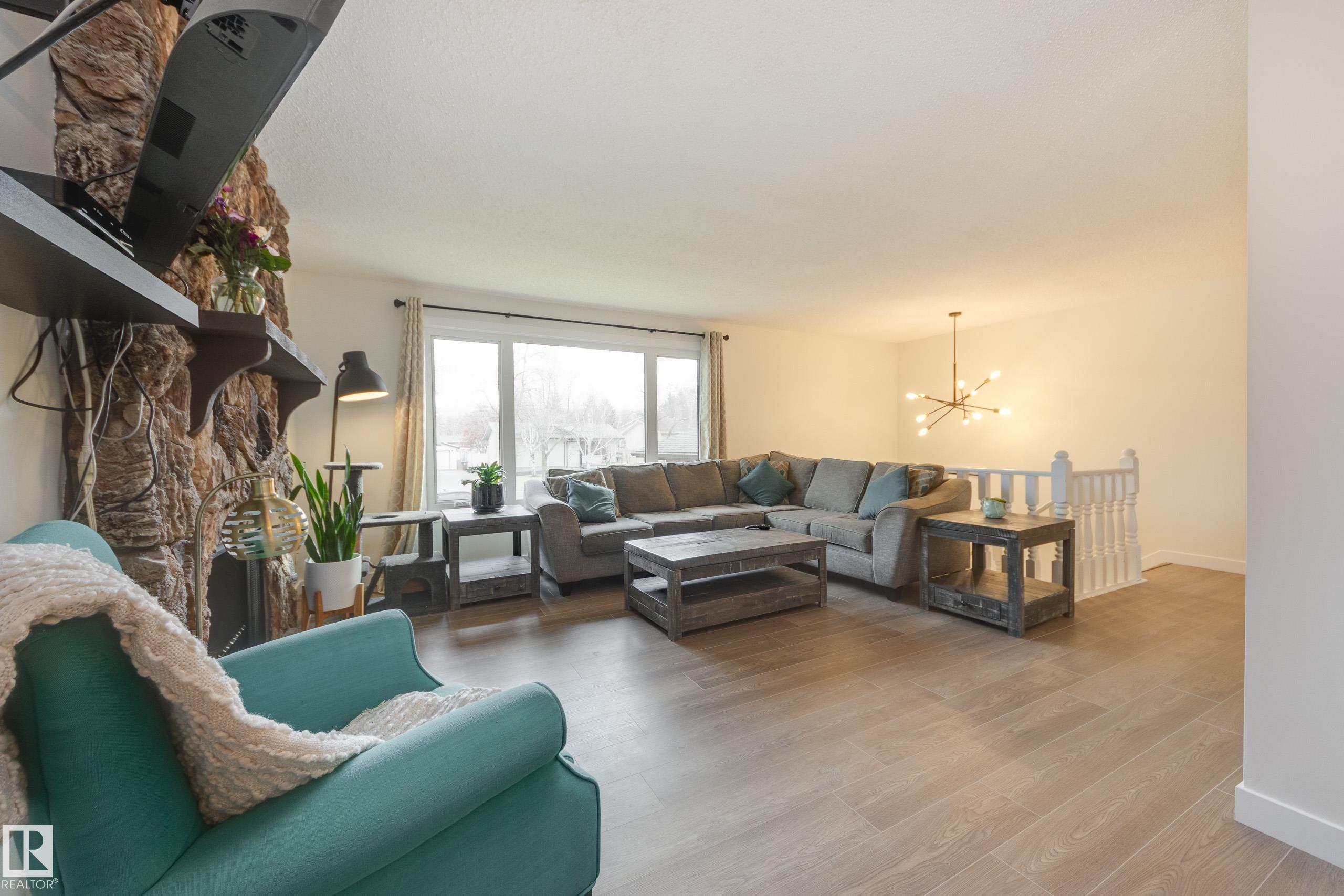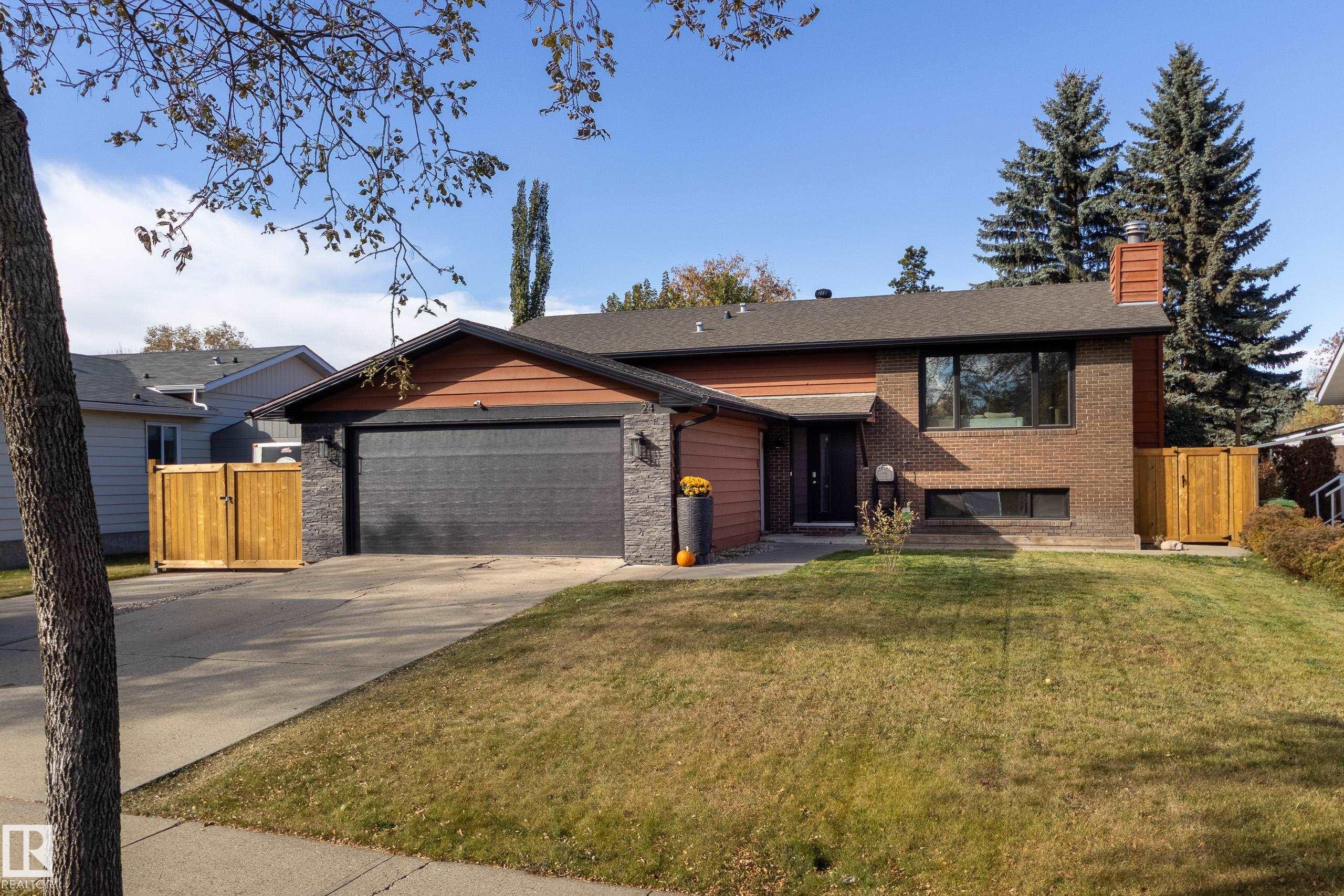 Amazing Akinsdale home located near Elmer S. Gish school, with parks and amenities close by - ideal location busy families! This bi level has a total of SIX bedrooms! Huge back yard with newer deck & gas BBQ line. The main floor offers spacious room sizes; great room with stone faced wood burning fireplace; open dining area with built in cabinets; white kitchen cabinets - lots of storage. The primary bedroom has a large closet and a full ensuite bathroom. Two more good sized bedrooms and a second full bath complete this level. The full basement with lots of natural light has three more bedrooms and another full bathroom! Plus a huge rec room with roughed in wet bar; a laundry room and lots of storage. Double attached garage for convenience and safety - your family will love this home!