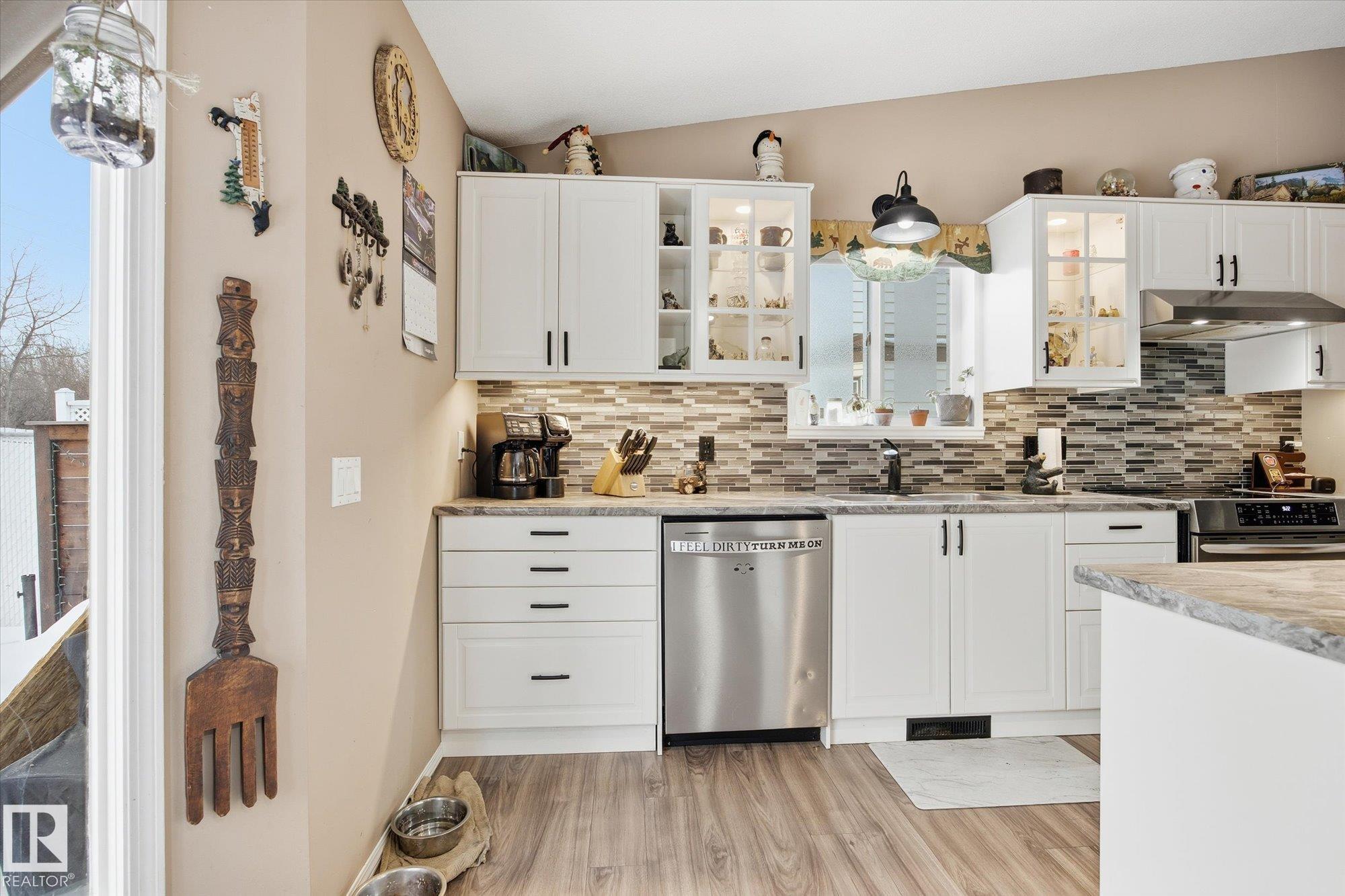 Pride of ownership is evident throughout this thoughtfully updated home with modern finishes and practical upgrades. This 4 Bed, 3 Bath backing onto Green Space is a Must-see! The kitchen (2022) features modern cabinetry and stainless steel appliances (2022), creating a bright and practical space for everyday living. Flooring (2022/2023), Large double back doors (2022) and updated windows (2022) bring in plenty of natural light and enhance energy efficiency. The home includes three bathrooms in total--two 3-piece baths (One Ensuite off the Primary Bedroom) and one 4-piece providing convenience for families or guests. Enjoy the spacious driveway and Double Attached Garage! Close to schools, with easy Henday access! A solid opportunity in an established St. Albert neighborhood!