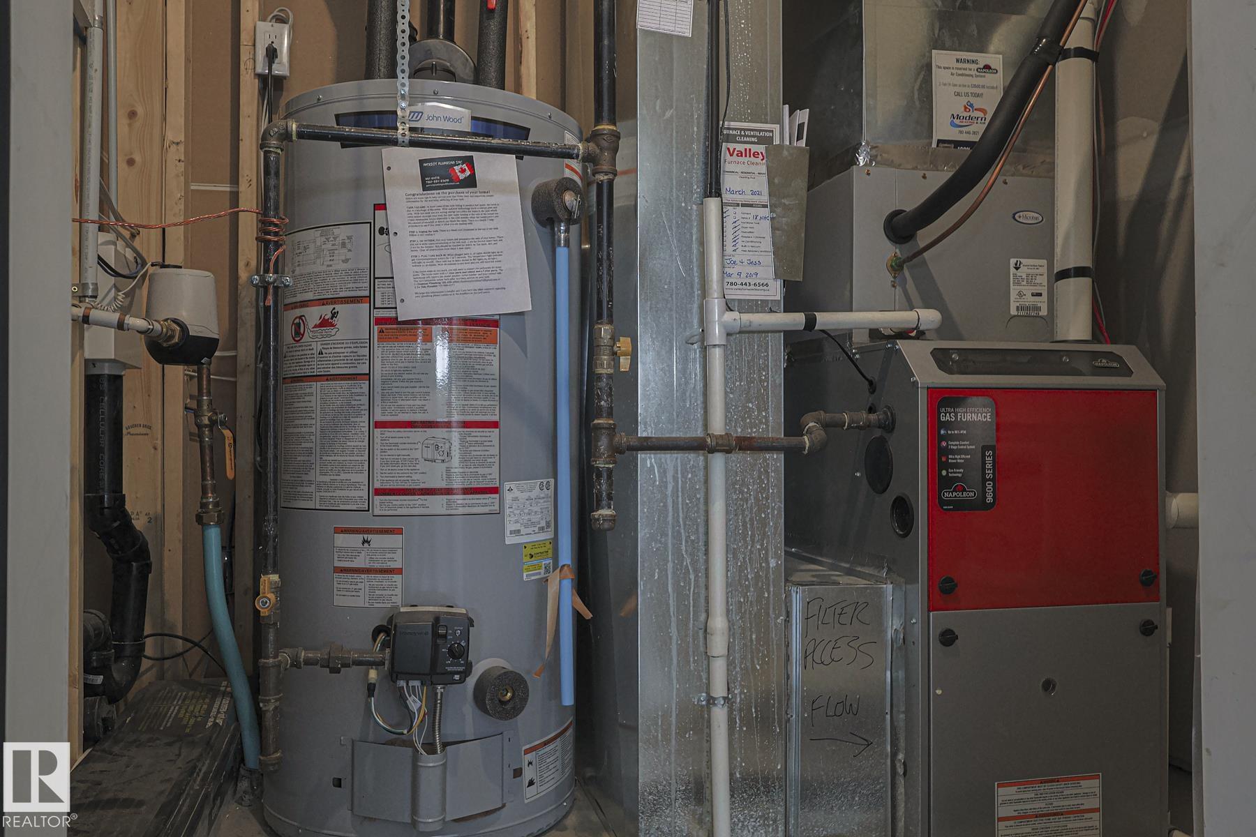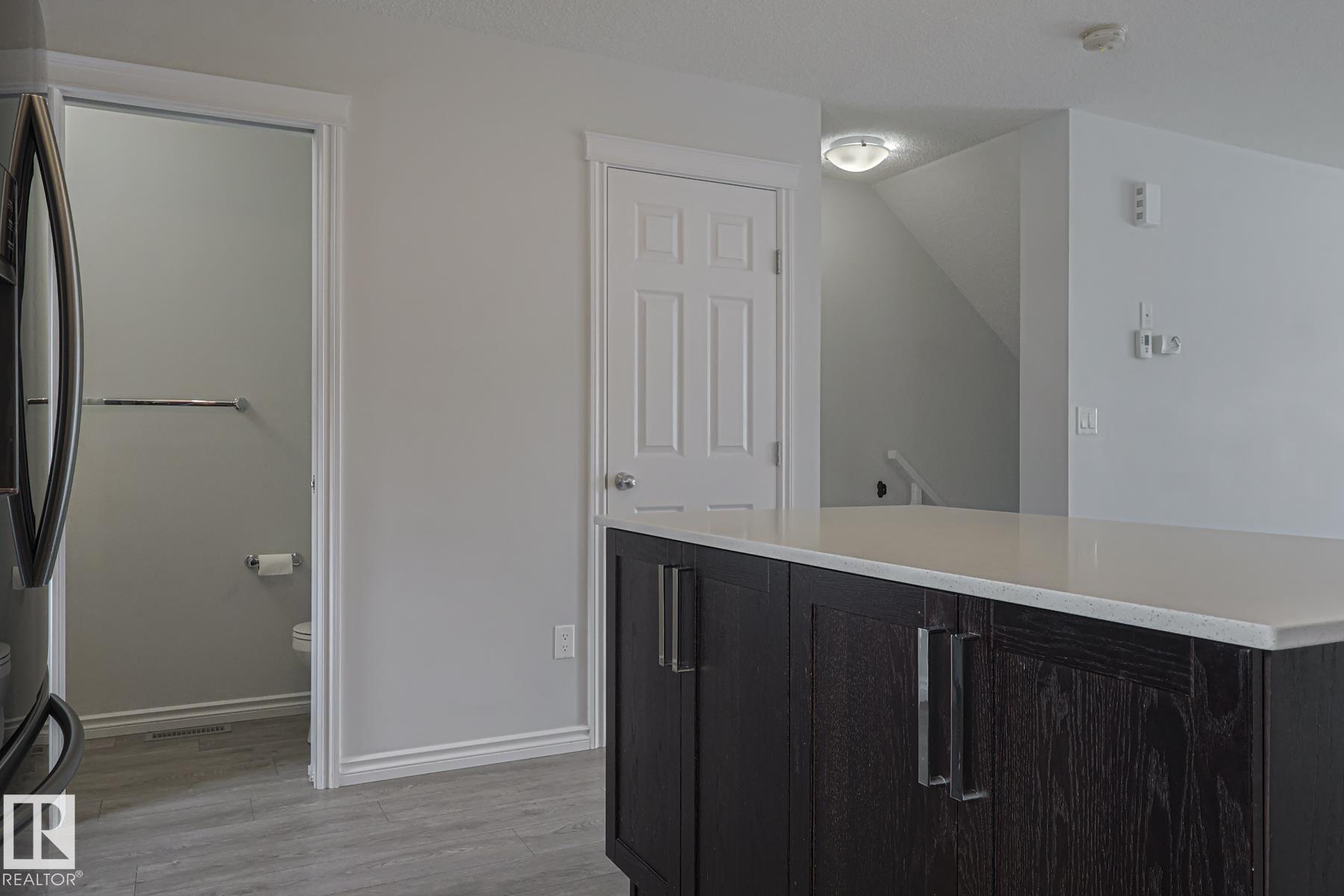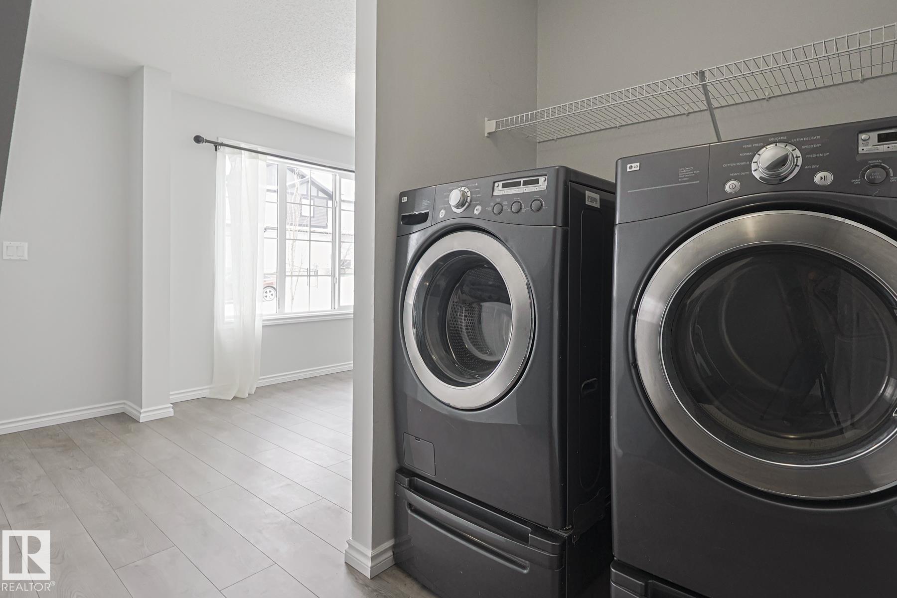 Beautiful 3 Bedroom townhome in Aspen Trails offering stylish, low-maintenance living in a highly desirable community. This well-appointed home features a double attached garage & thoughtfully designed layout. The main level includes versatile flex room ideal for a home office, gym or additional living space, along with dedicated laundry space. The upper level open-concept main living area showcases offers a kitchen centered around a functional quartz island with overhang, flowing seamlessly into the dining and living areas. Convenient 2 piece powder room located just off the kitchen. Step outside to the west facing balcony for evening BBQs & enjoying sunsets. Upstairs sports 3 spacious bedrooms & 4pce bath for family/guests. The primary suite features a private 4pce ensuite with walk in closet. Both baths quartz counters. Complete with all appliances, AC & heat recovery ventilator. Located close to parks, scenic trails, shopping & everyday amenities with easy access to Highway 16 & Anthony Henday Drive.