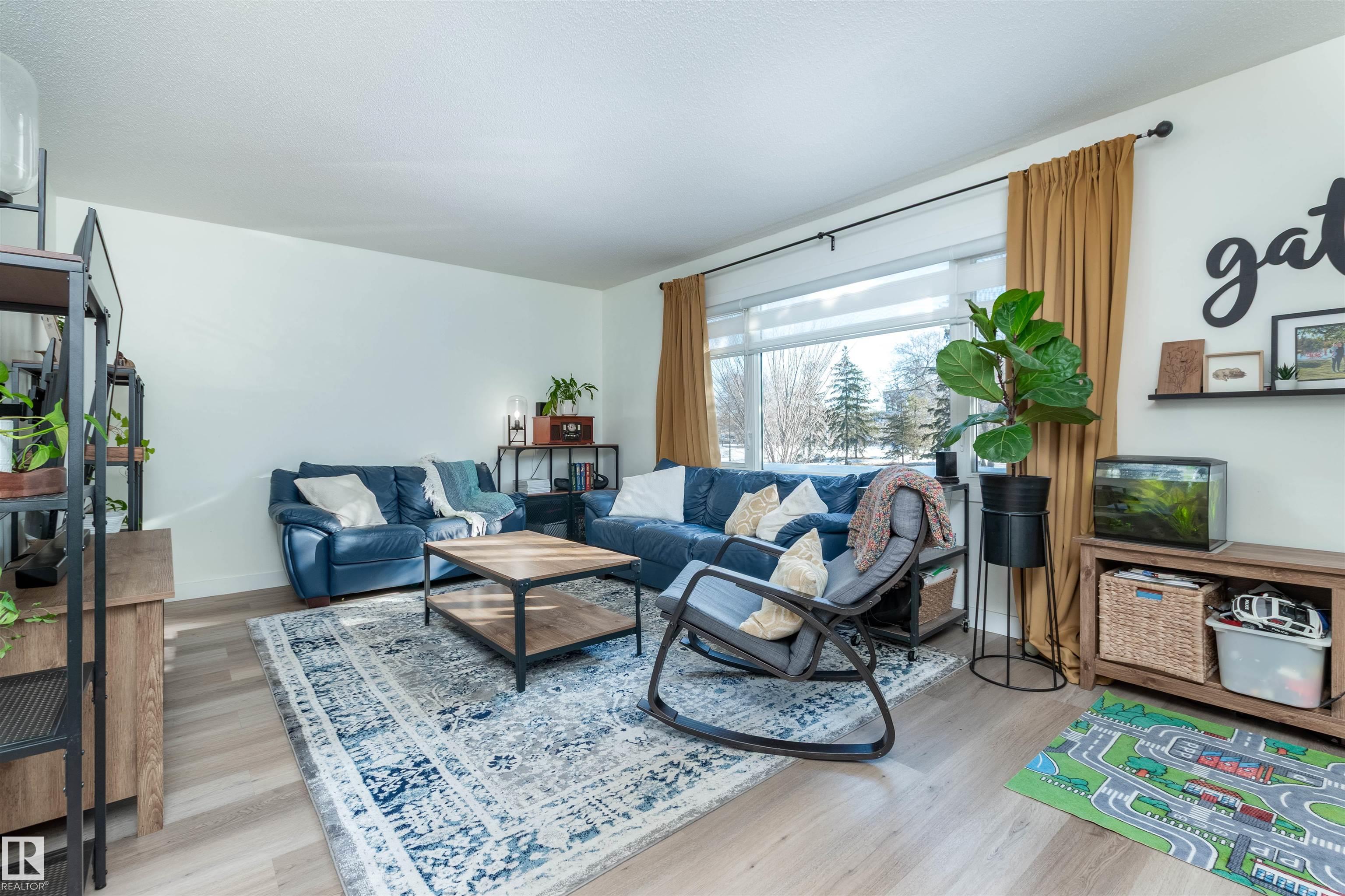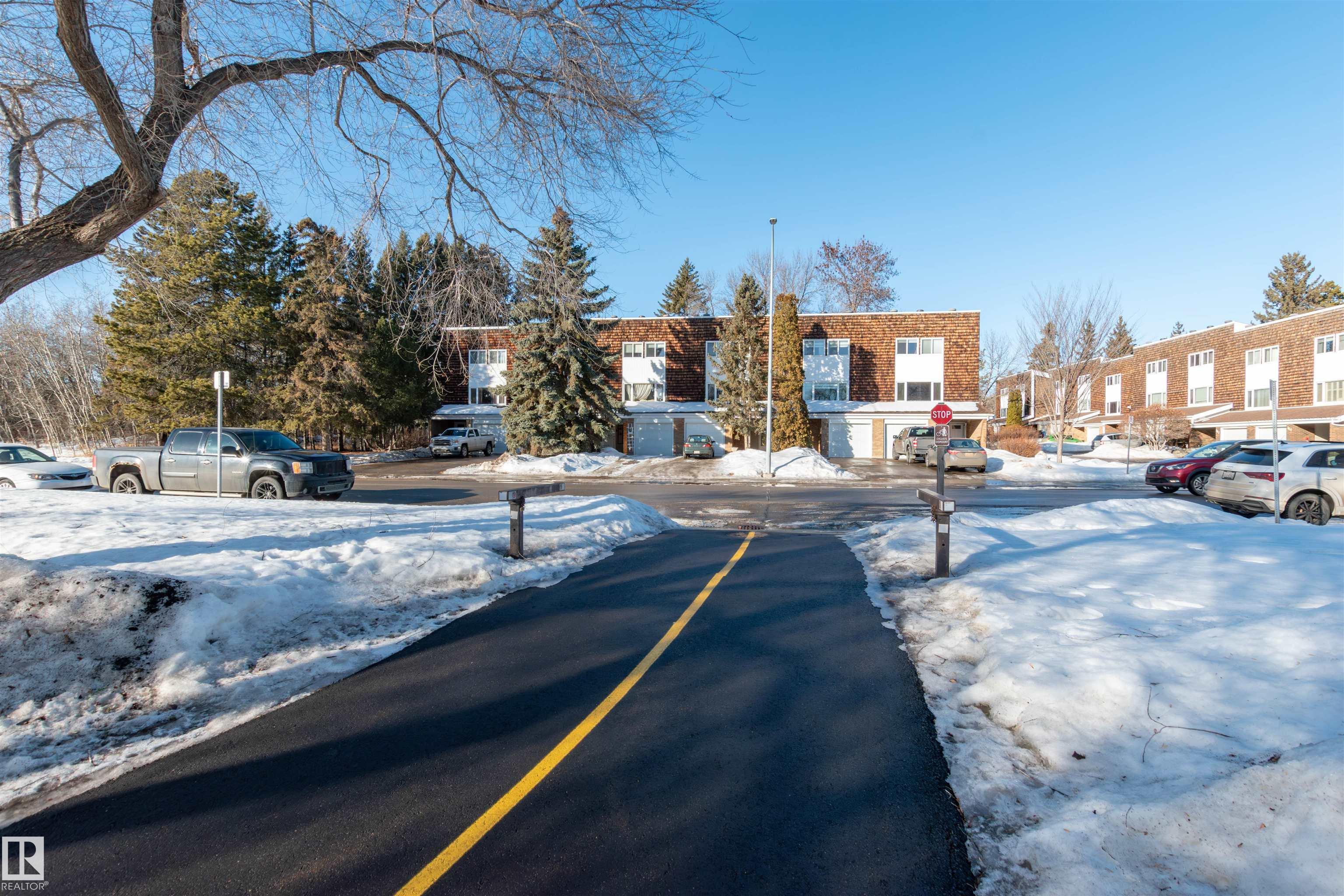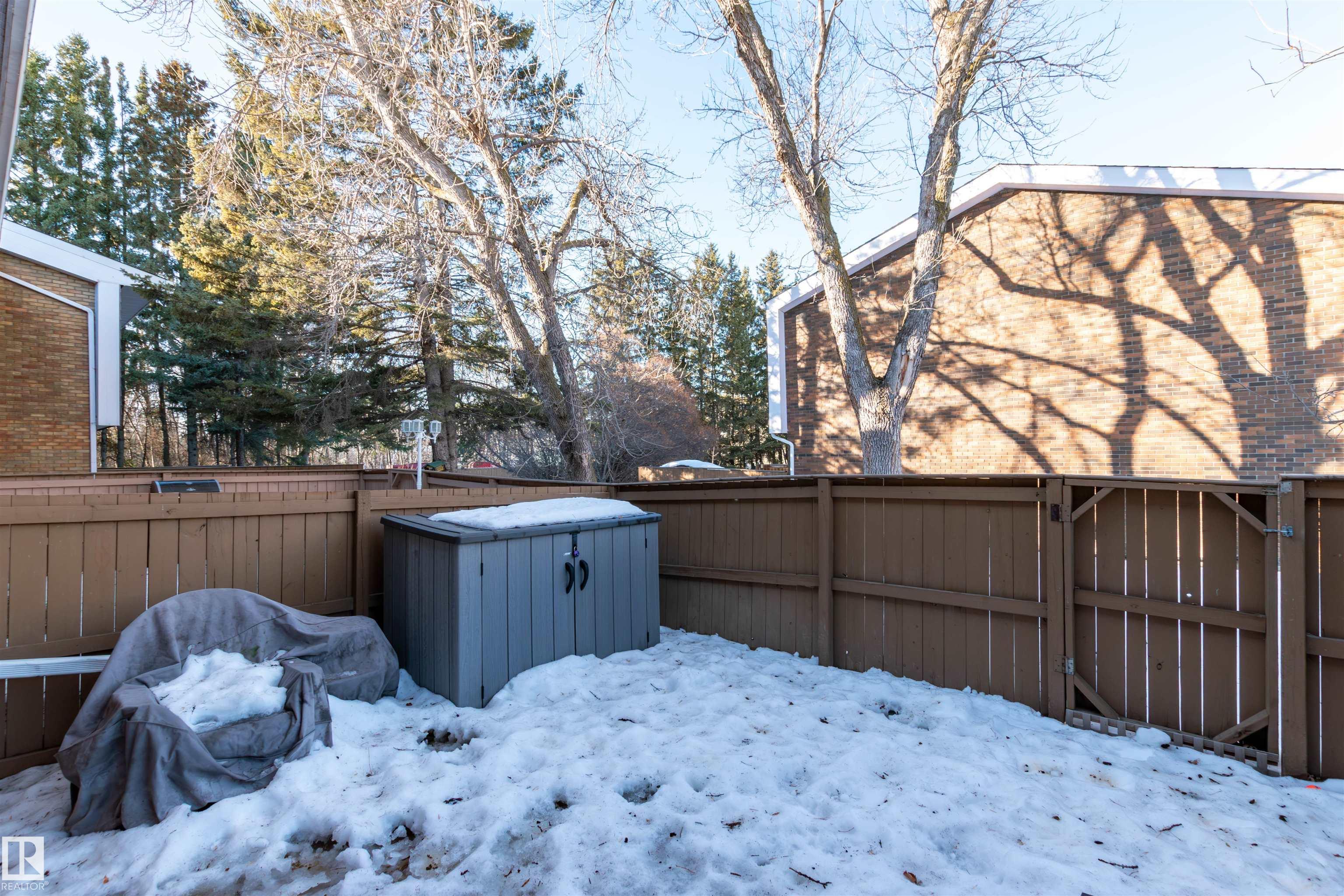 DISCOVER THIS RARE 5-LEVEL SPLIT CONDO in the heart of Sherwood Park! This home features QUARTZ COUNTERTOPS, TILE BACKSPLASH,White cabinets with glass showcase cabinets and island, along with modern sinks and taps for a fresh, timeless look. The spacious layout includes a spacious LIVINNG ROOM, and a large PRIMARY BEDROOM with vaulted ceiling and DEEP CLOSET. The main bath is finished with dble sinks and tiled surround tub/shower. Enjoy a PRIVATE YARD with concrete patio stones, perfect for relaxing in peace and quiet. Added functionality in basement is a crawl space for storage, family room, den and laundry. Attached oversized single (20x10)with tandem driveway. Nestled in a WELL-TREED, QUIET complex, the location is unmatched, just steps from the GOLF COURSE, tennis club, Broadmoor Lake with perfect view for firework celebrations, Festival Place, and Kinsmen Pool. Easy access to Broadmoor Blvd. A perfect balance of NATURE, LIFESTYLE, and MODERN UPGRADES in one of Sherwood Park's most desirable settings!