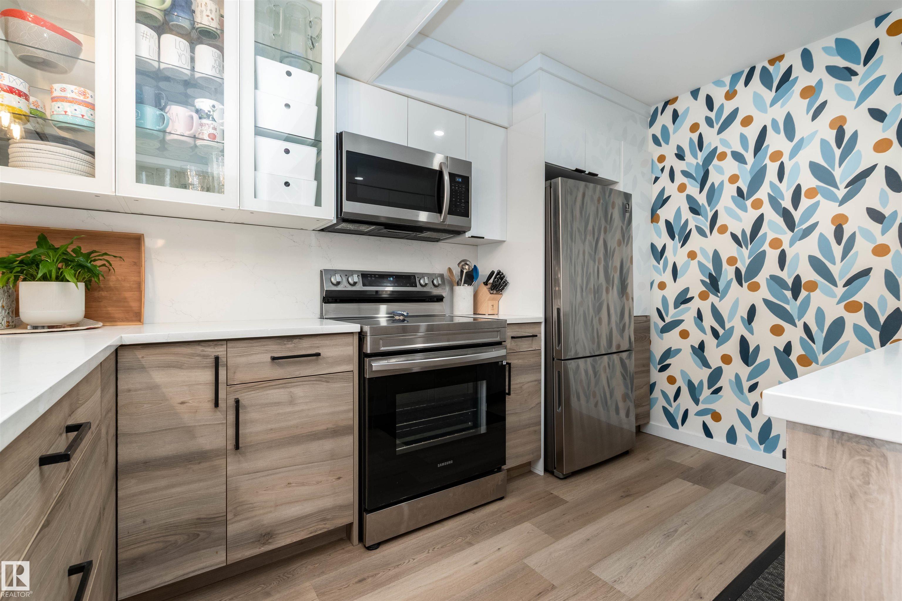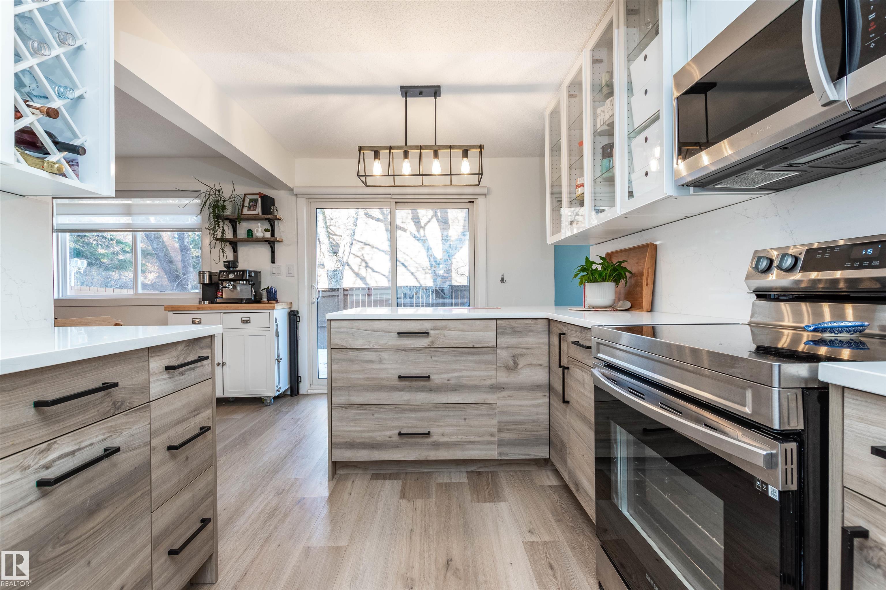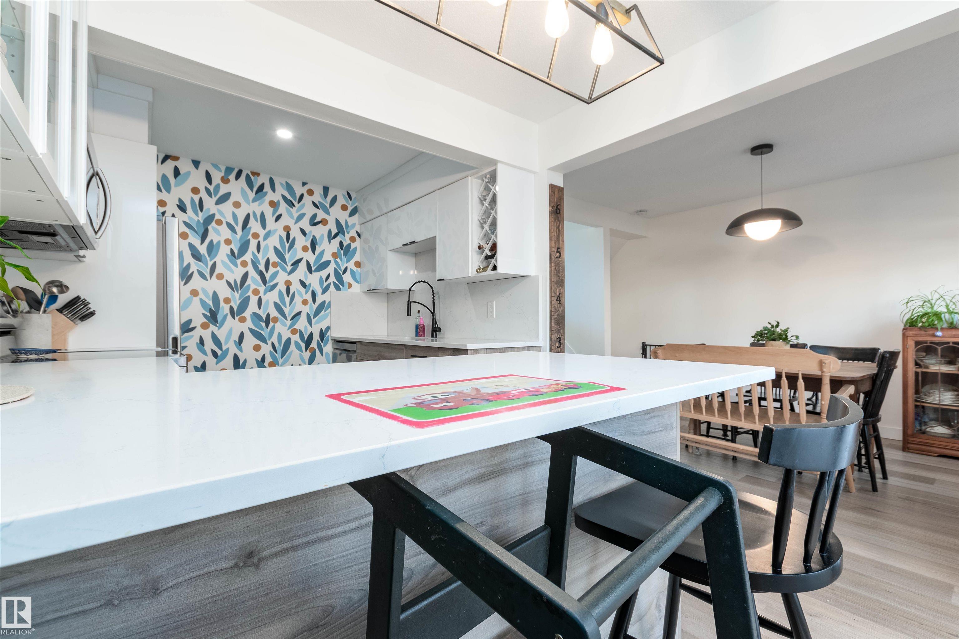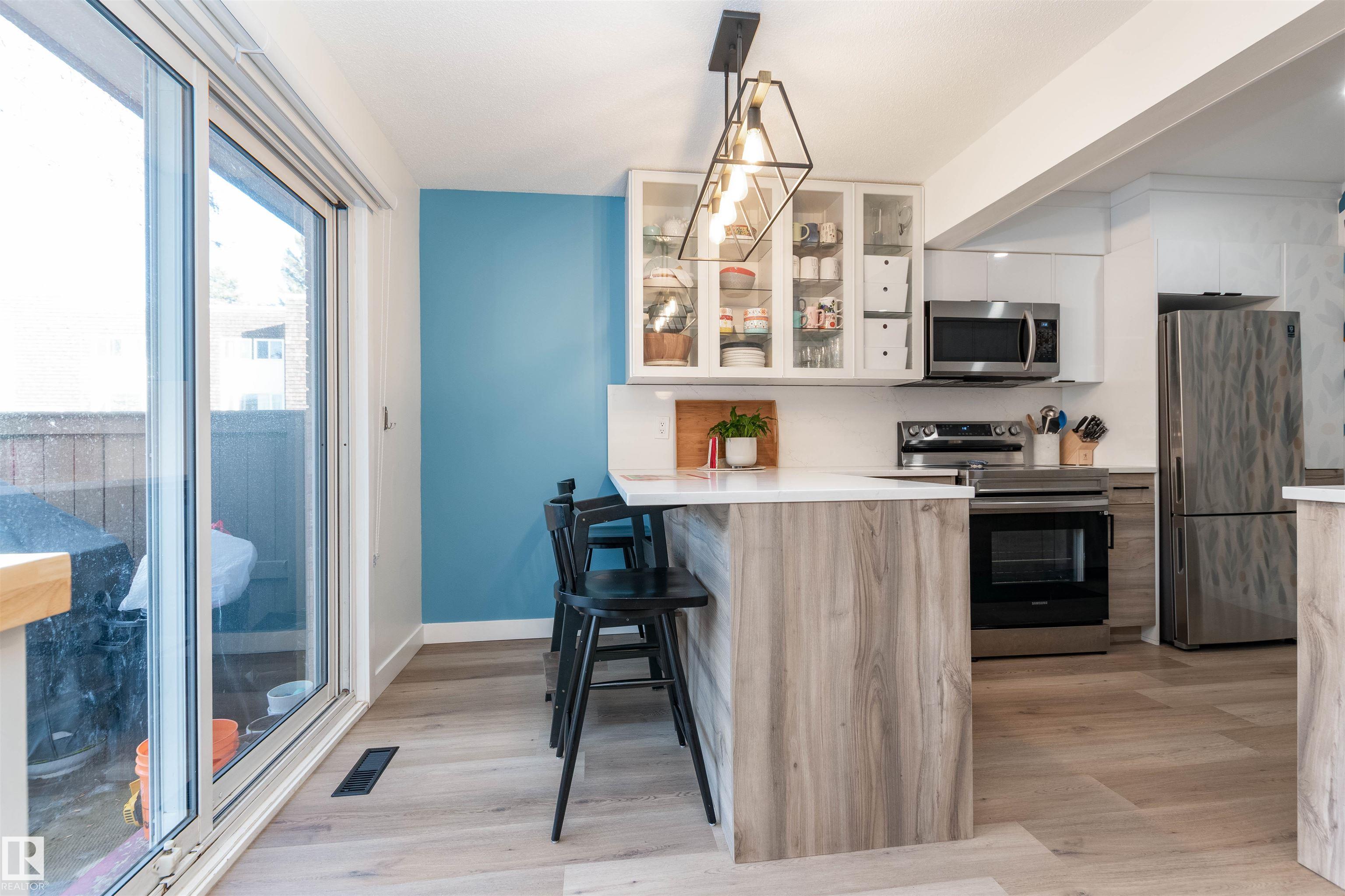 DISCOVER THIS RARE 5-LEVEL SPLIT CONDO in the heart of Sherwood Park! This home features QUARTZ COUNTERTOPS, TILE BACKSPLASH,White cabinets with glass showcase cabinets and island, along with modern sinks and taps for a fresh, timeless look. The spacious layout includes a spacious LIVINNG ROOM, and a large PRIMARY BEDROOM with vaulted ceiling and DEEP CLOSET. The main bath is finished with dble sinks and tiled surround tub/shower. Enjoy a PRIVATE YARD with concrete patio stones, perfect for relaxing in peace and quiet. Added functionality in basement is a crawl space for storage, family room, den and laundry. Attached oversized single (20x10)with tandem driveway. Nestled in a WELL-TREED, QUIET complex, the location is unmatched, just steps from the GOLF COURSE, tennis club, Broadmoor Lake with perfect view for firework celebrations, Festival Place, and Kinsmen Pool. Easy access to Broadmoor Blvd. A perfect balance of NATURE, LIFESTYLE, and MODERN UPGRADES in one of Sherwood Park's most desirable settings!